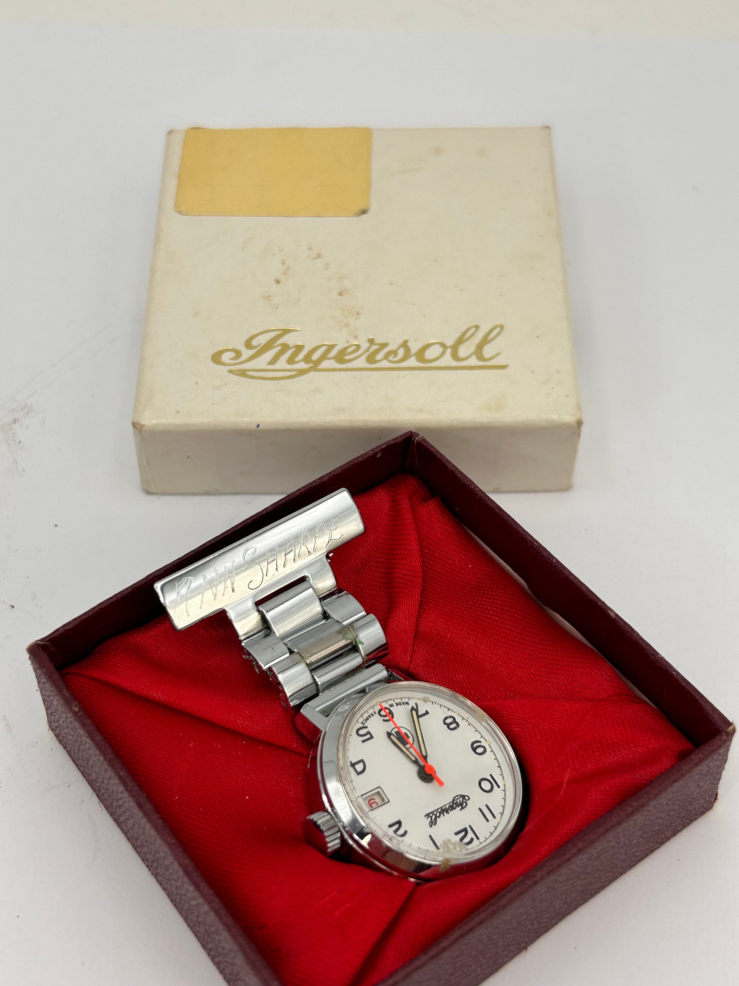 Vintage Ingersoll Nurses Watch In Original Box, Runs When Wound.
