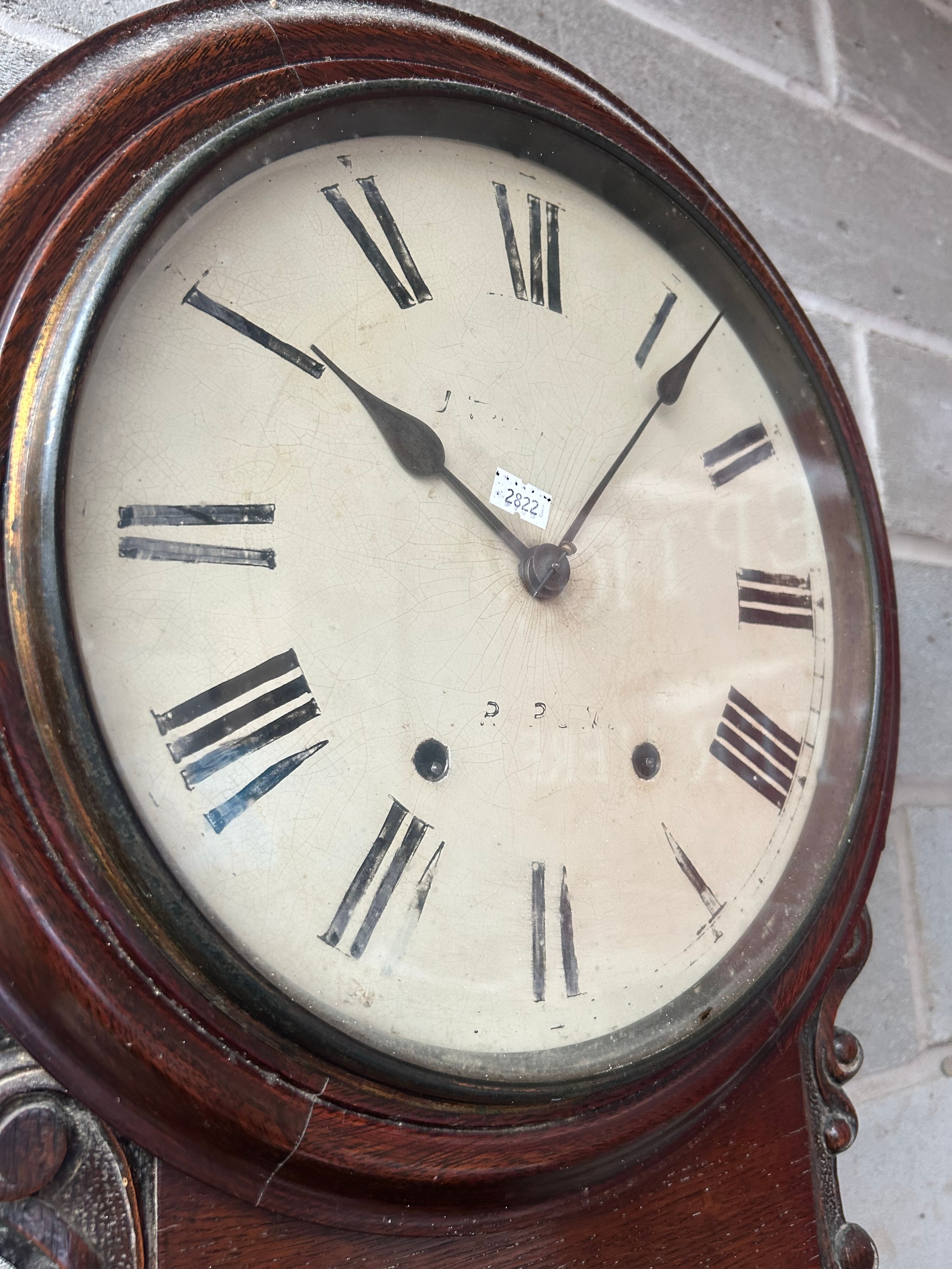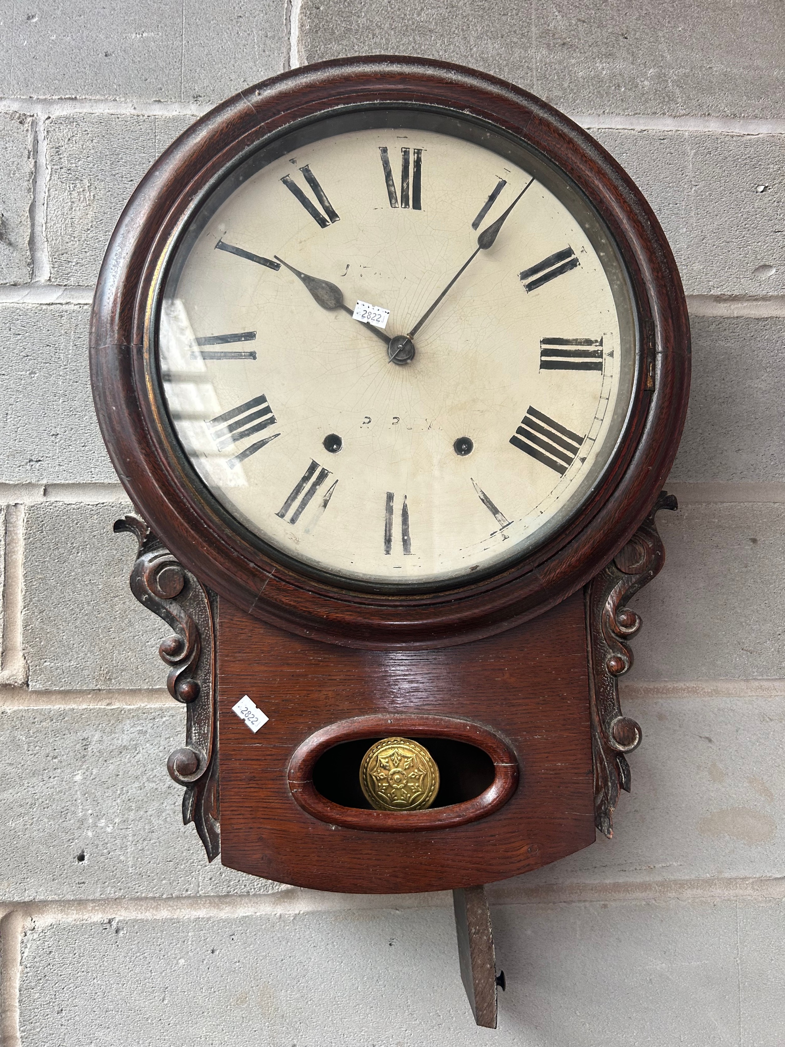 Antique American Style Wall Clock, With Key. Ticking When Tested, Clock Face Initials Unreadable.
