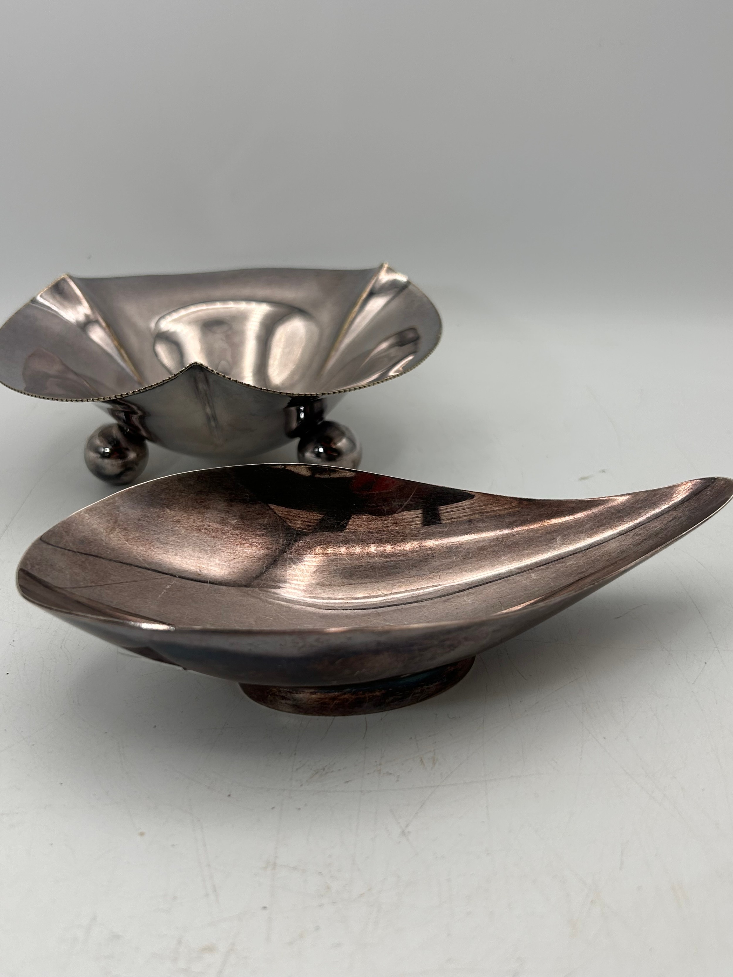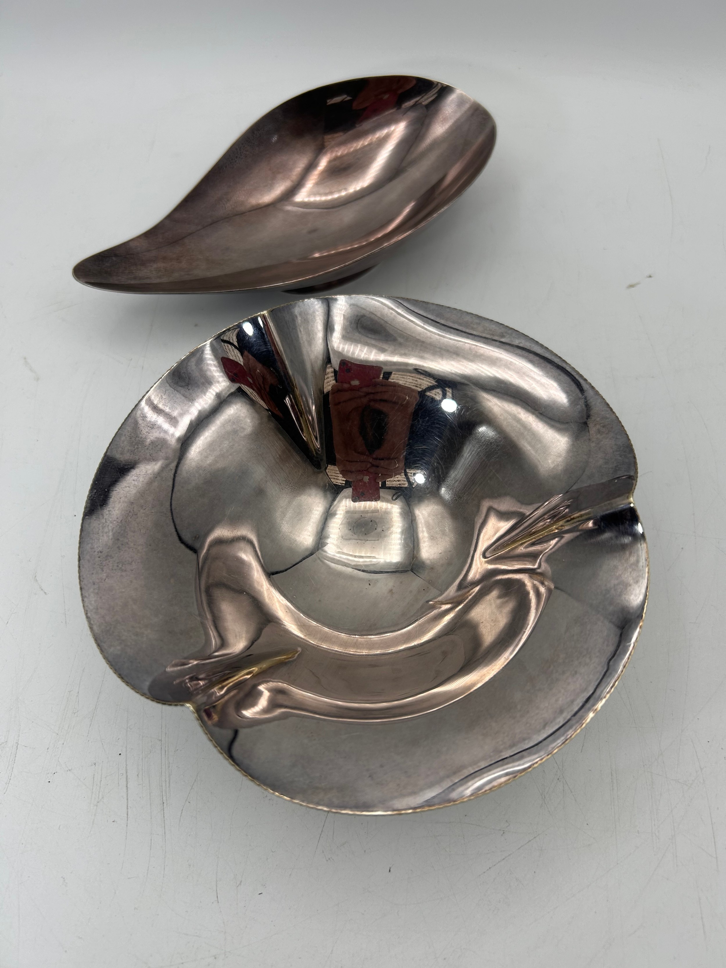 Two Interesting Mid Century Style White Metal Bowls , One By Reed & Barton , The Other JC&C Co.
