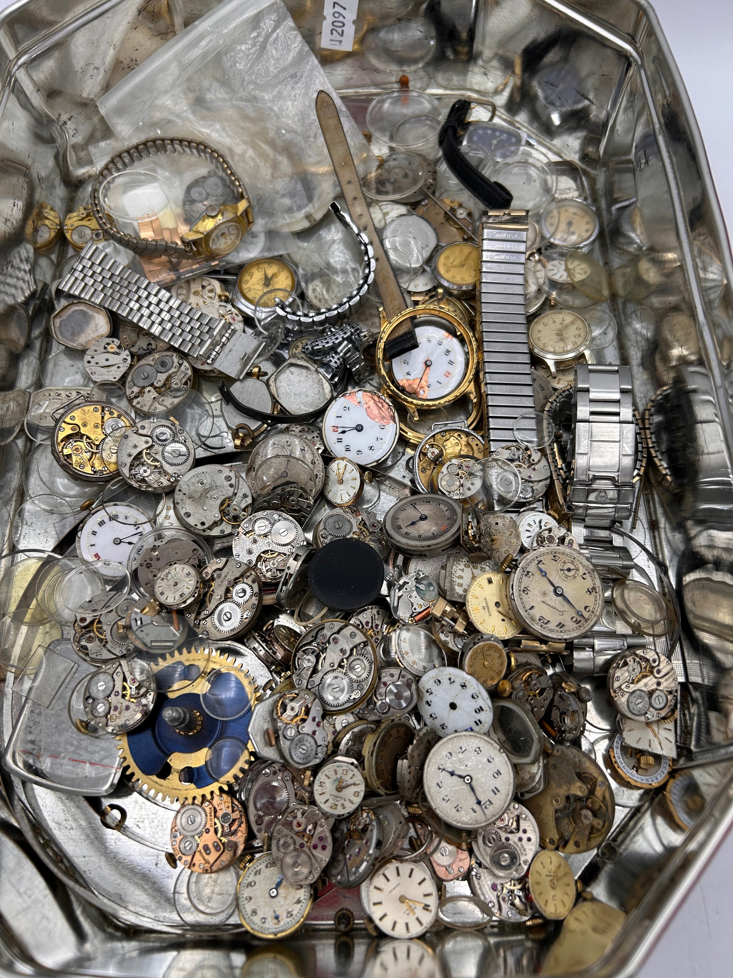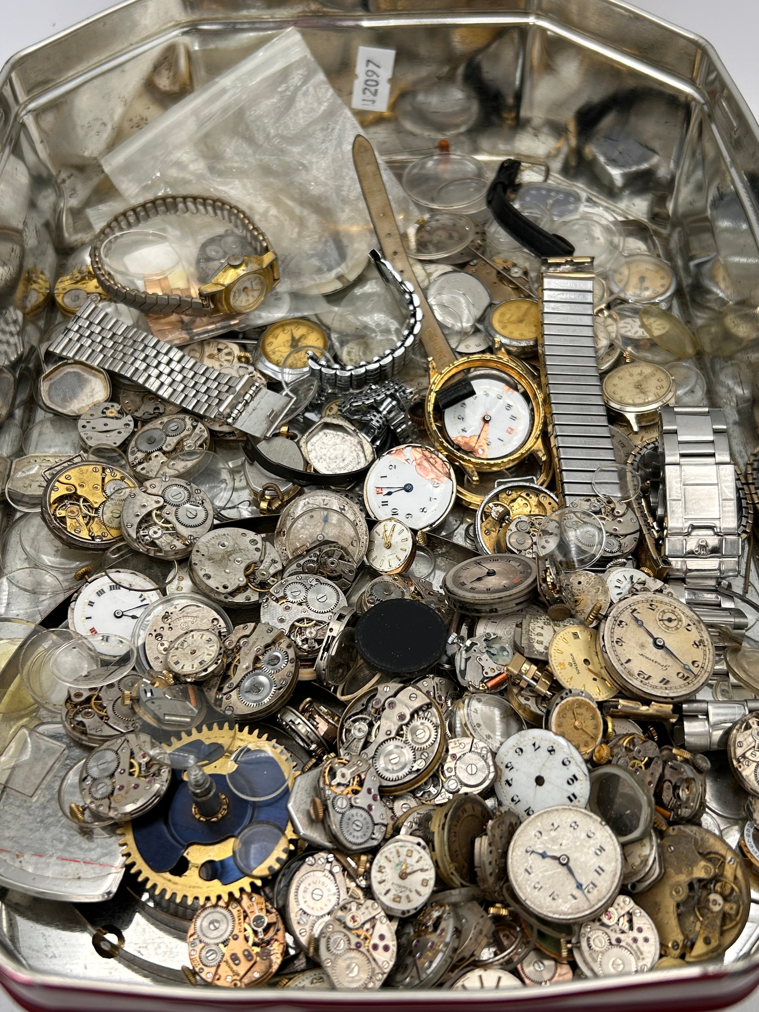 Tin Of Vintage Watch Parts And Spares.