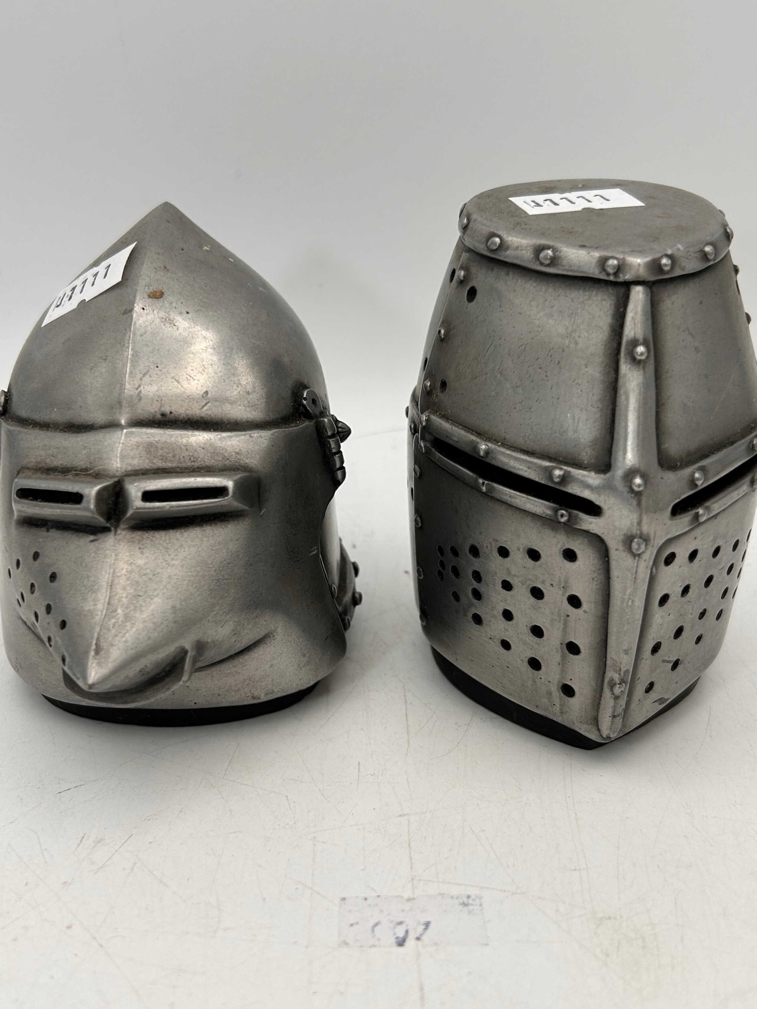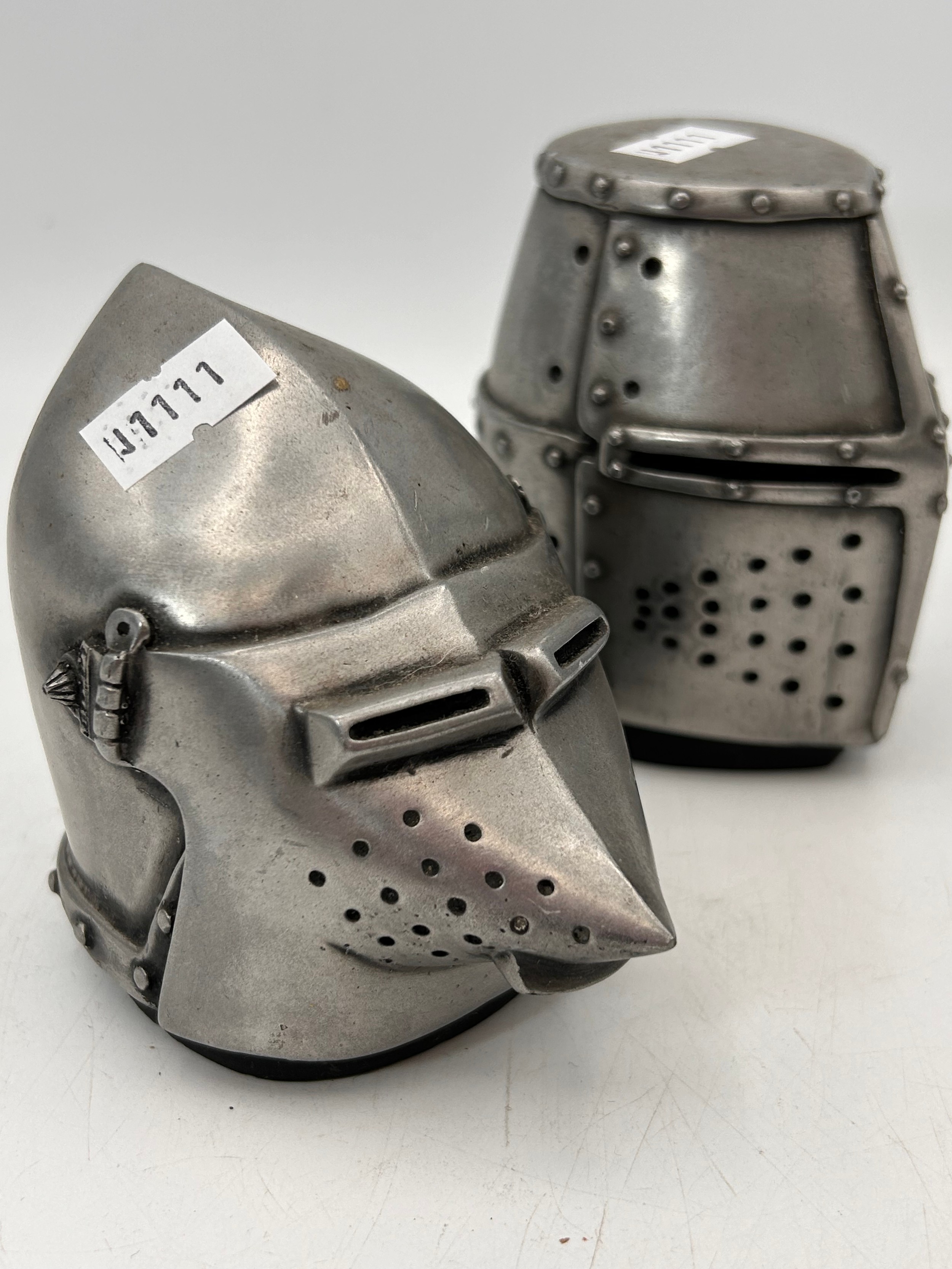 Interesting Pair Of Knights Helmet Paperweights , Standing 4".