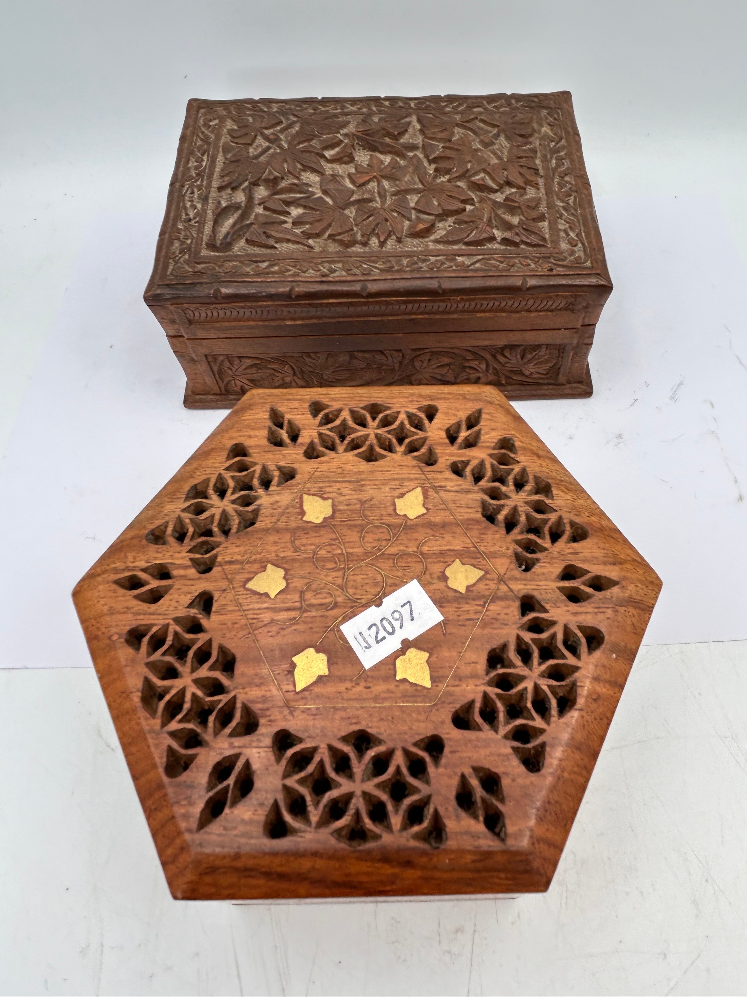 Two Nicely Carved Little Trinket Boxes , 6×4".