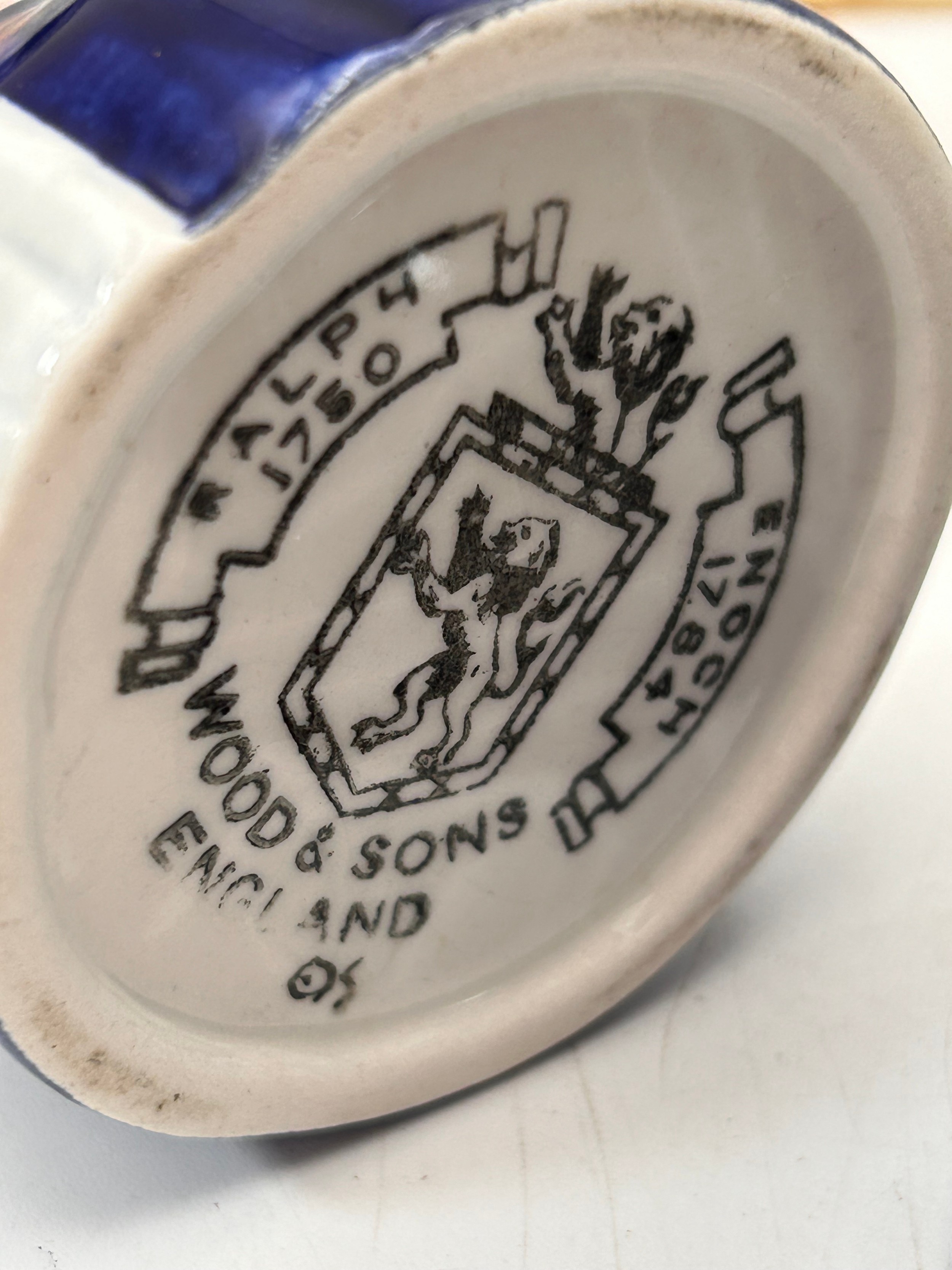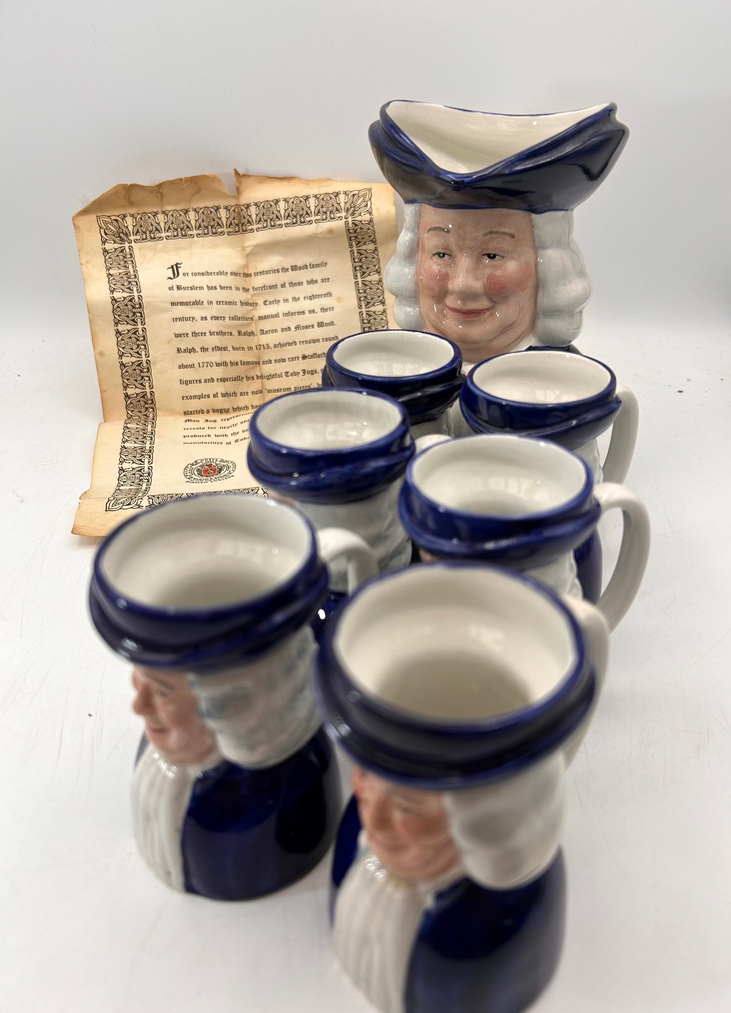 Set Of Wood & Sons Toby Jugs , One Large 6.5" And Six Small At 3.5" (Repair To One Small Handle)