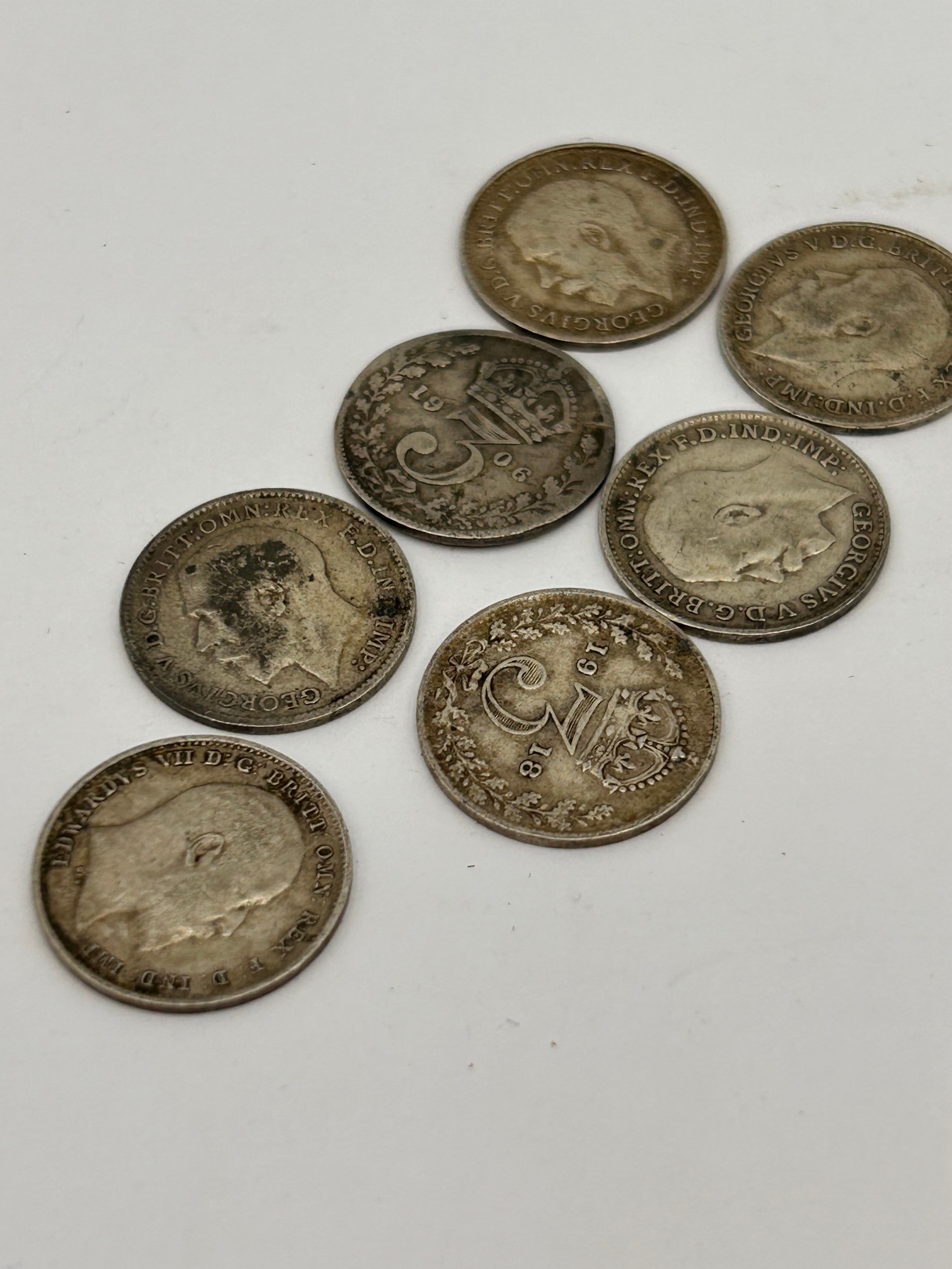 Seven Silver Threepenny Bit Coins.