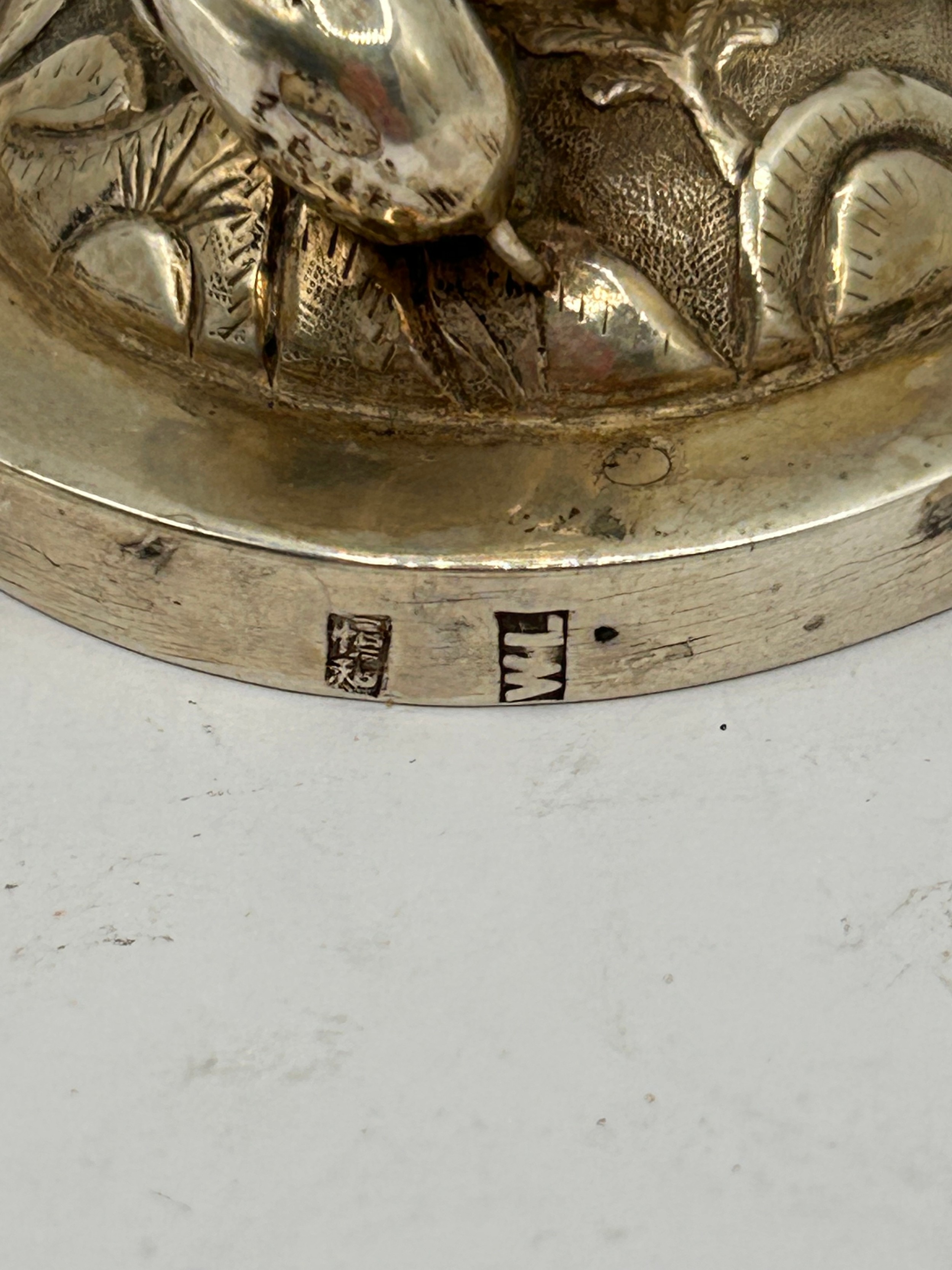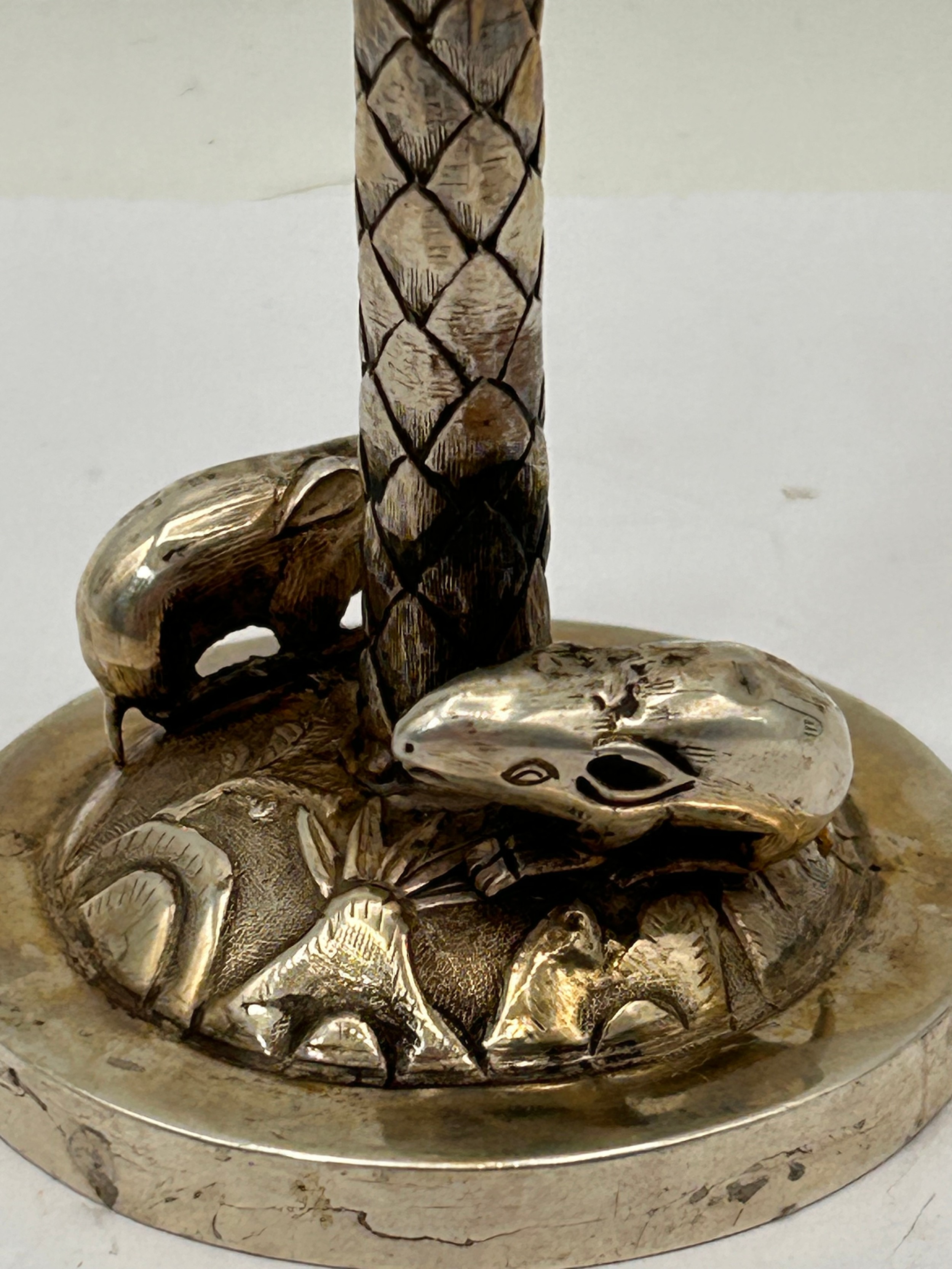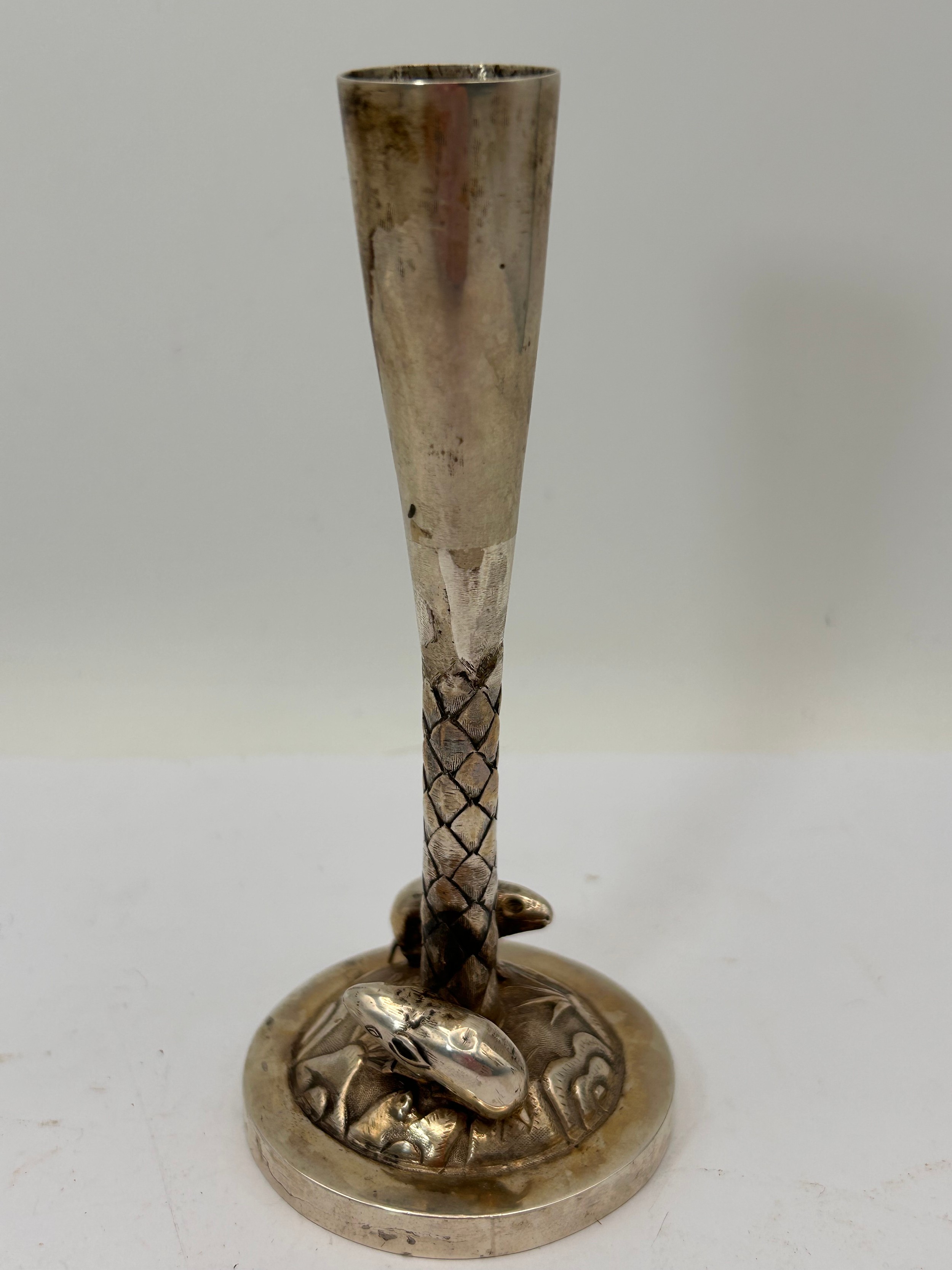 Chinese Silver Bud Vase C1900 With Animal Detail , Standing 5"