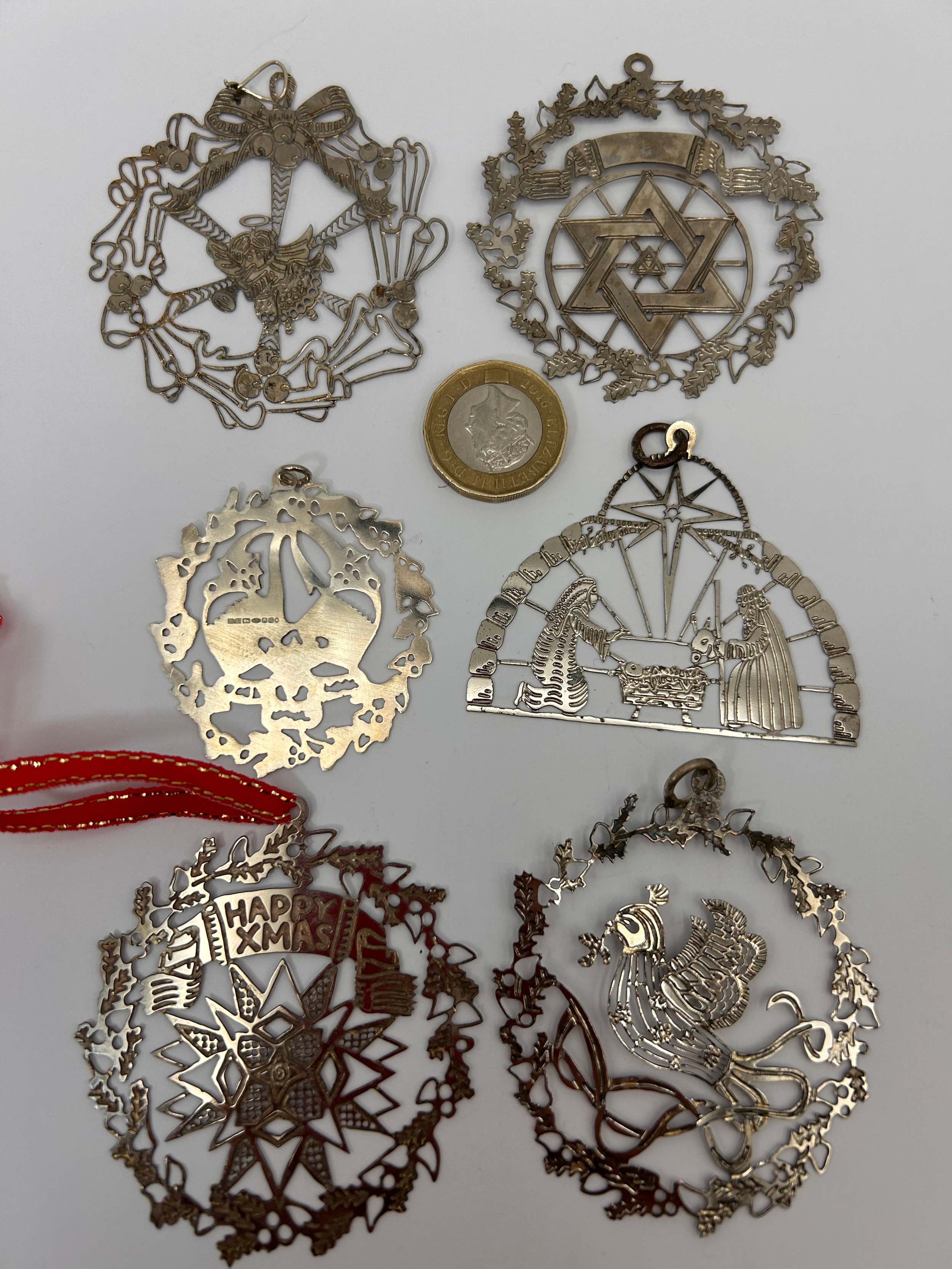 Lot 183: Set Of Six Silver Laser Cut Christmas Decorations.