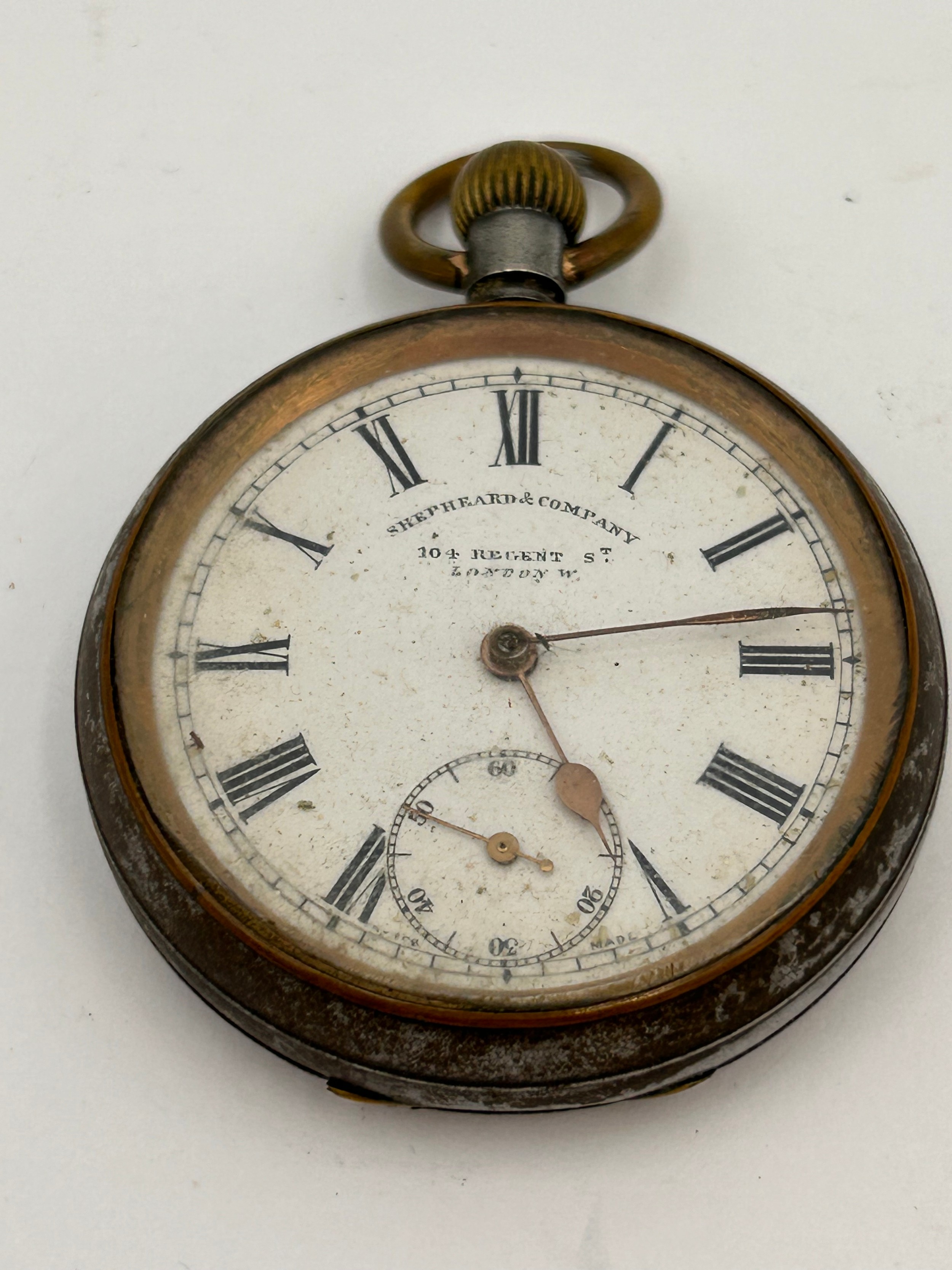Vintage Gun Metal Pocket Watch , None Runner, Shepheard & Co , Regent St London.