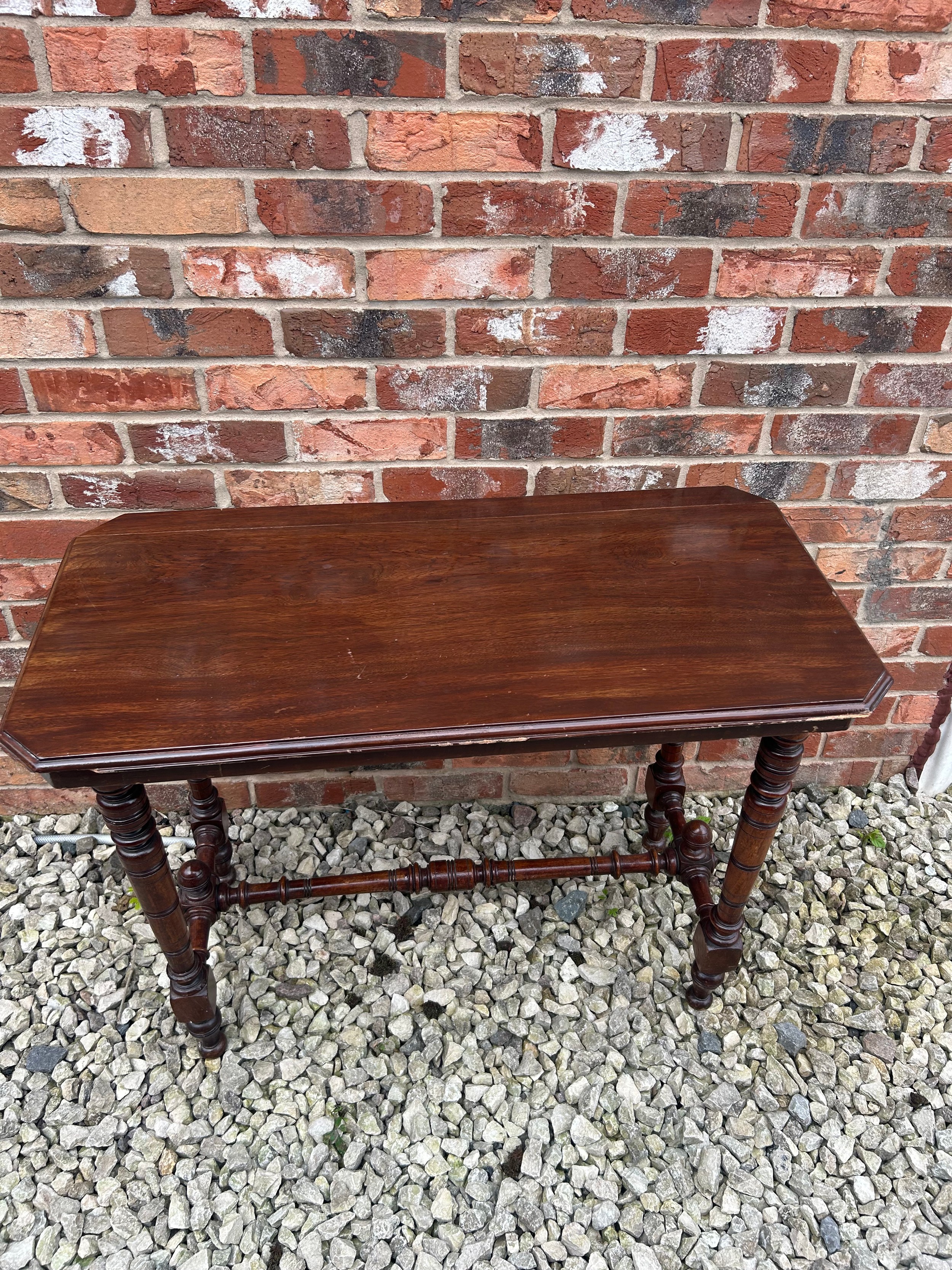 Wooden Side Table Roughly 32” x 26” x 15”.