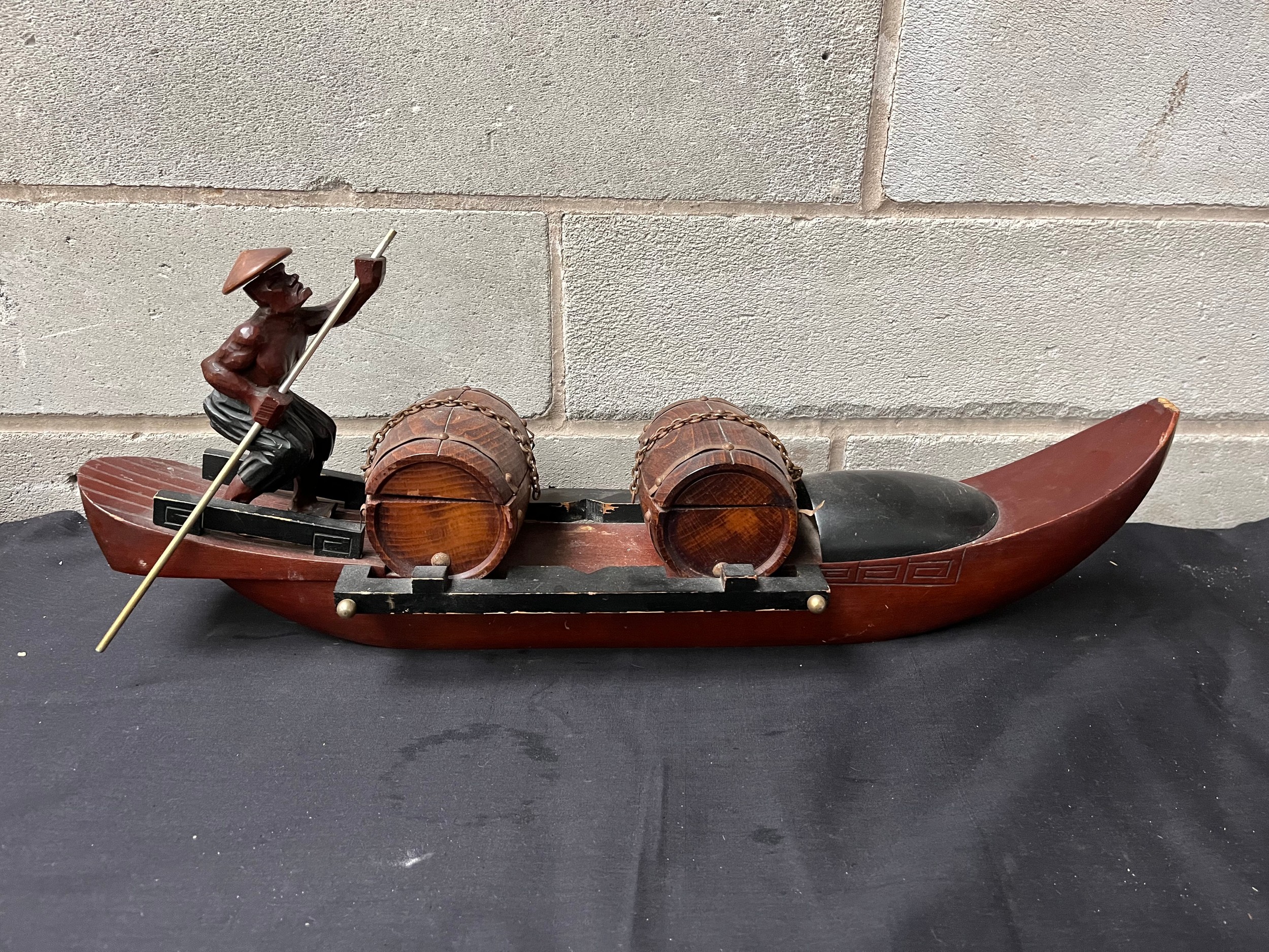 Carved Man On Boat 22" x 9".