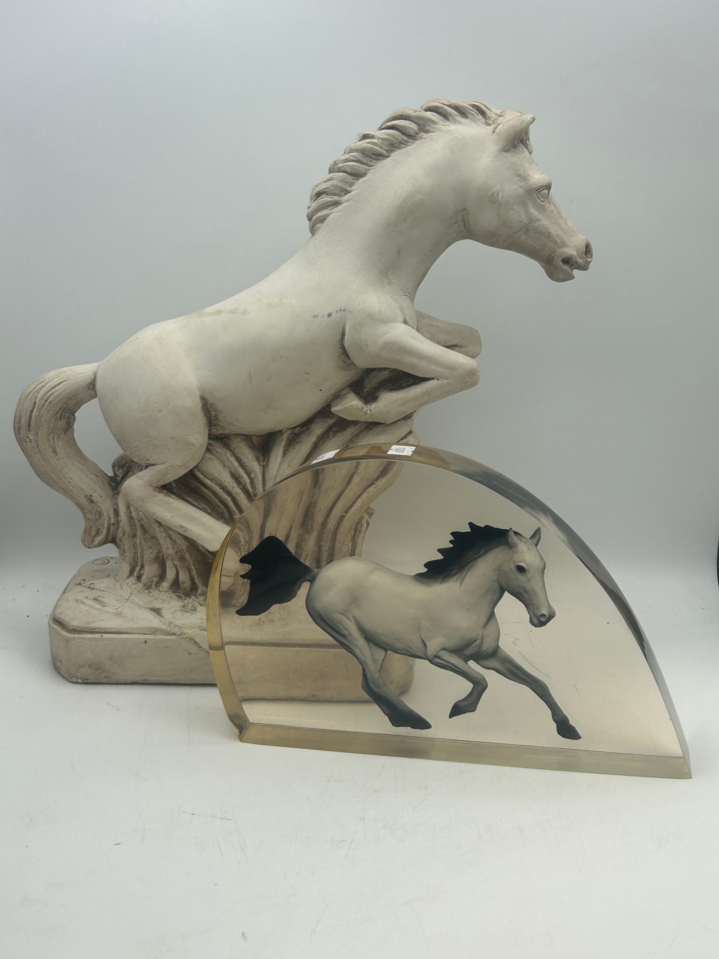 Large Heavy Figure of A Horse , Signed 14" x 13"Plus Other Horse Figure.