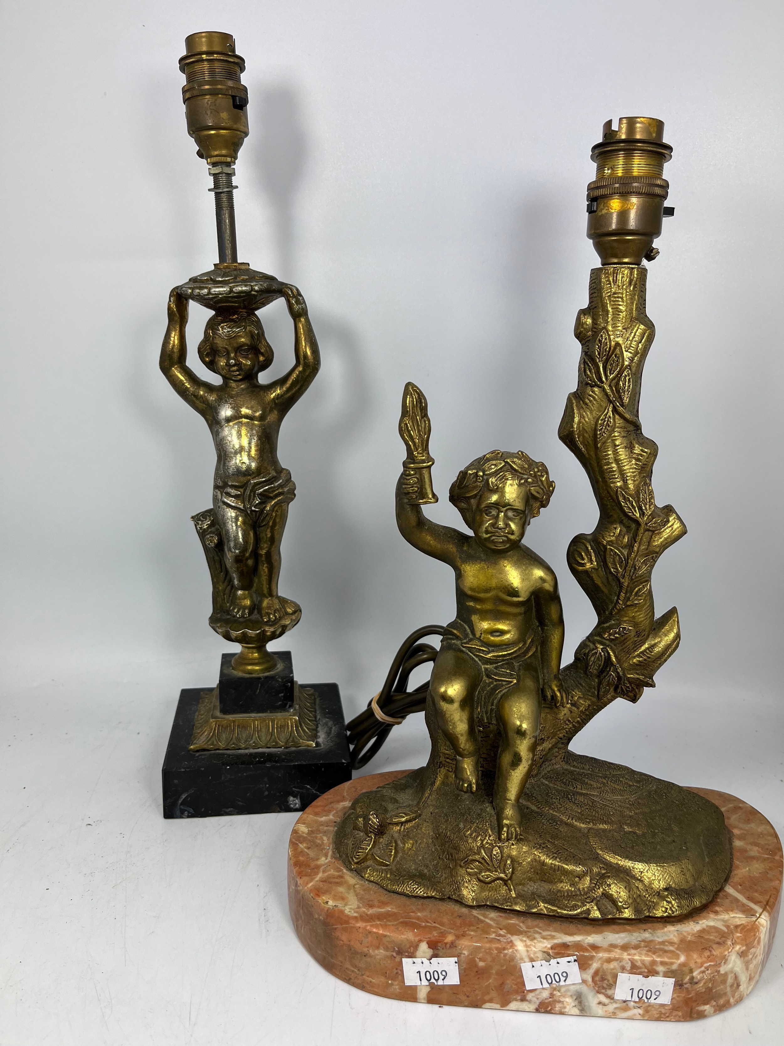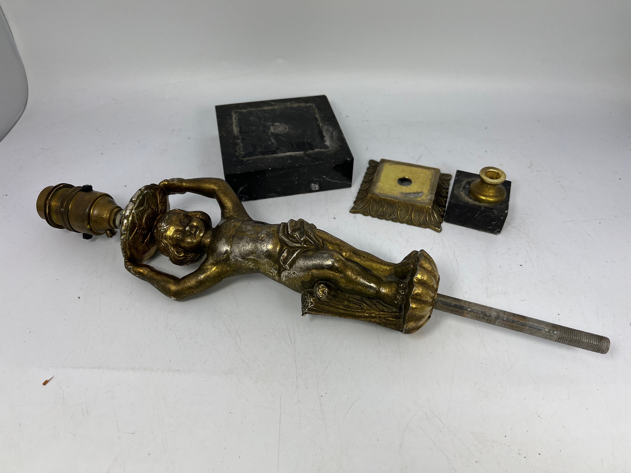 Two Brass And Marble Lamp Bases Standing 14". One AF