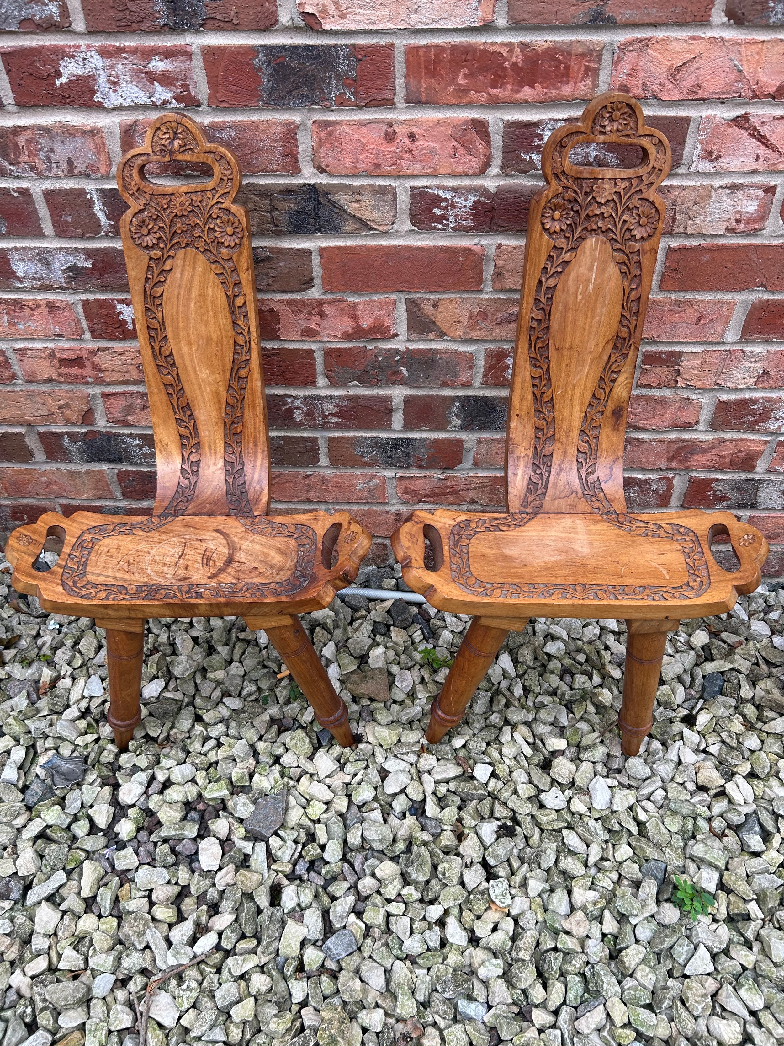 Pair Of Carved Birthing Stools.