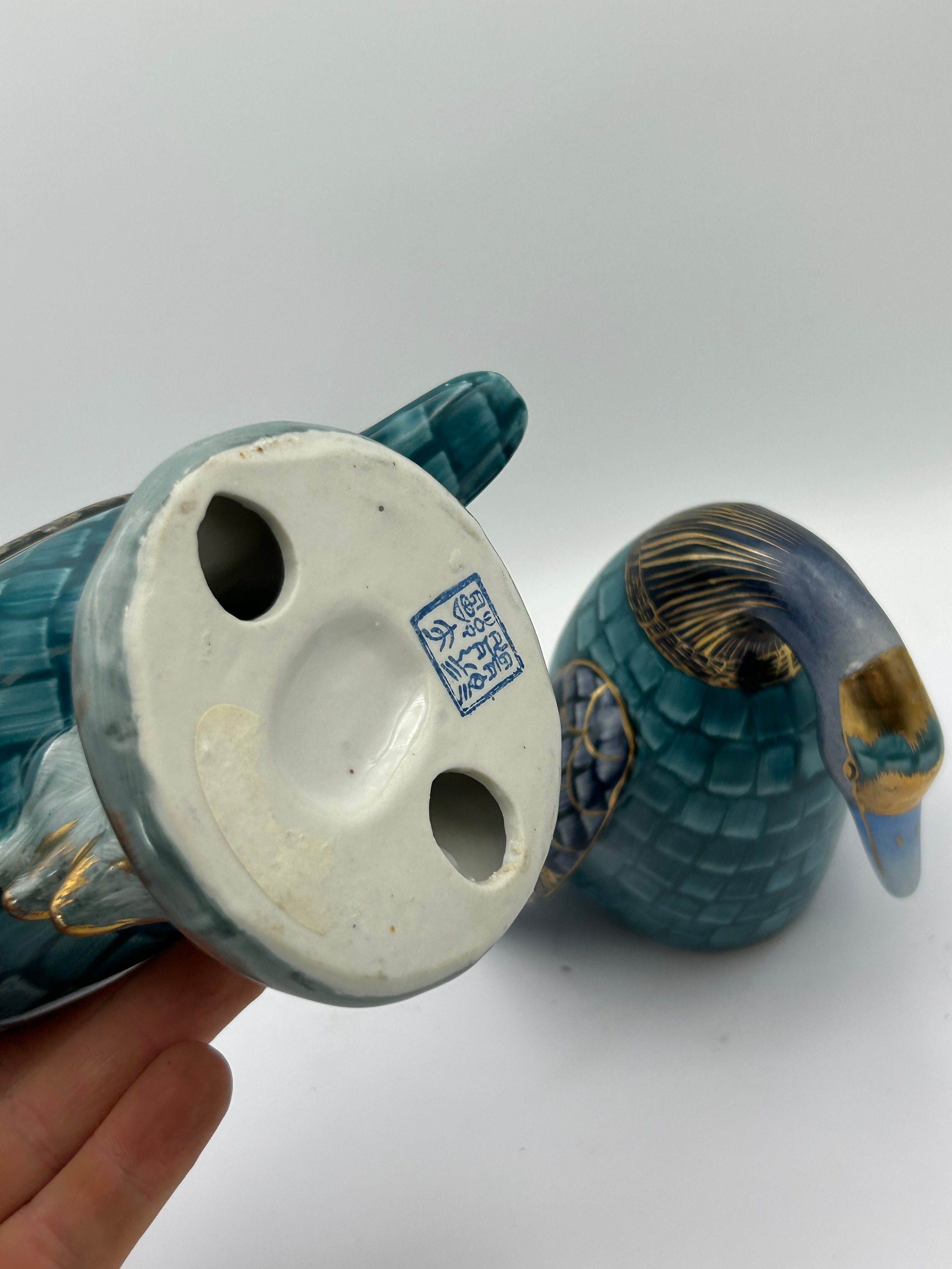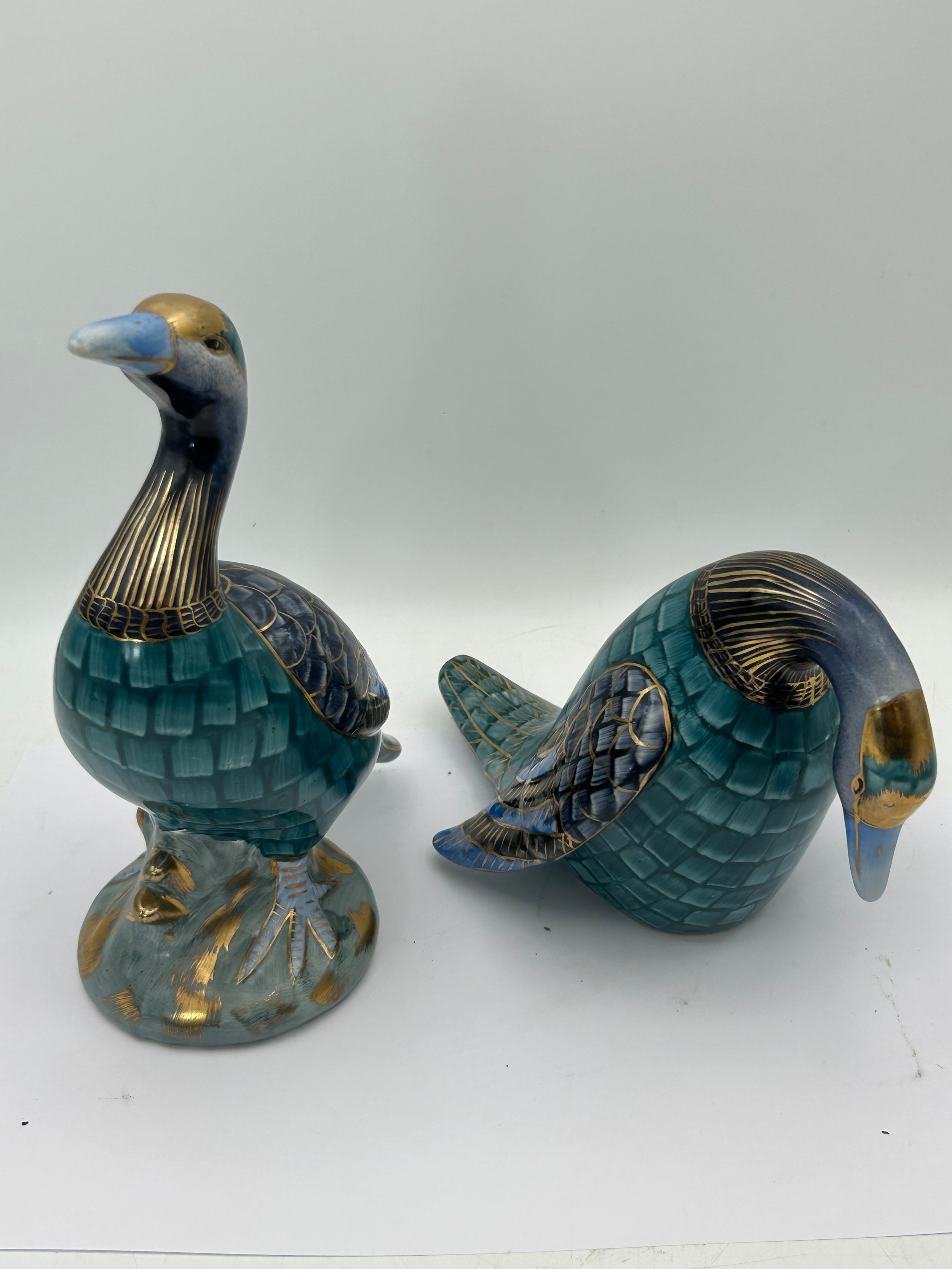 Two Hand Painted Ducks With Makers Stamp To Base