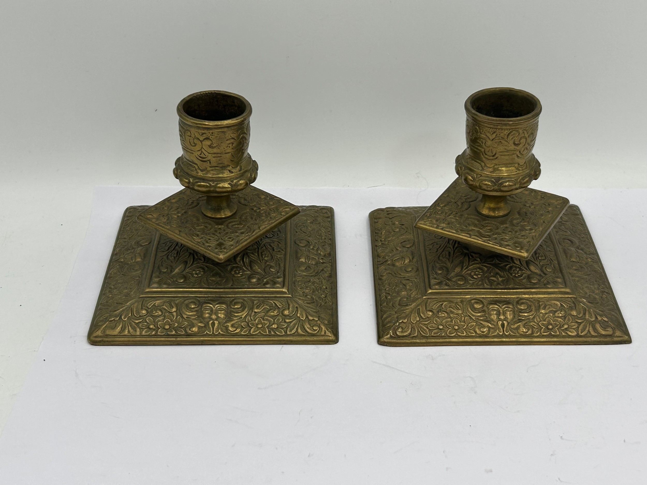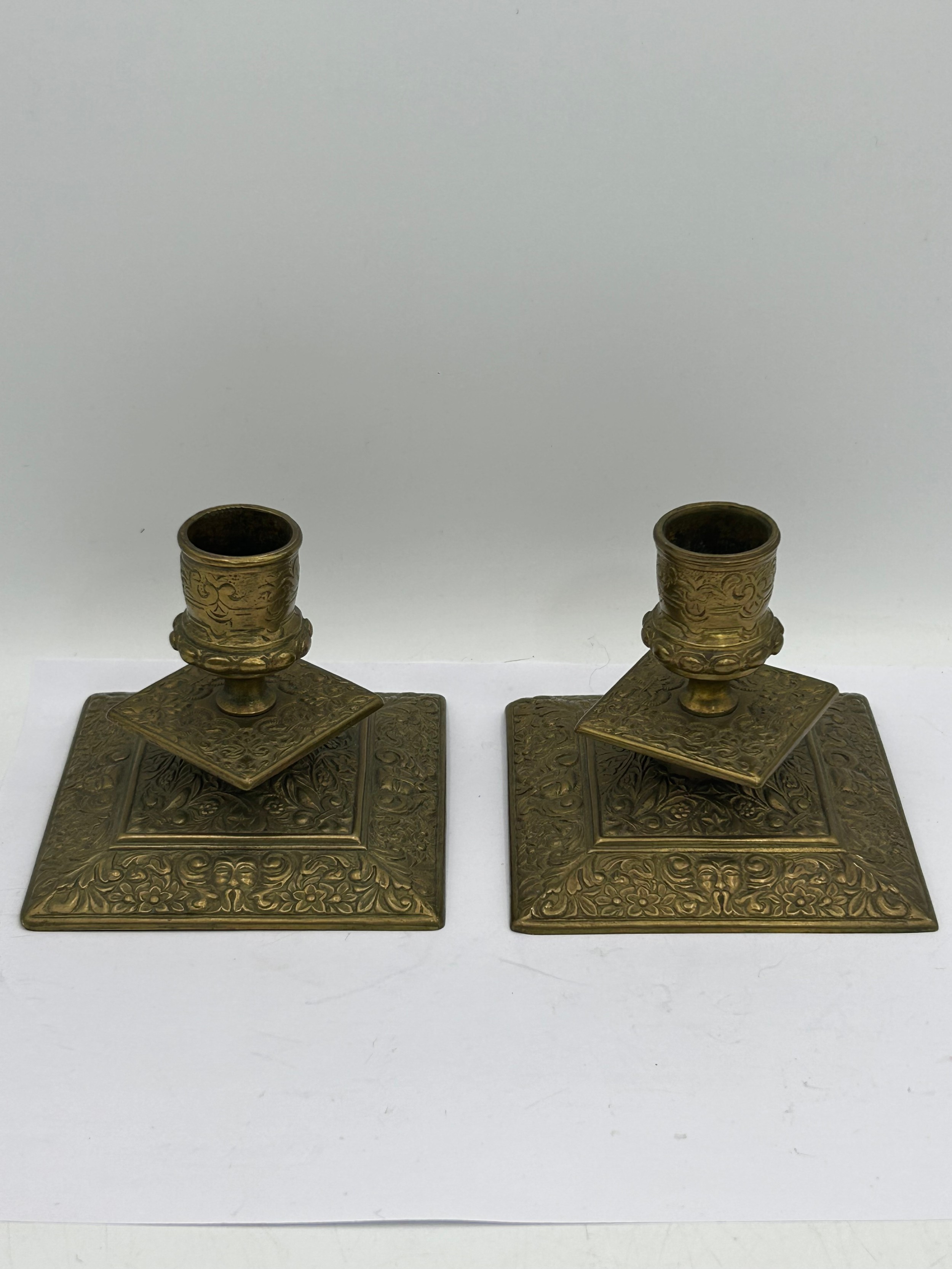 Pair Of Brass Detailed Candle Sticks 4" x 3.5".