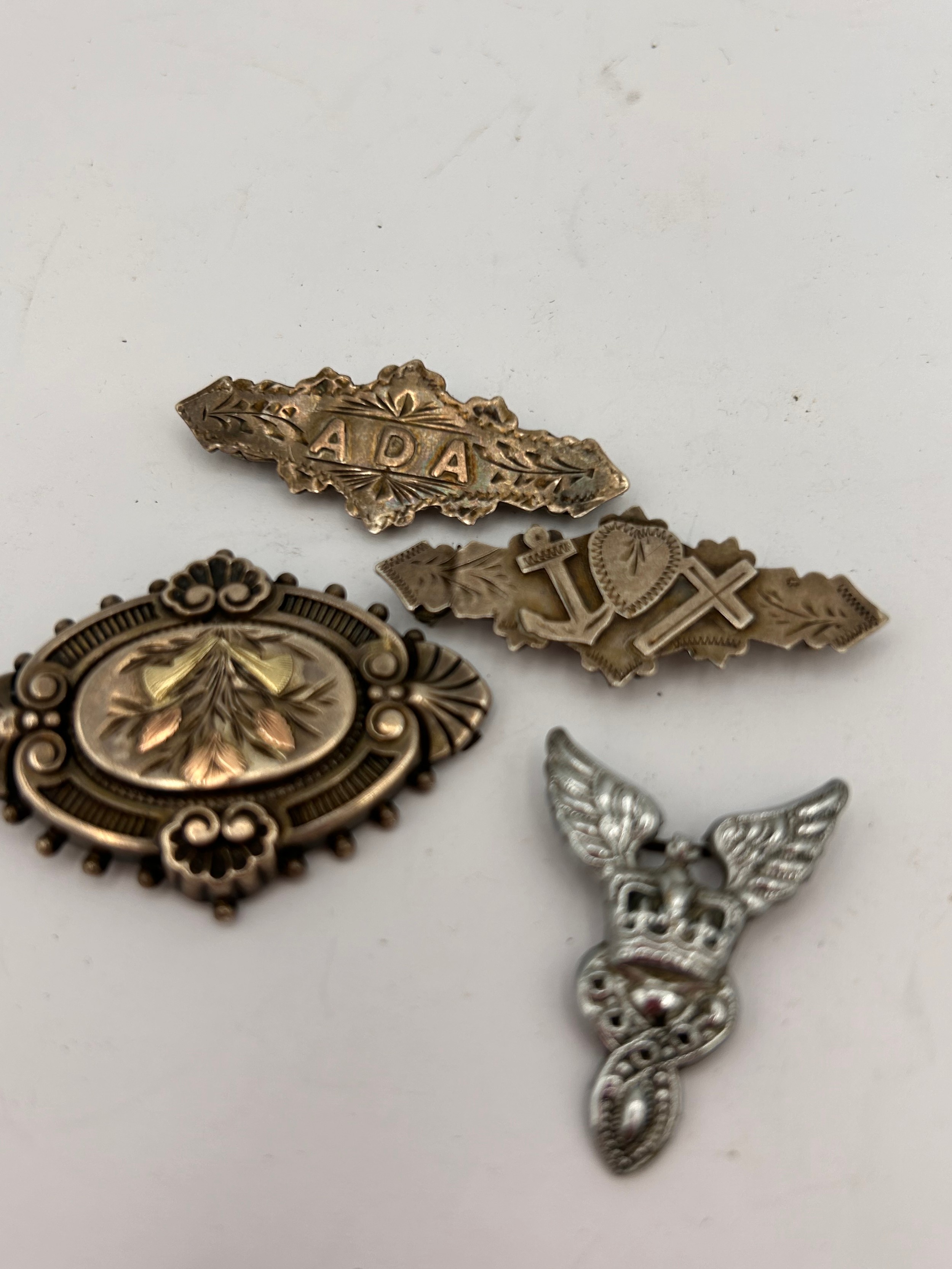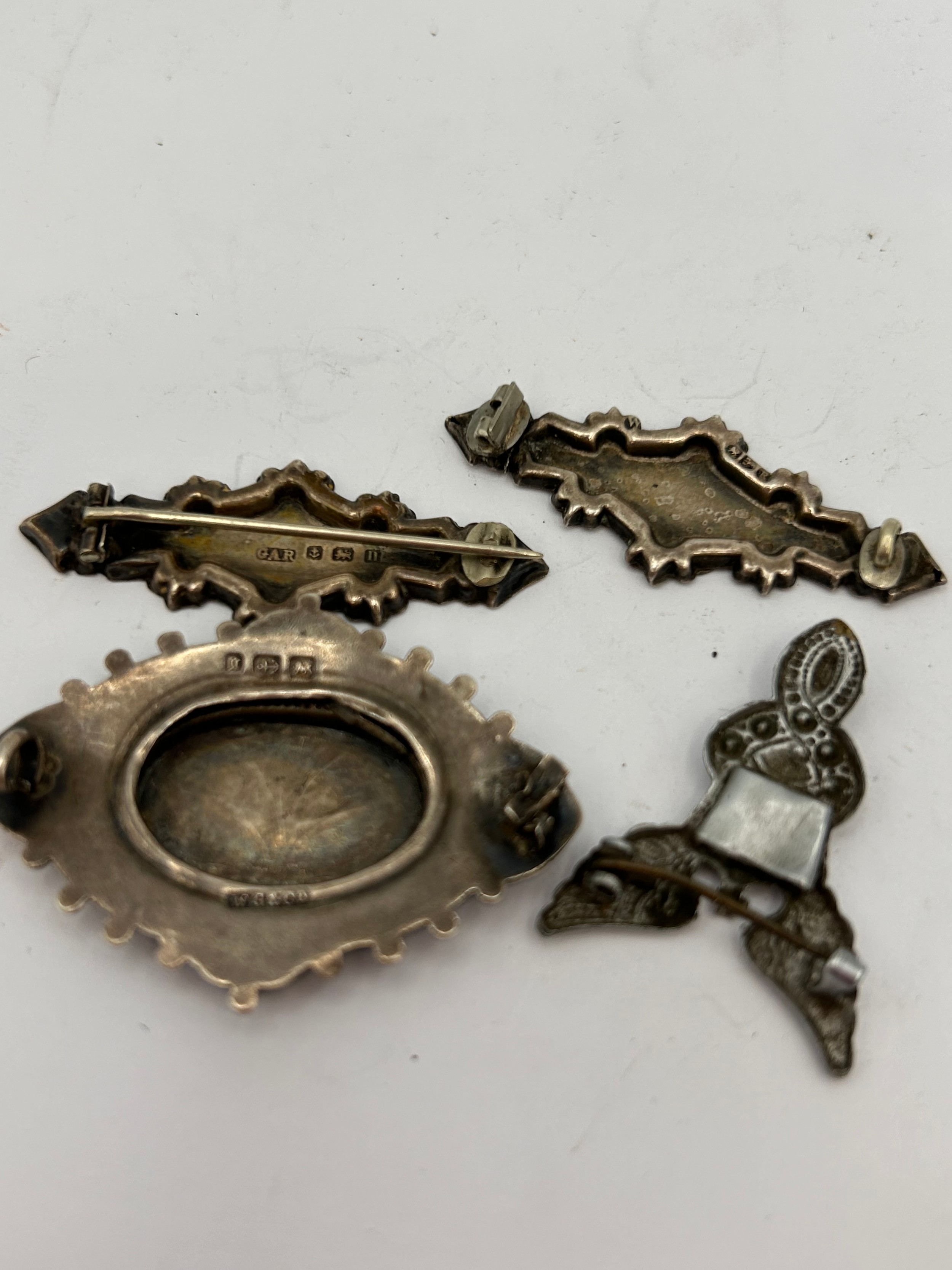 Three Antique Silver Brooches AF , Plus White Metal Example.
