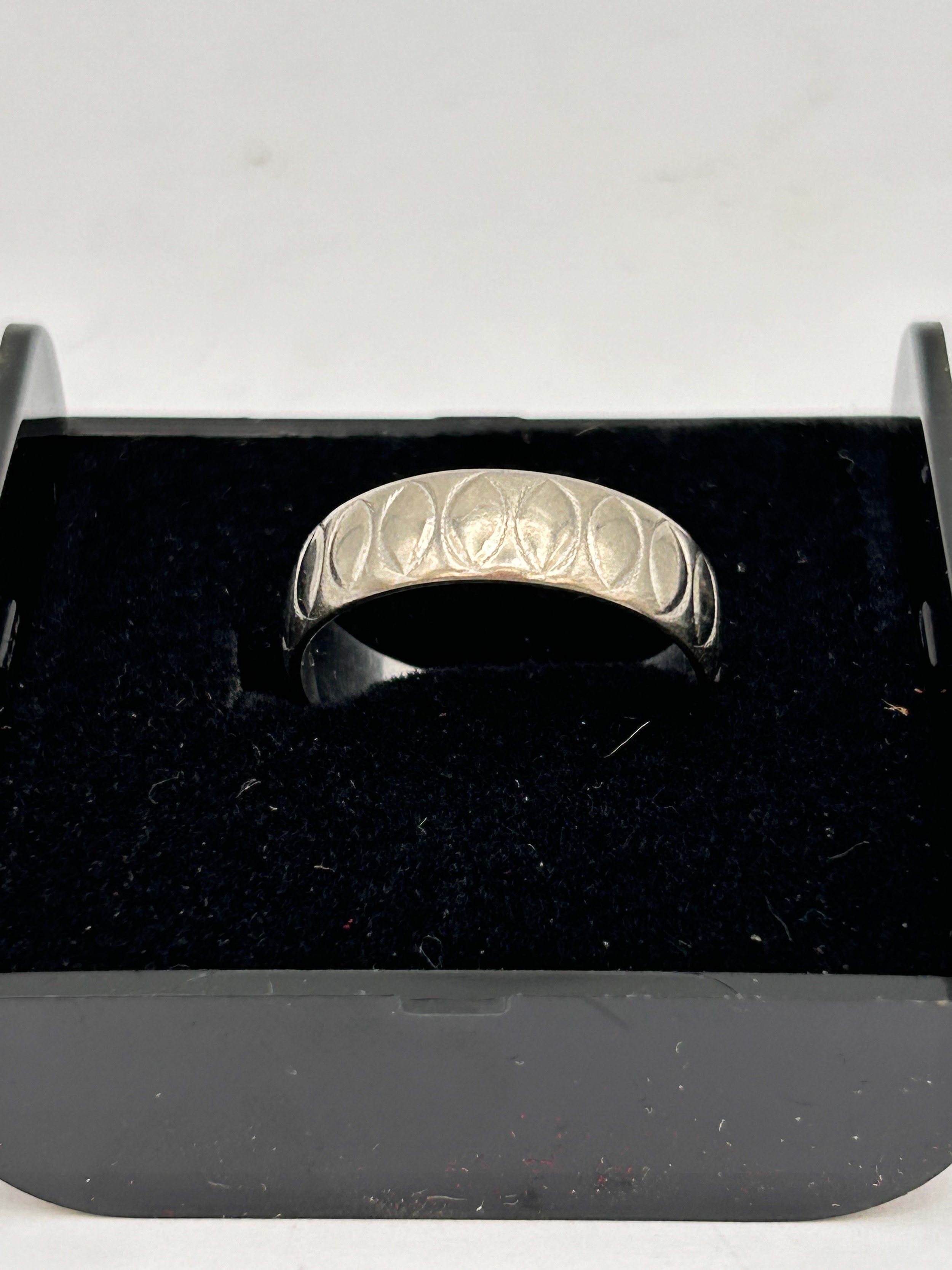 18ct White Gold Decorated Band 5g, Size O.