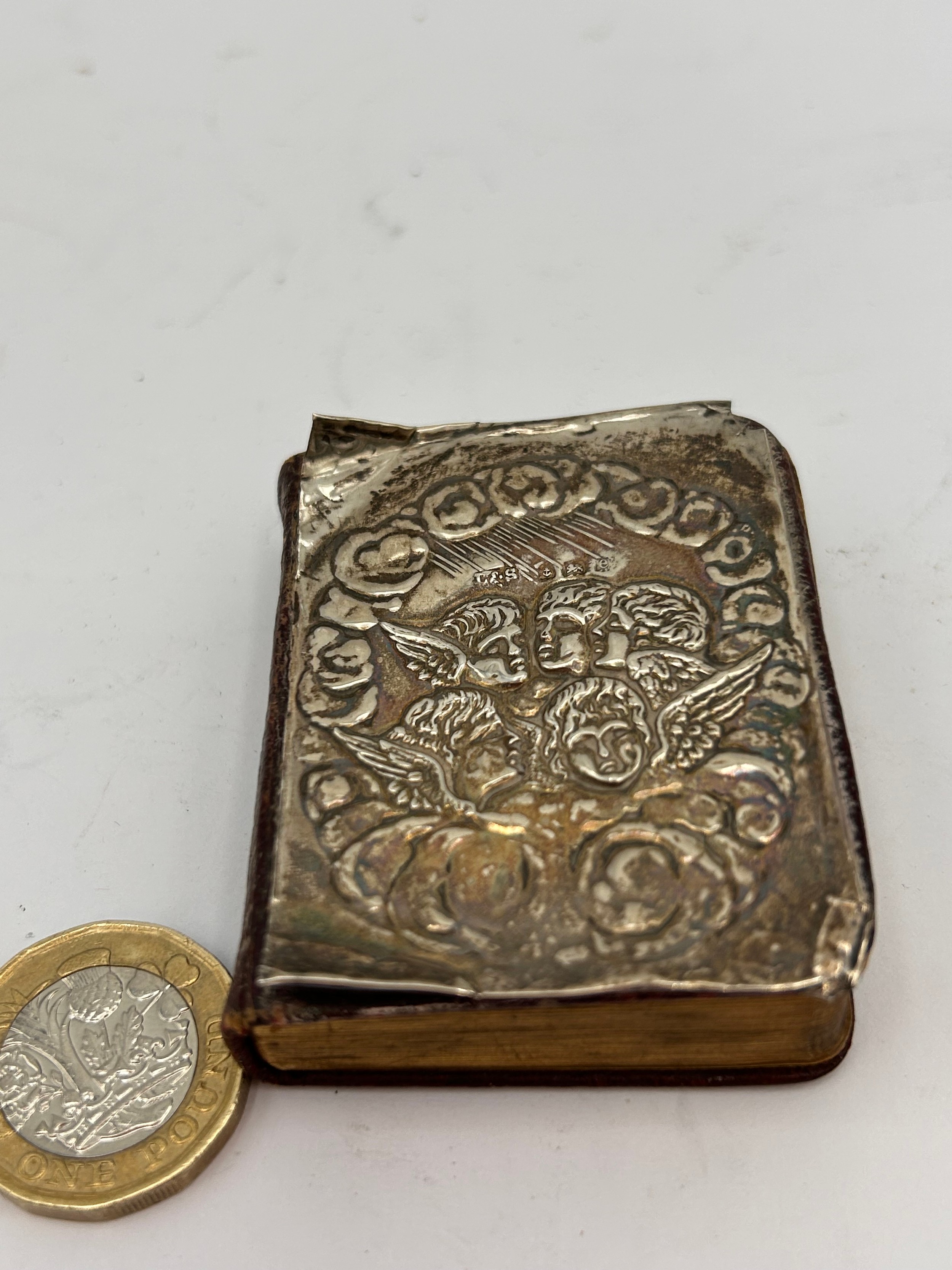 Antique Silver Fronted Prayer Book With Cherub Detail.