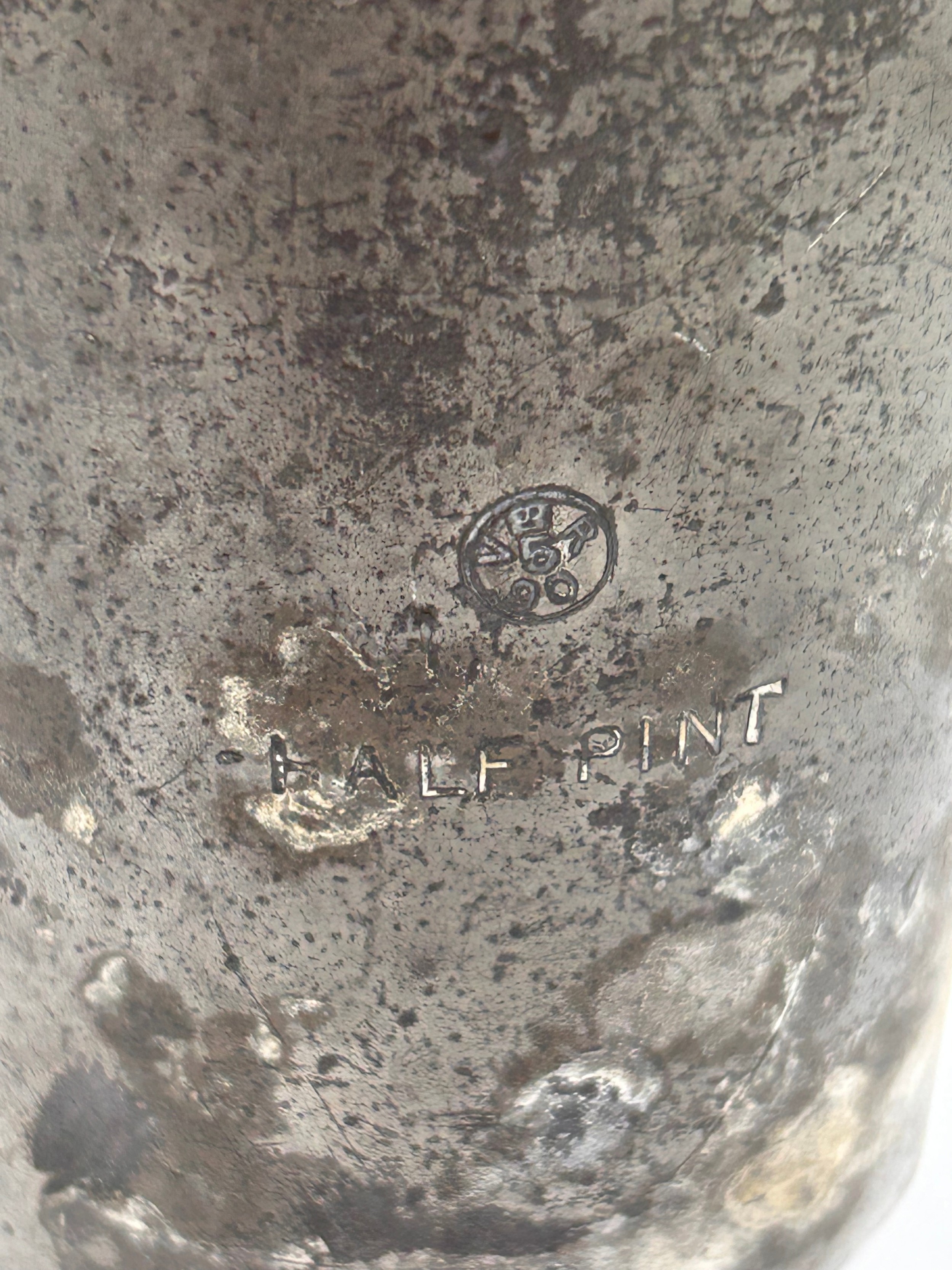 Antique Pewter Half Pint Measure Dated 1861.