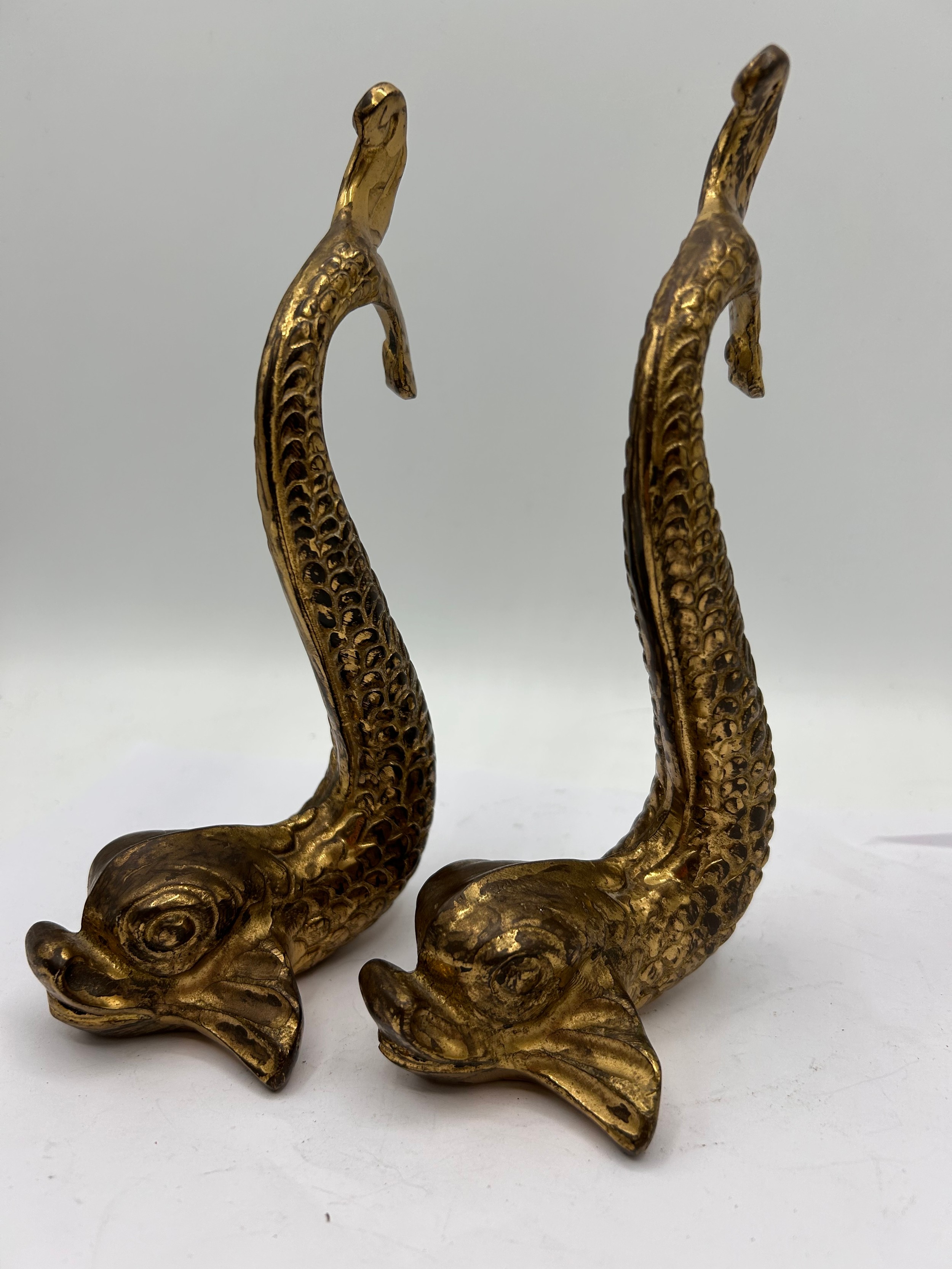 Hand Made F Abela And Sons (Malta) Pair Of Brass Dolphins 7" High.