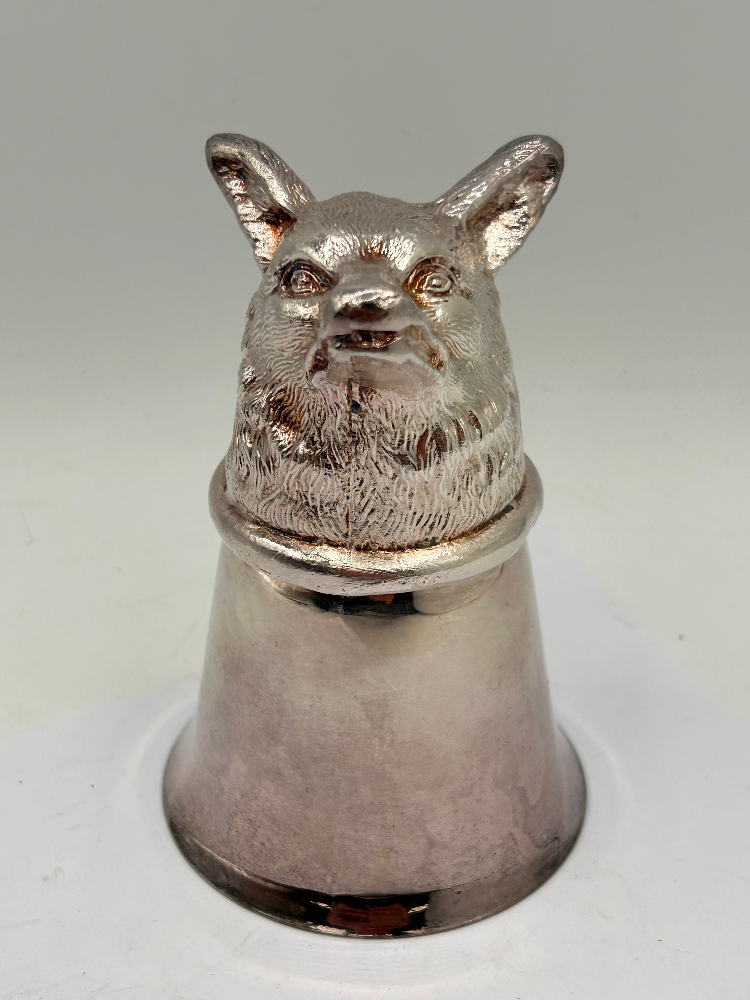 Silver Plated Fox Themed Stirrup Cup, Standing 4".