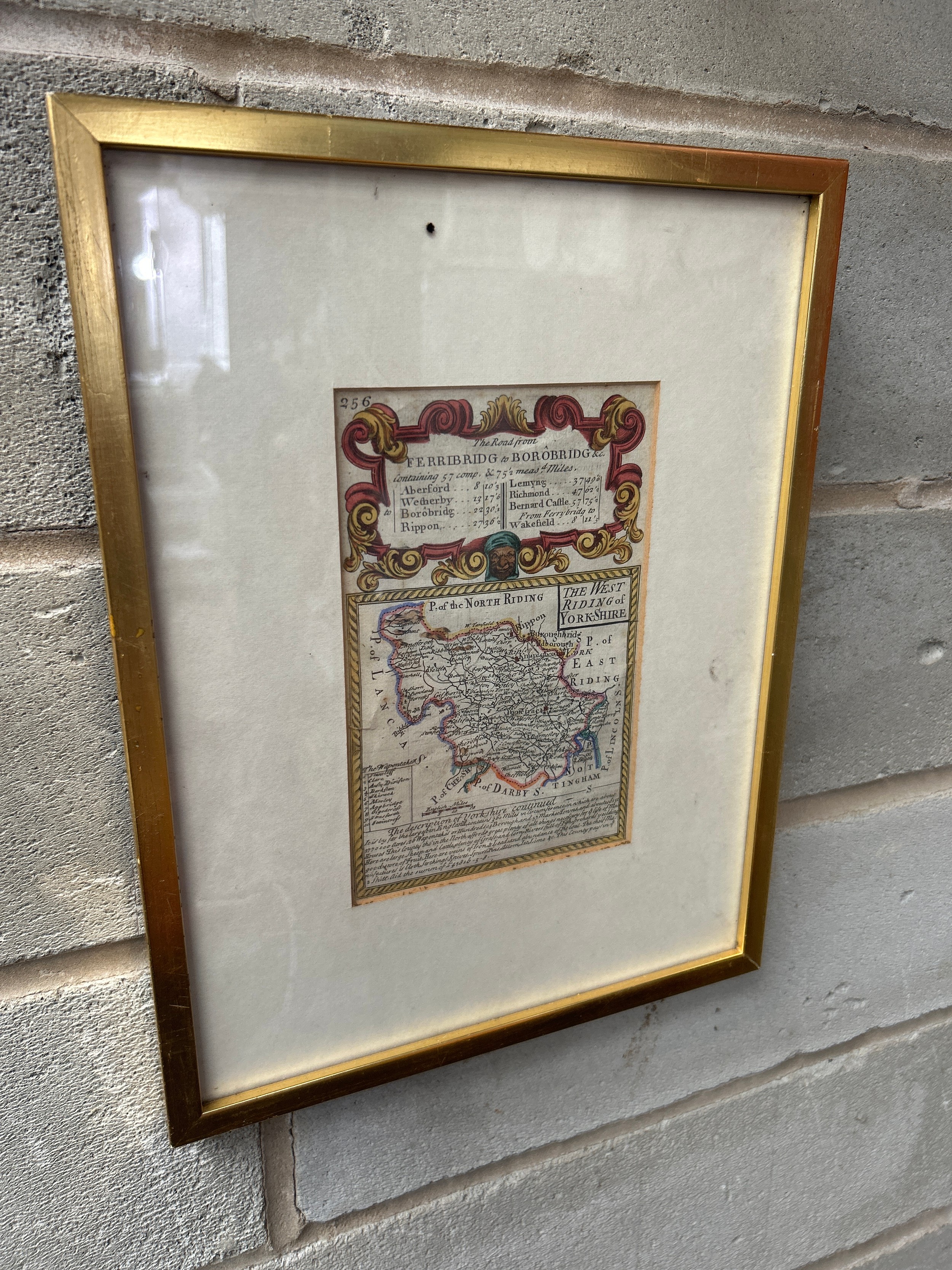 Antique Framed Map of Ferrybridge and Borobridge 13 x 11"