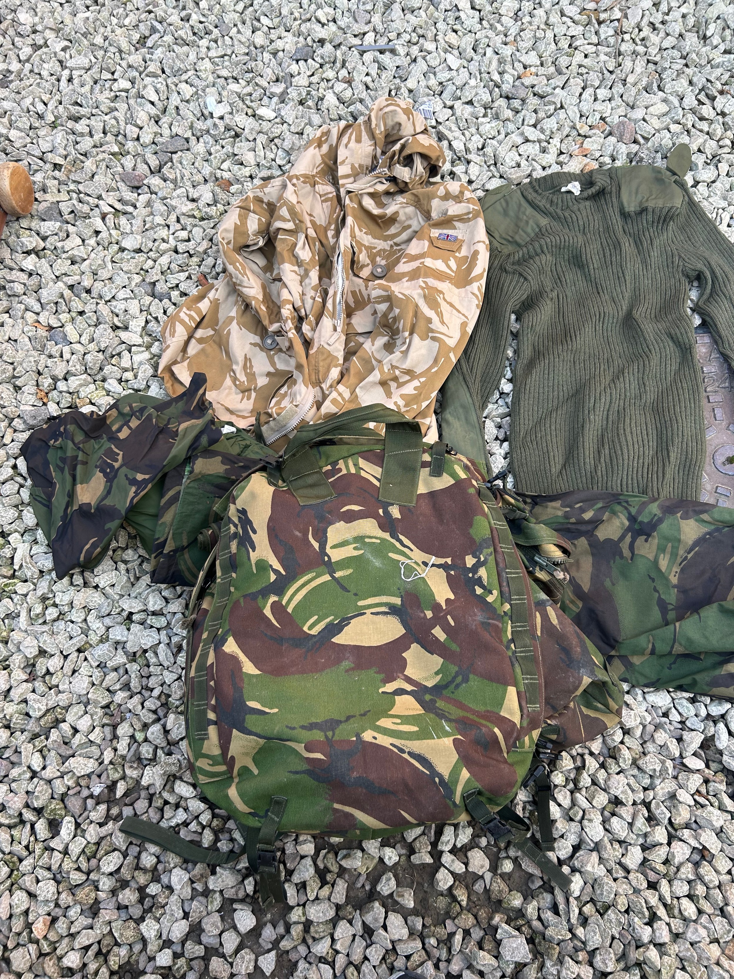Military Bag With Camouflage Clothing.
