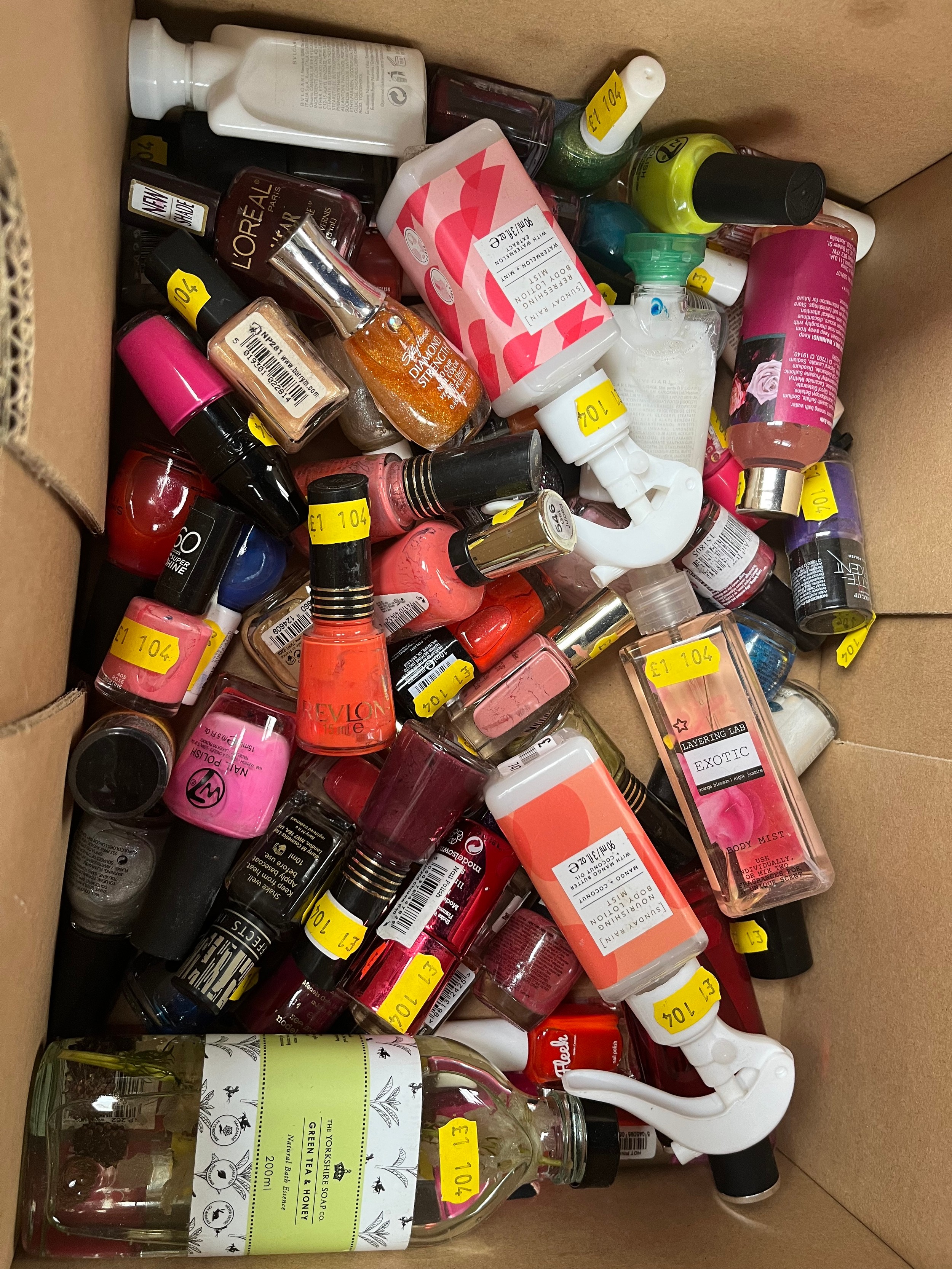 Box Of Beauty Products Including Nail Varnish ,Body Lotion Etc.