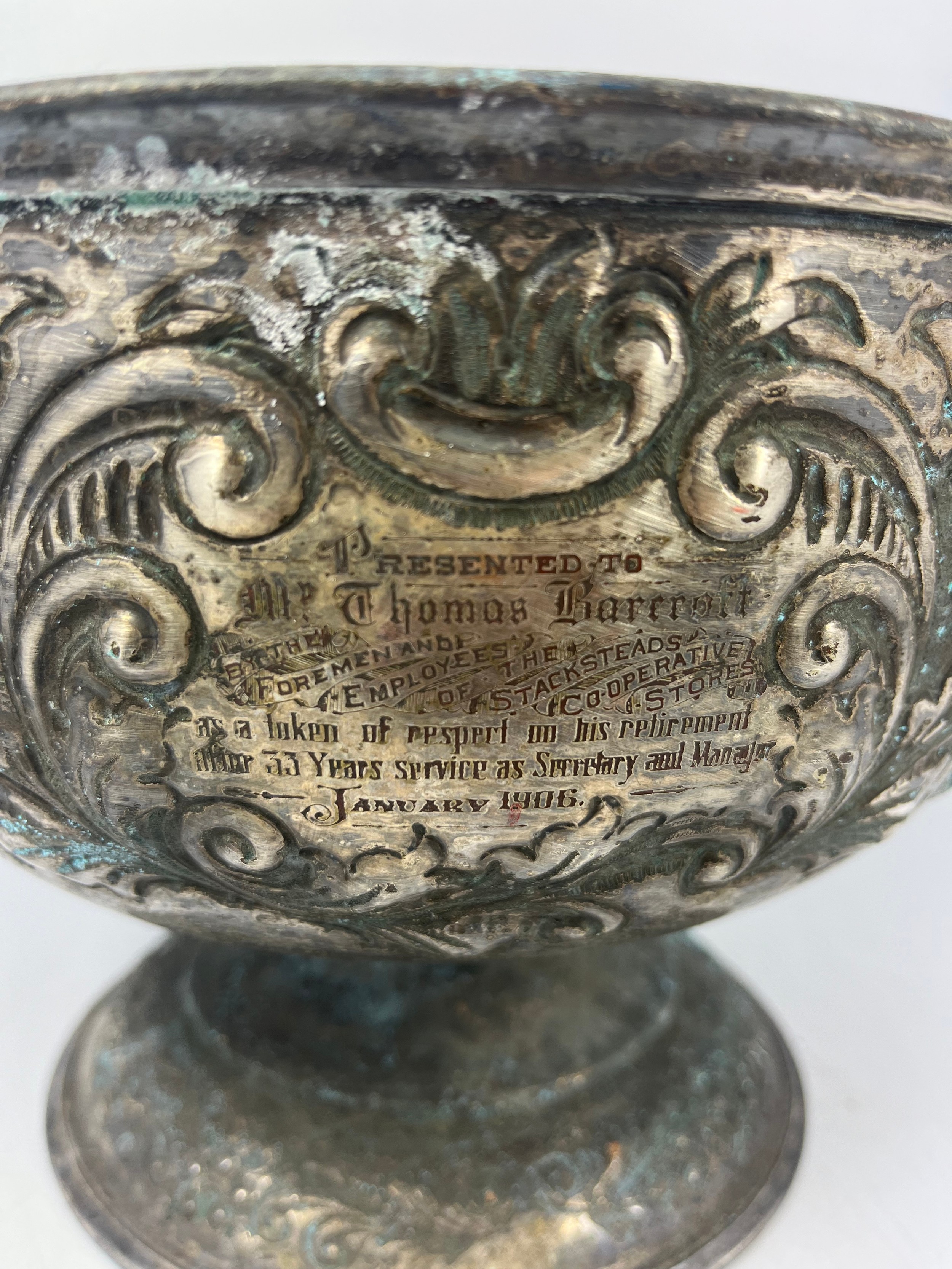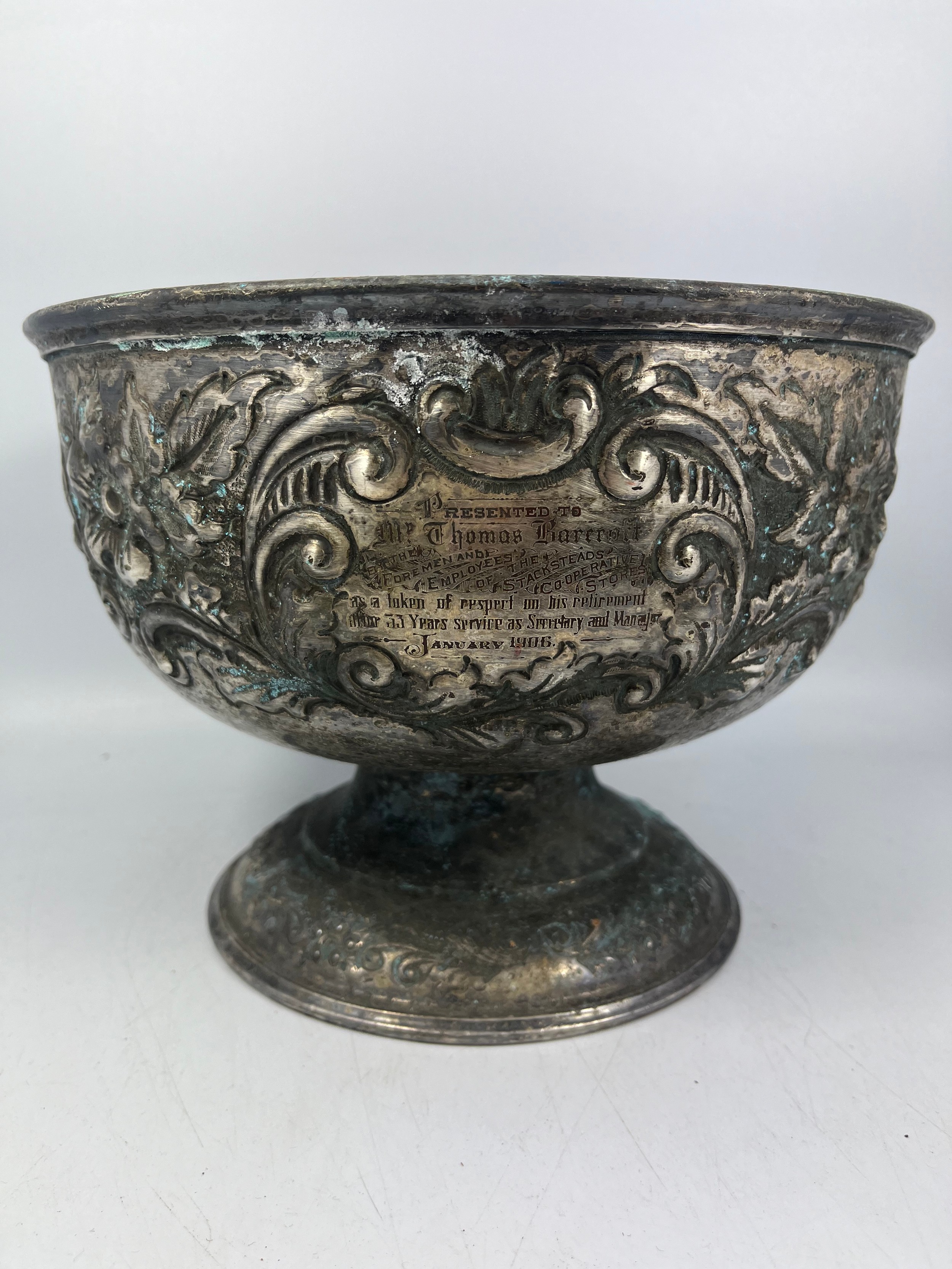 Large Silver Plate Presentation Piece Fruit Bowl 7" x 9.5" Dated January 1906.