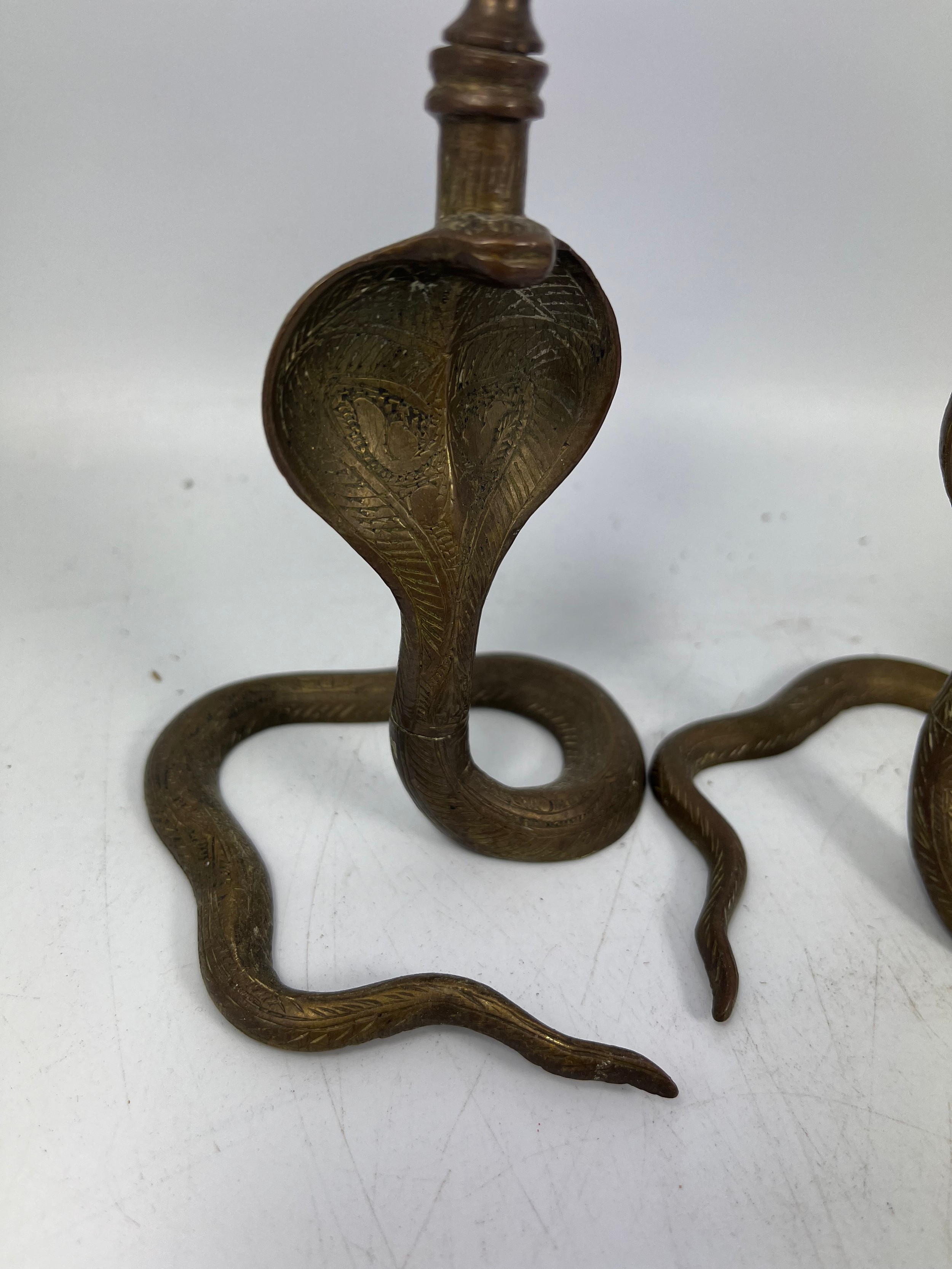 Pair Of Brass Cobra Candle Sticks Standing 6".