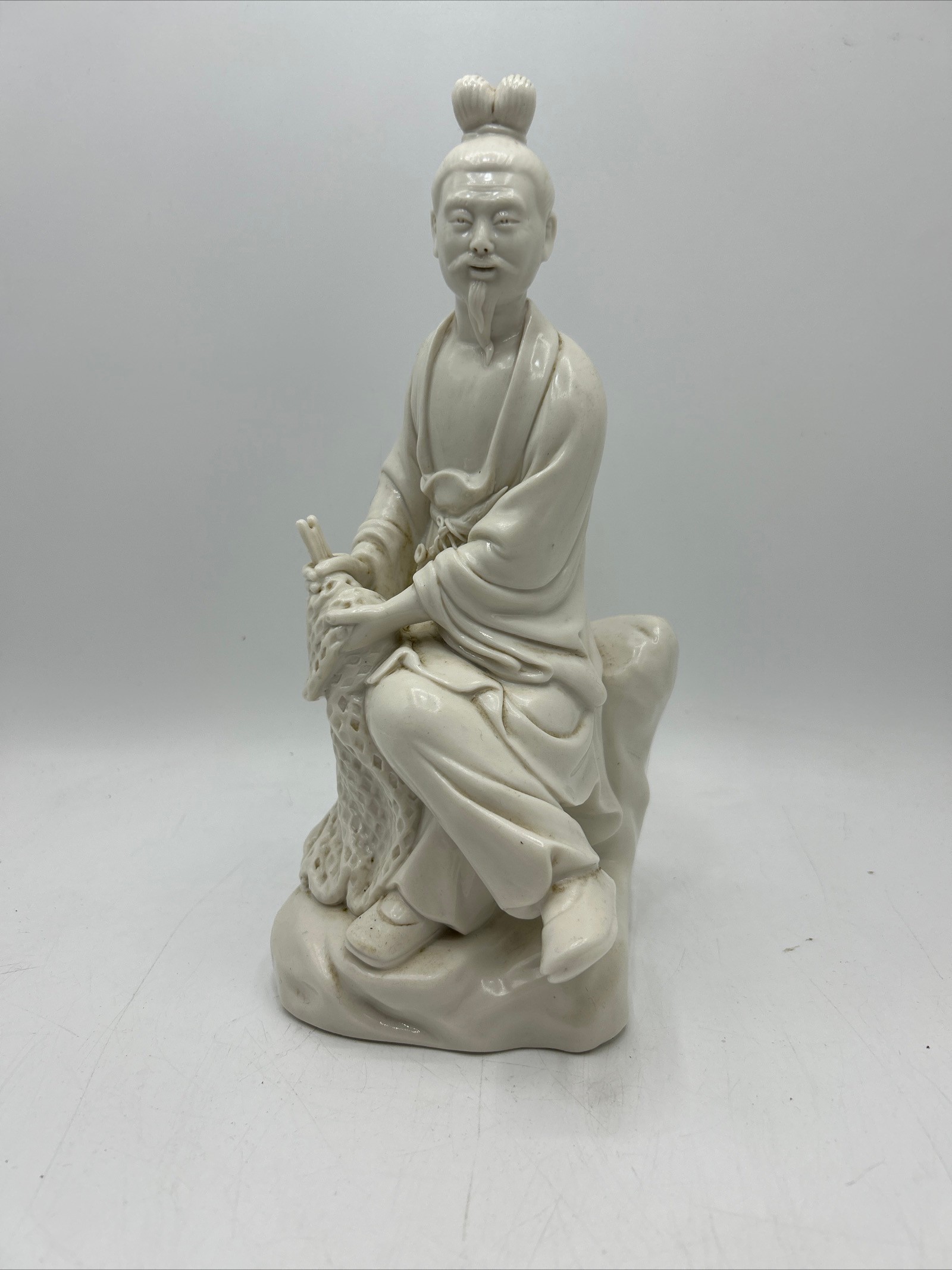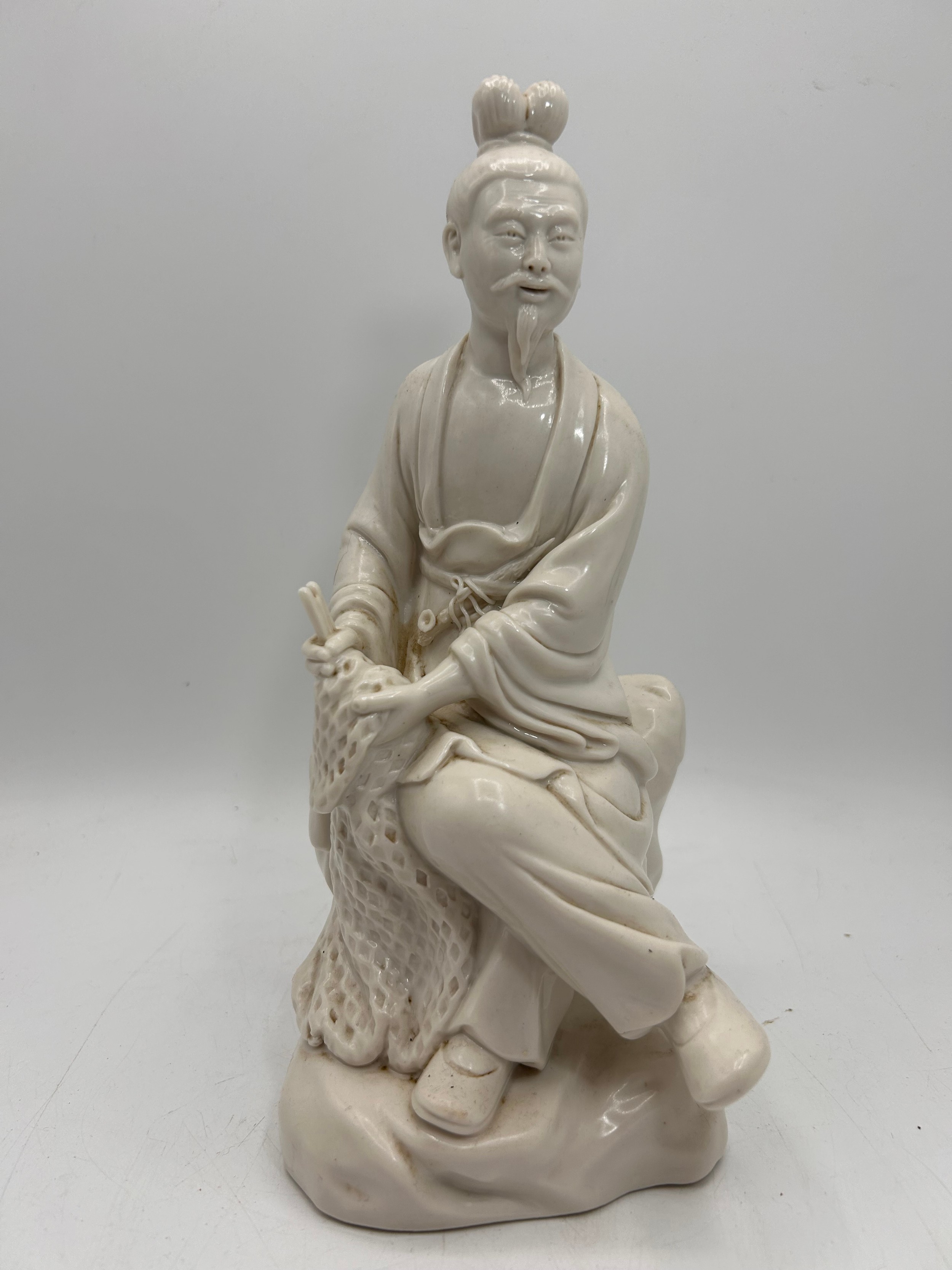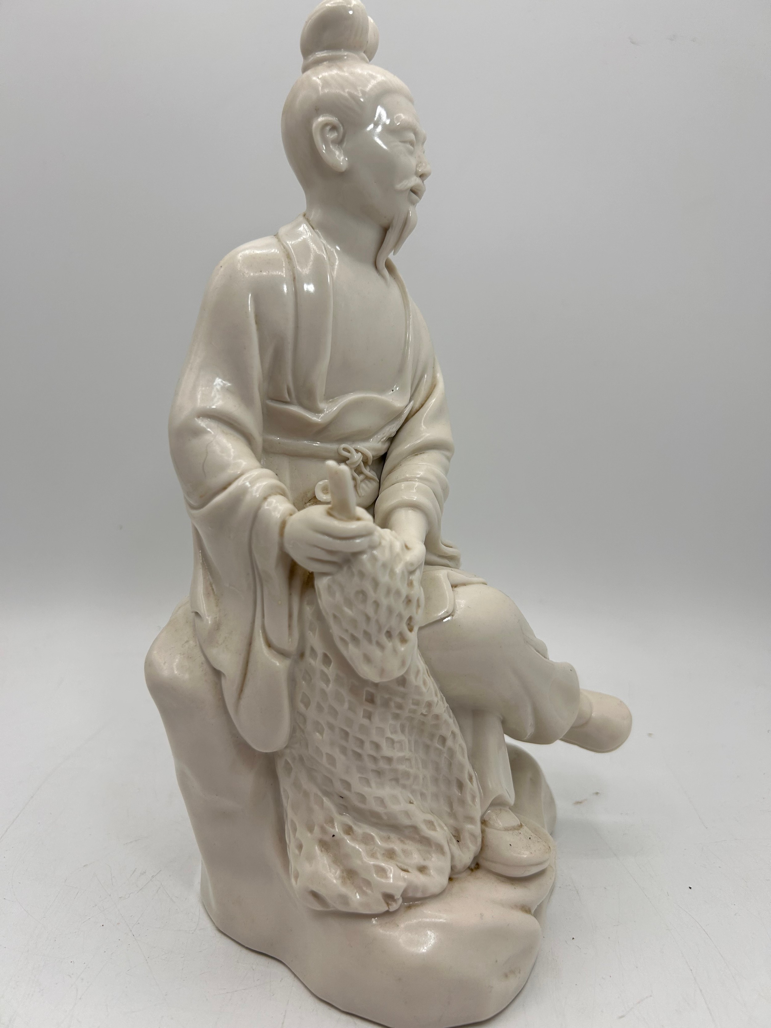Chinese Republic Period Blanc De Chine Figure Of Fisherman.Standing 9.5"