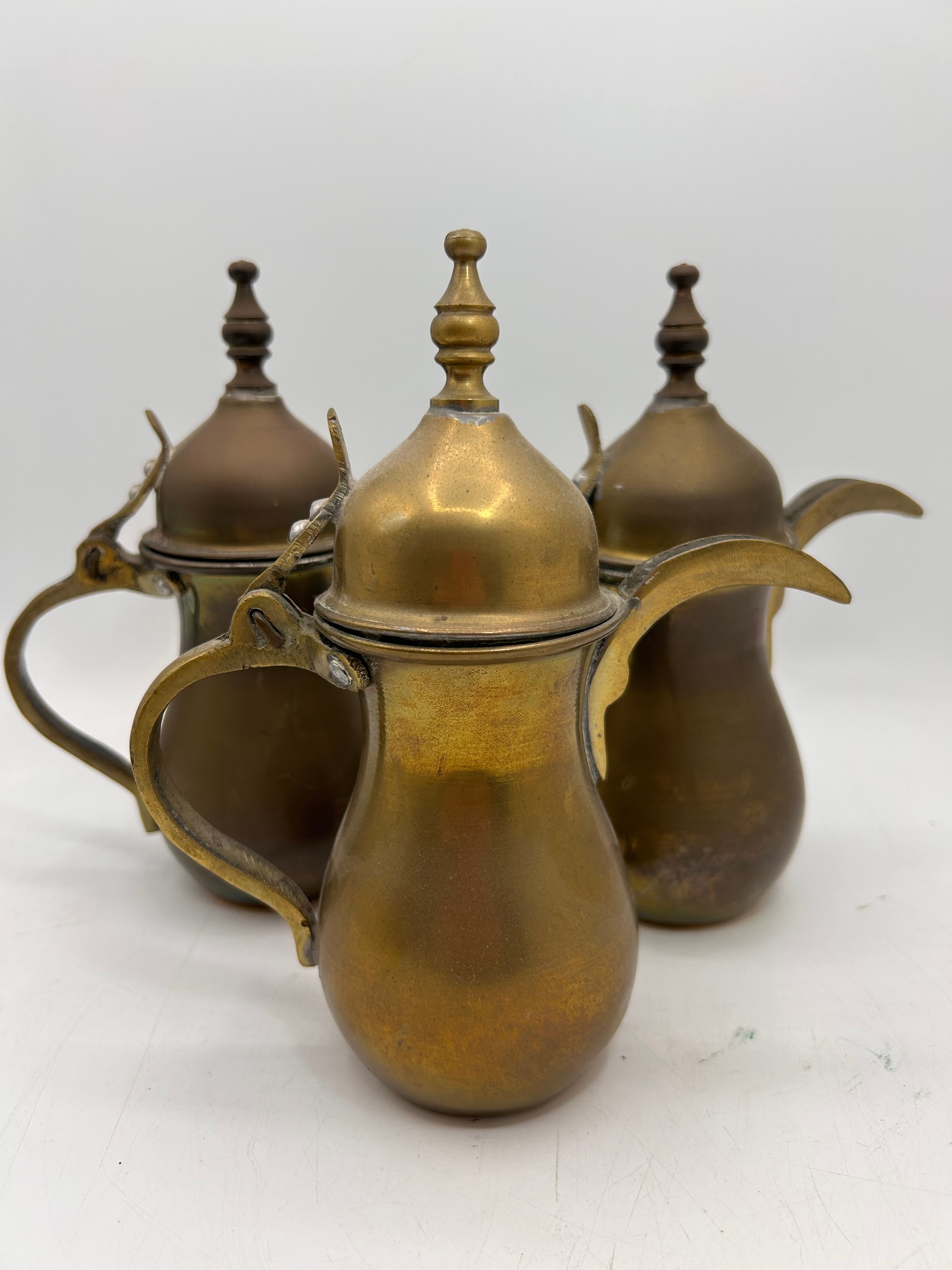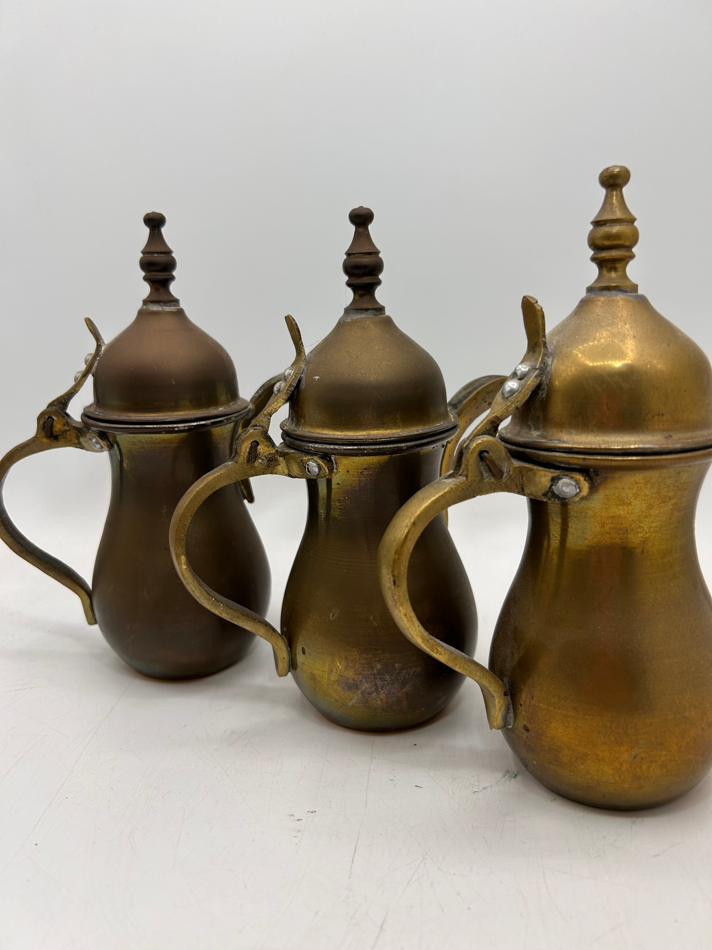 Three Middle Easter Brass/Copper Coffee Pots , Standing 7.5"