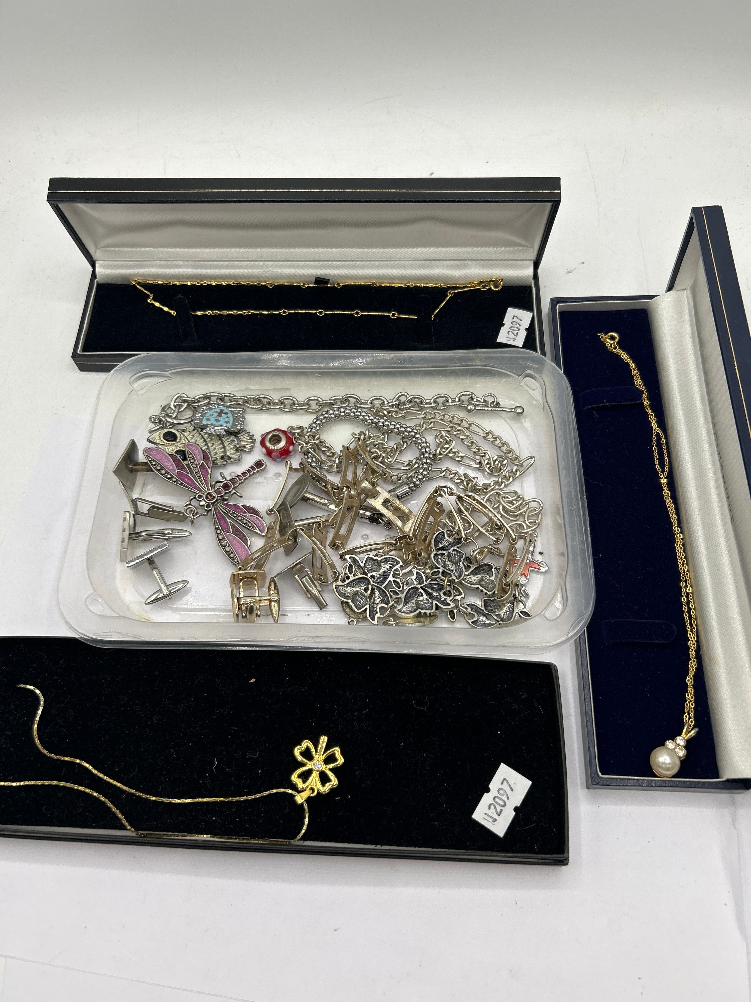 Collection Of Boxed Yellow Metal Costume Jewellery, Plus Tray Of White Metal Jewellery.