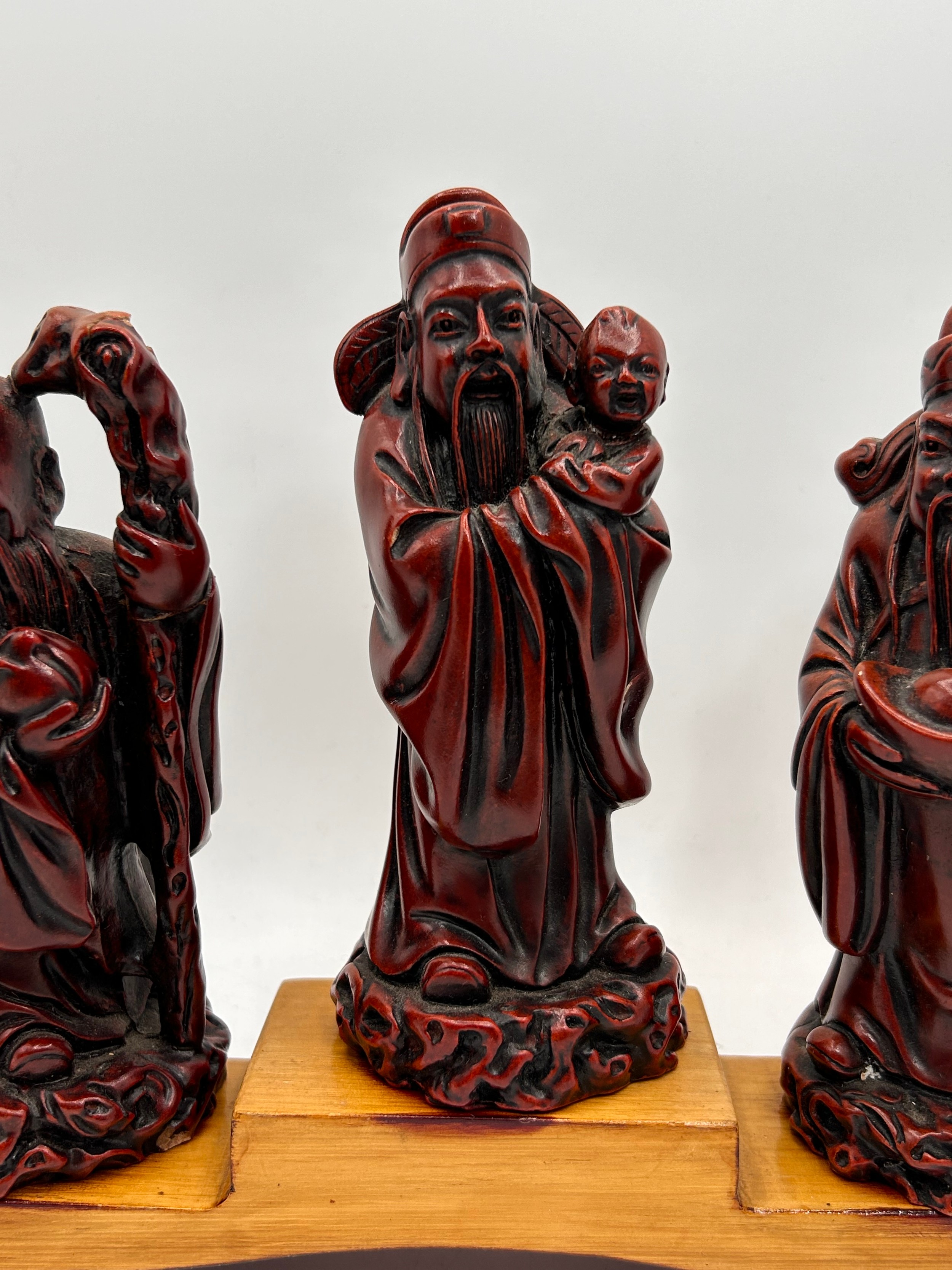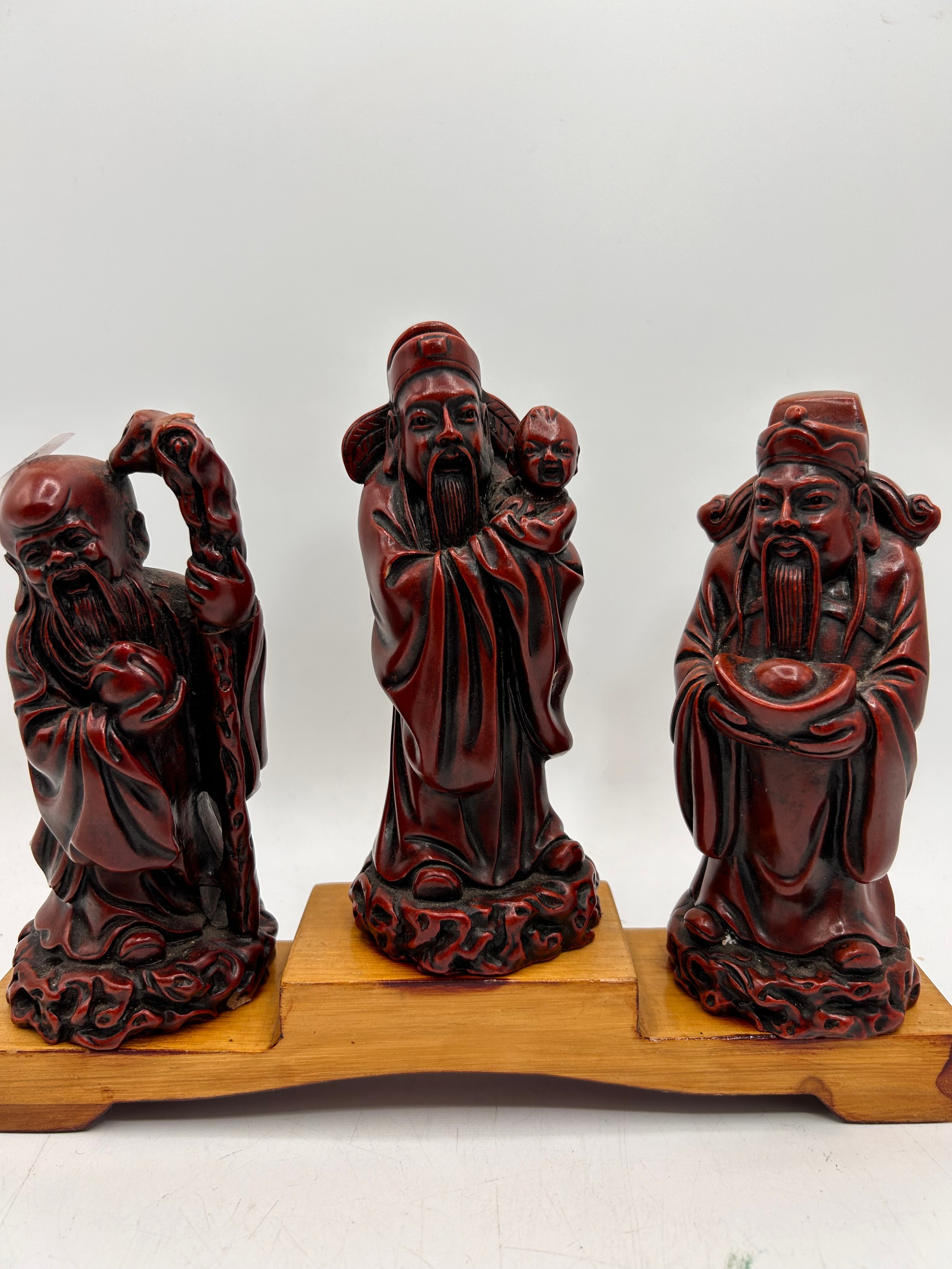 Trio Of Chinese Figures On Stand , 7" High.