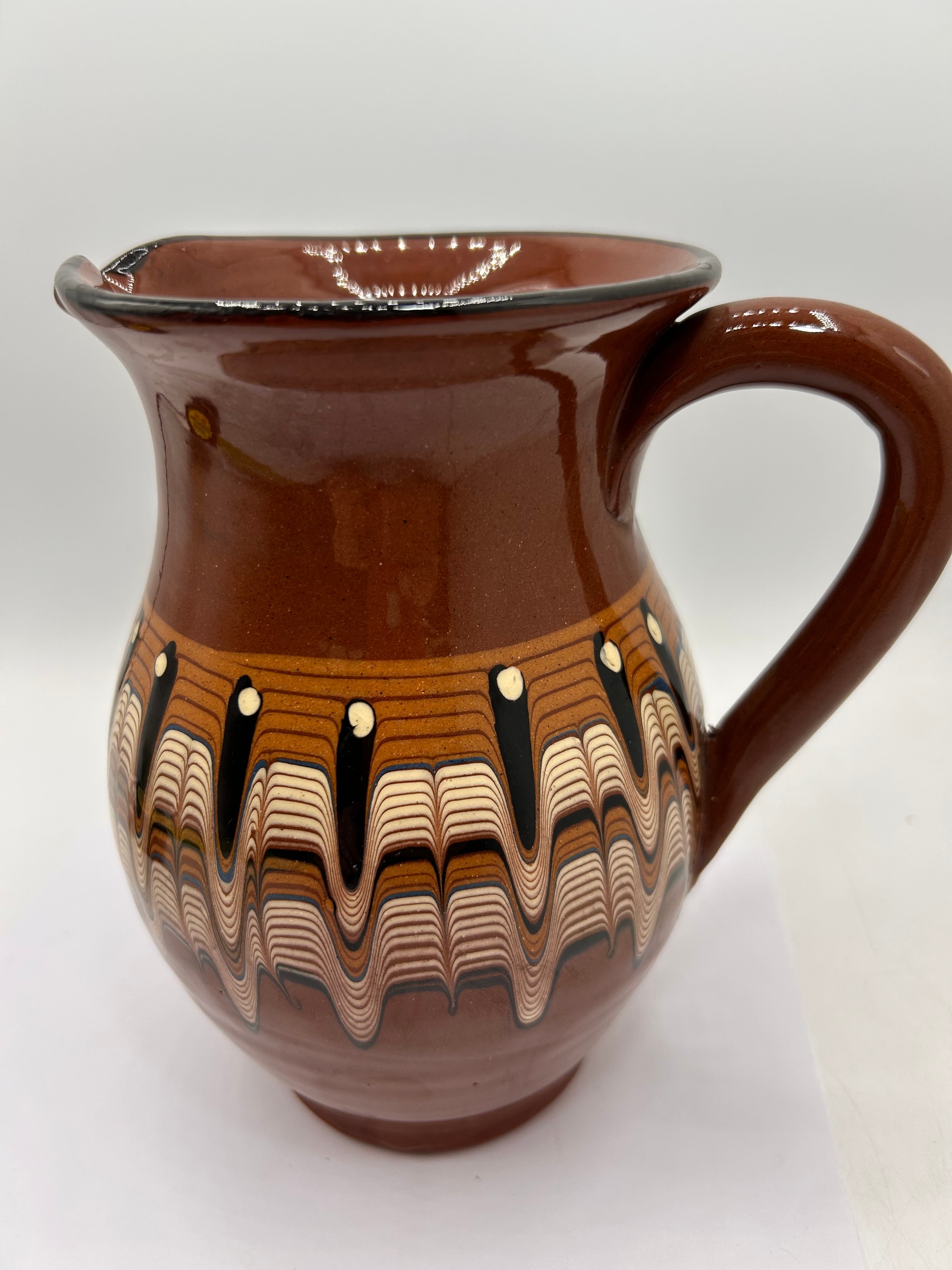 Vintage Bulgarian Troyan Redware Jug 7" Tall.