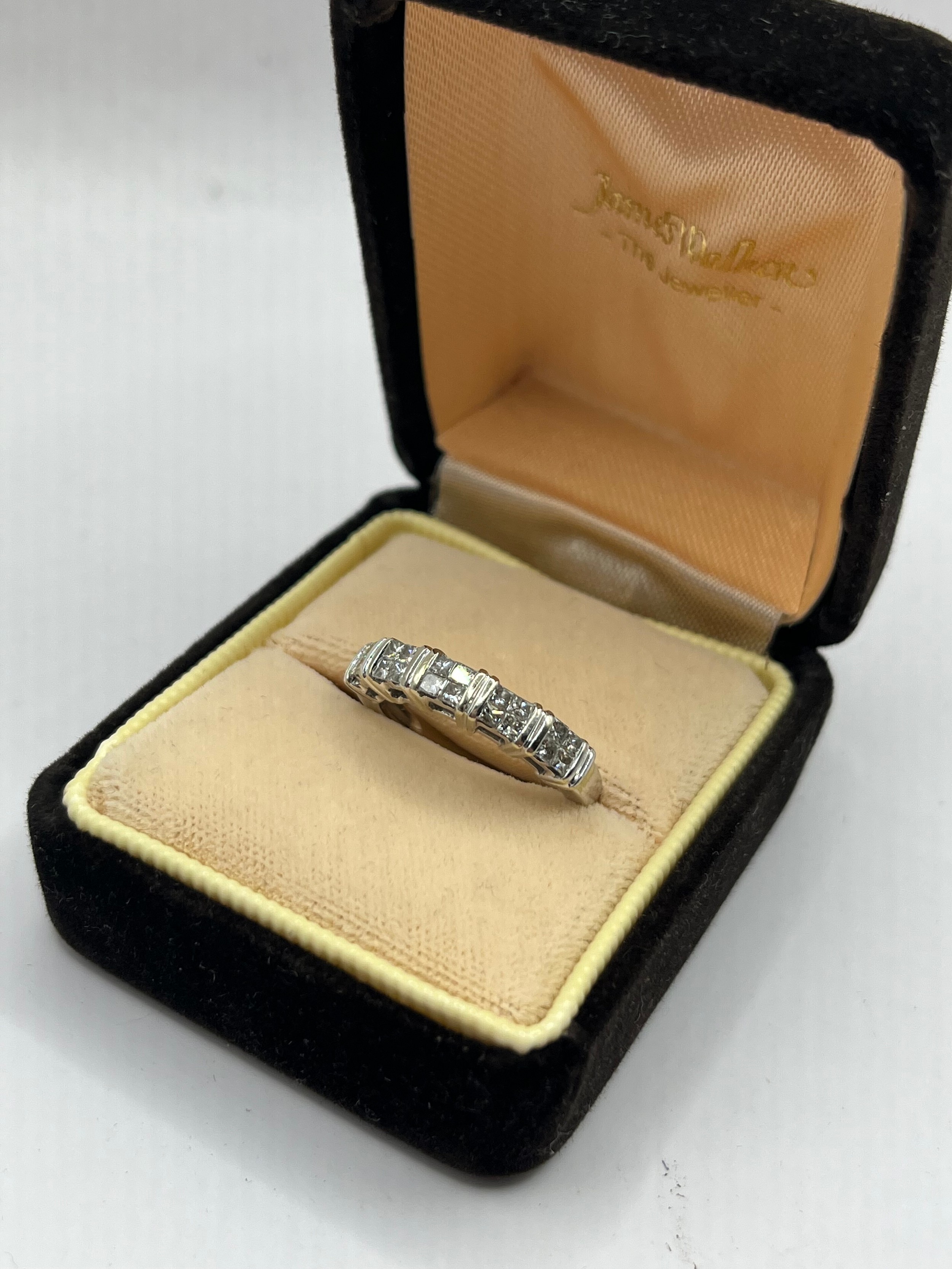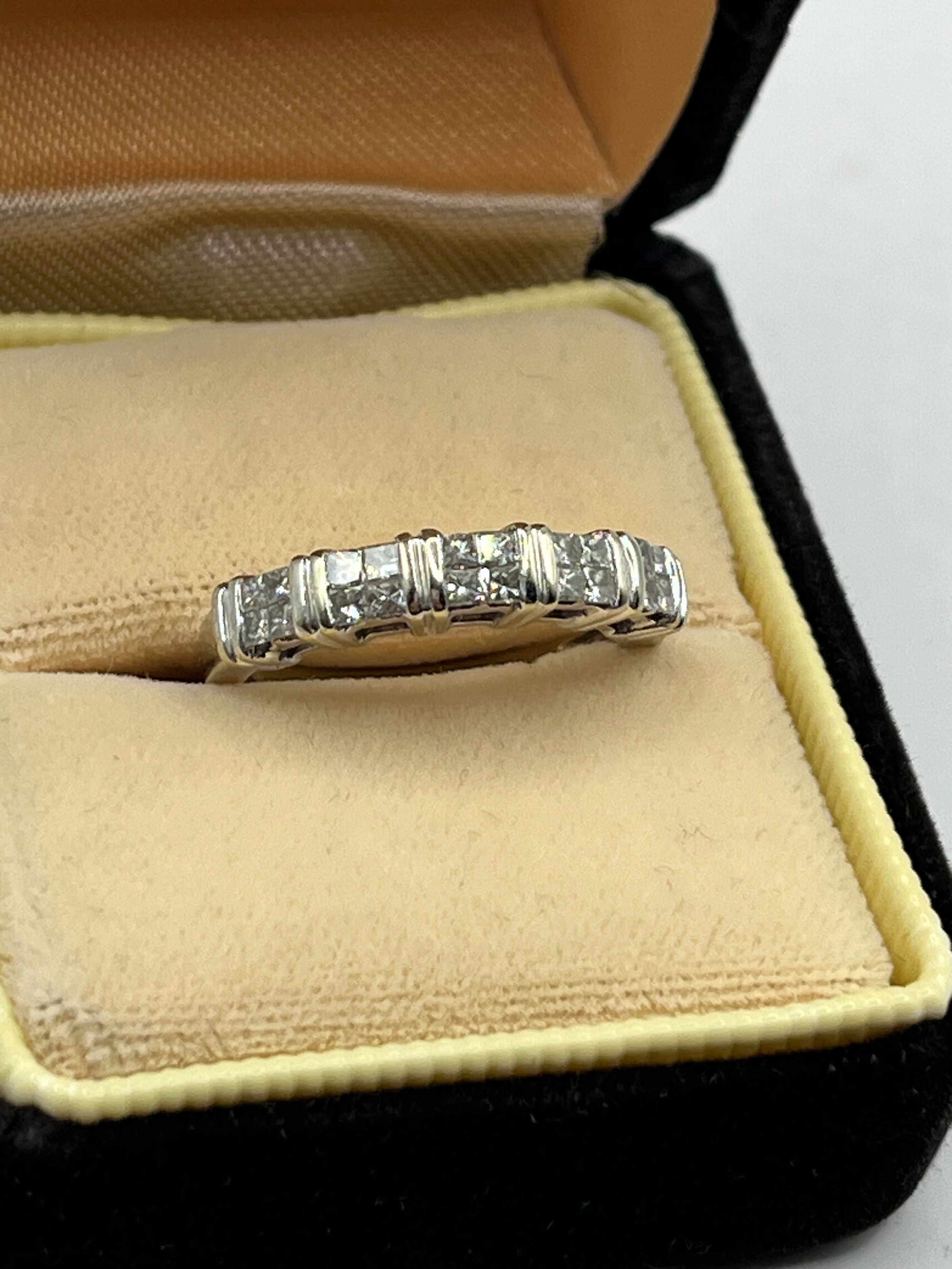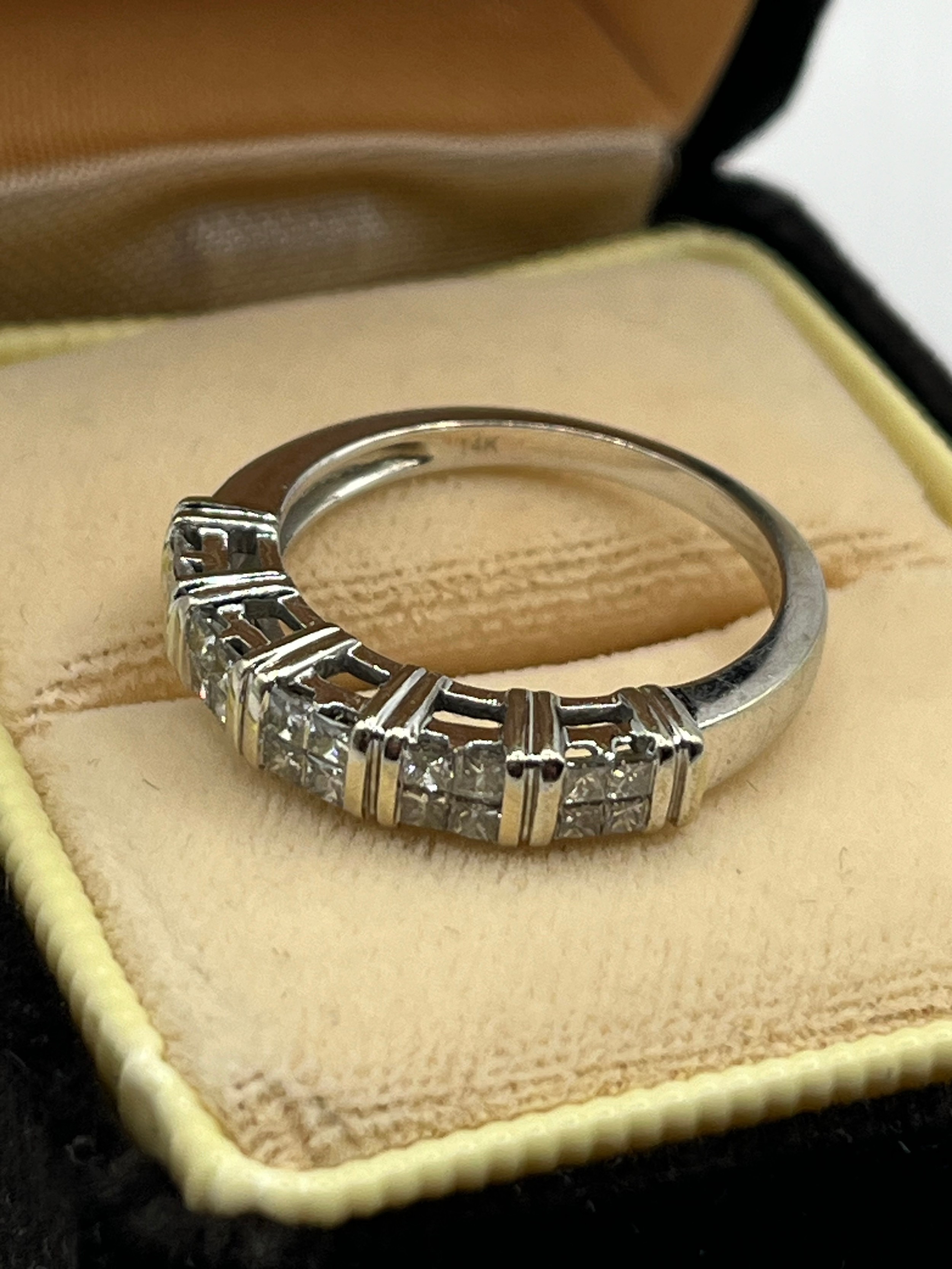 14ct White Gold Princess Cut Diamond Half Eternity Ring ,Size N, 3.95g.