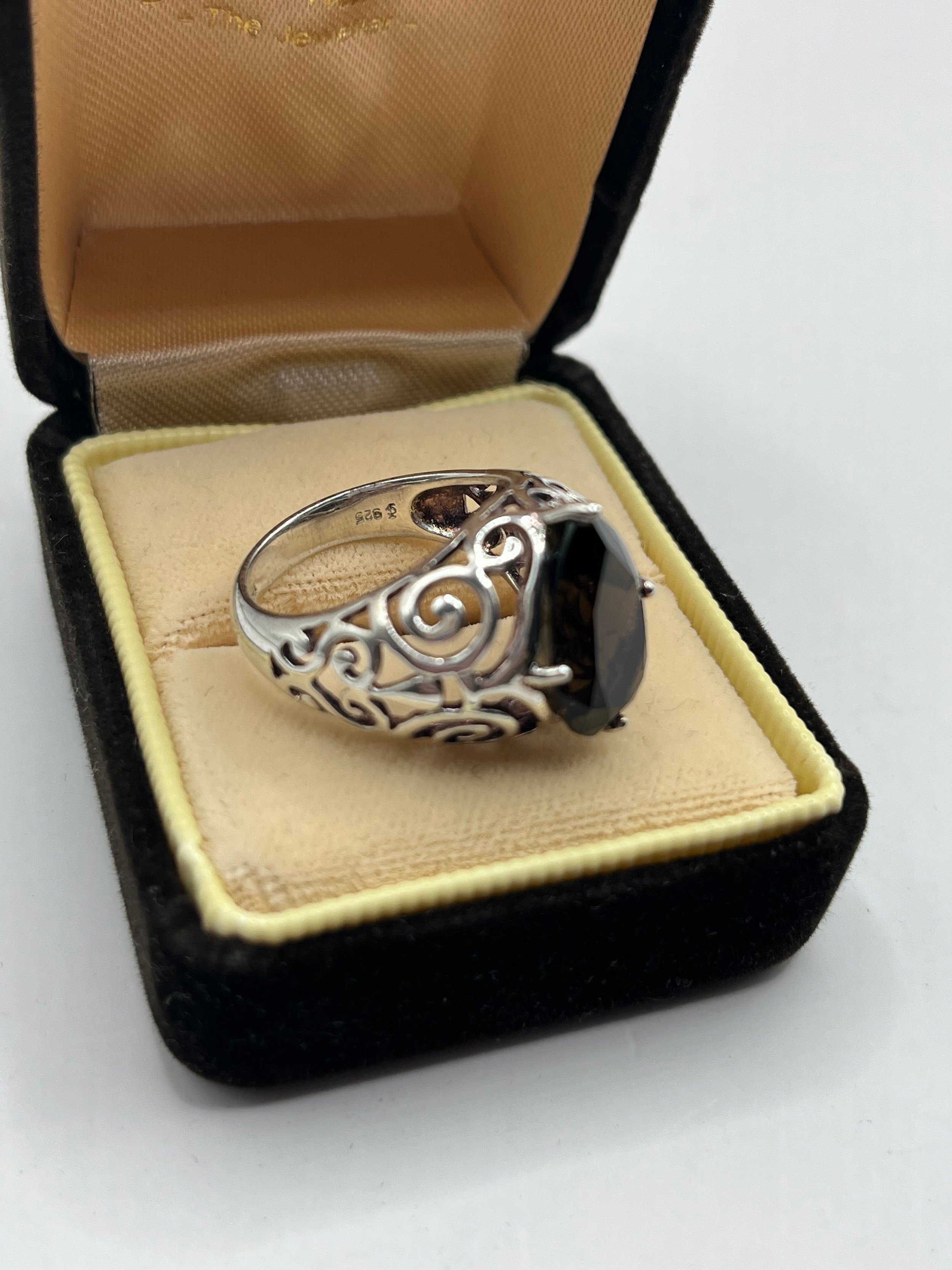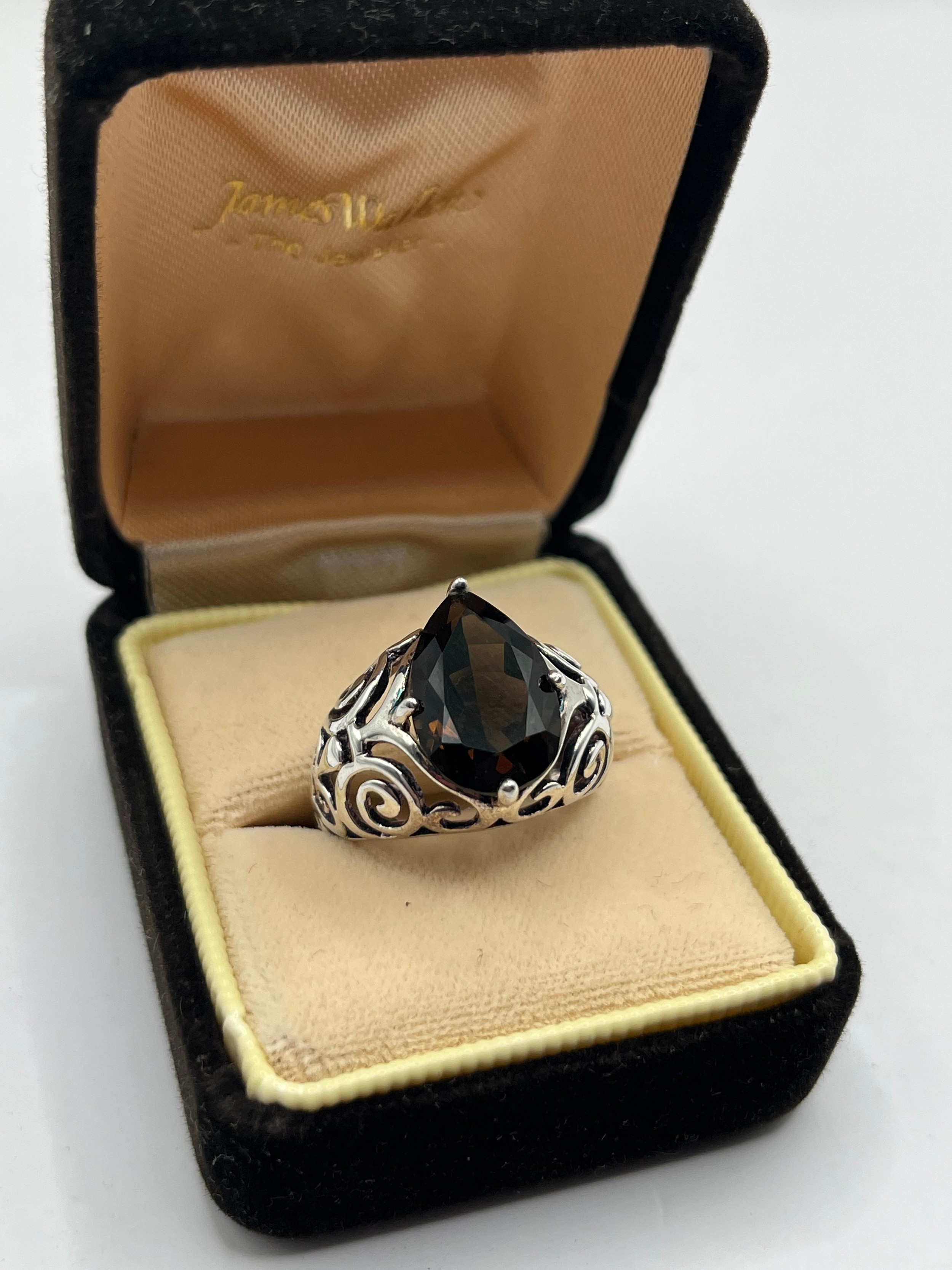 Silver ,Pear Cut Smokey Quartz With Openwork Surround Size O, 6.11g.