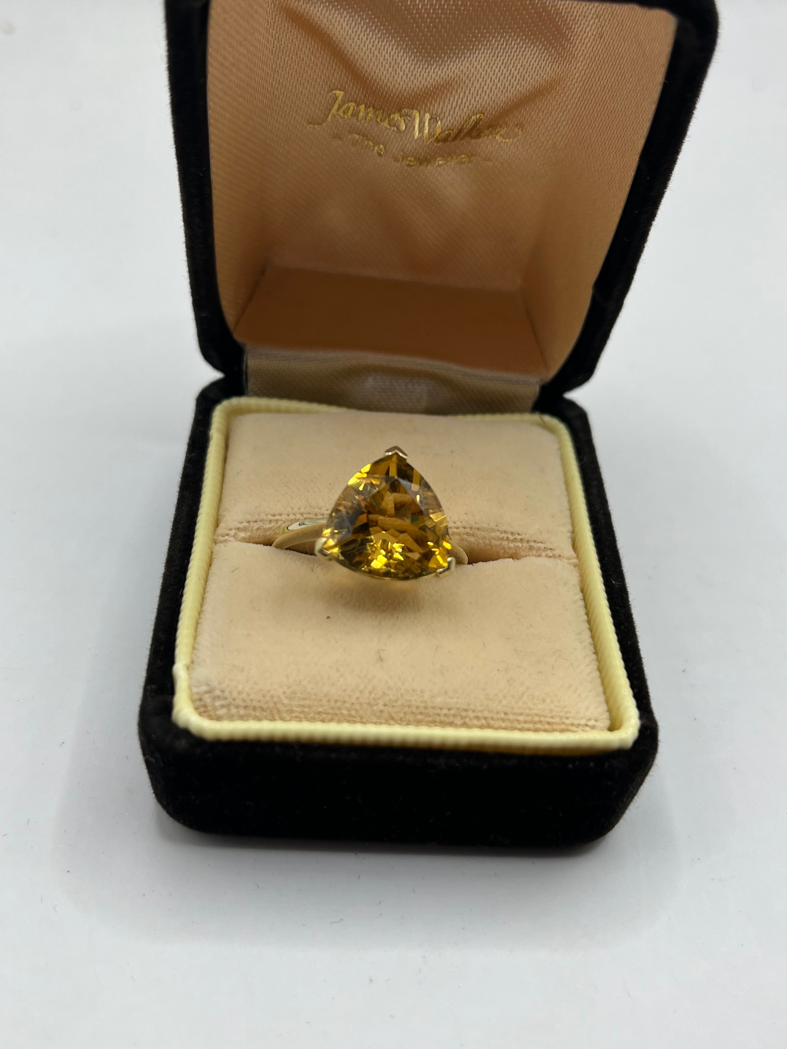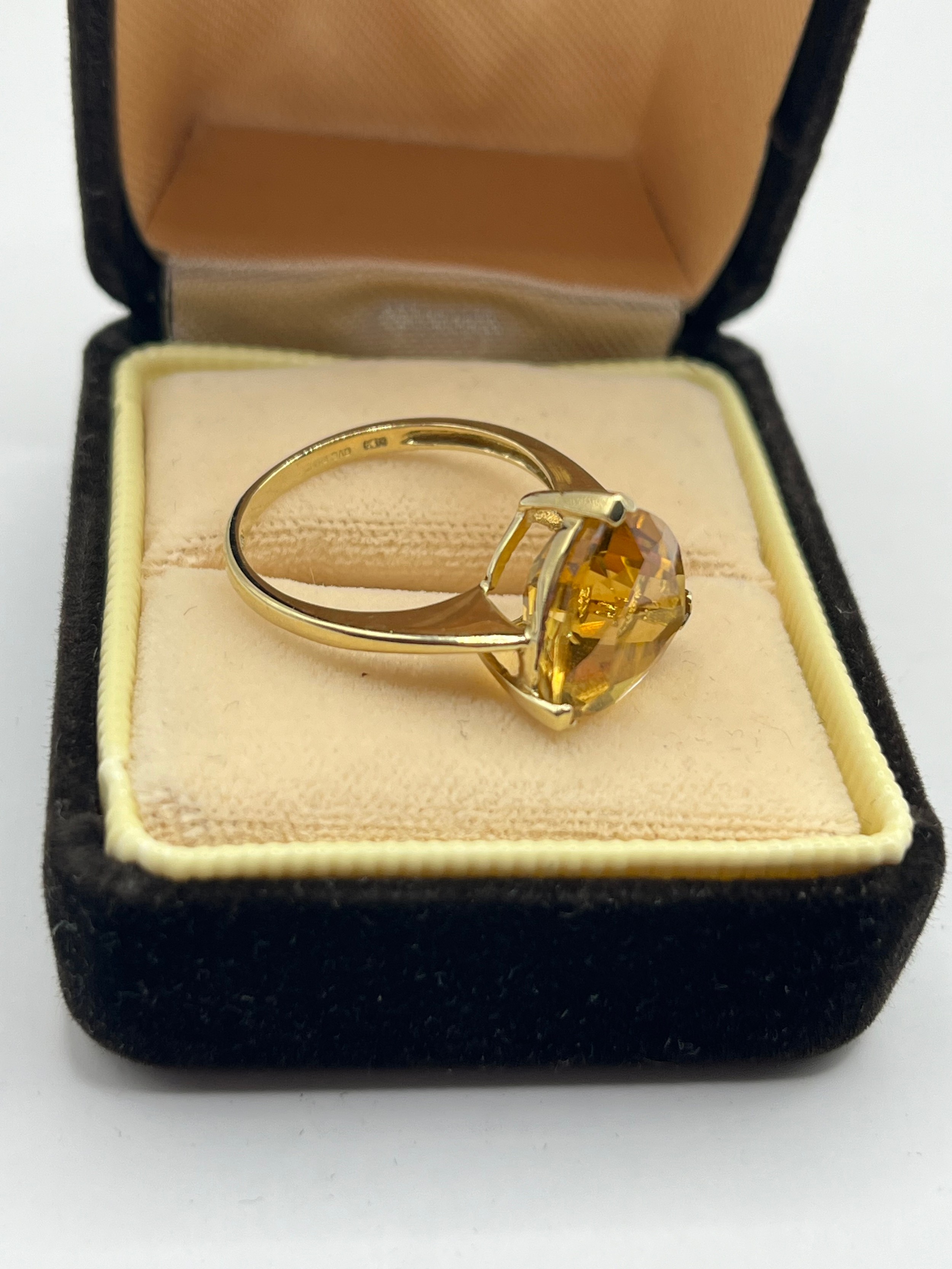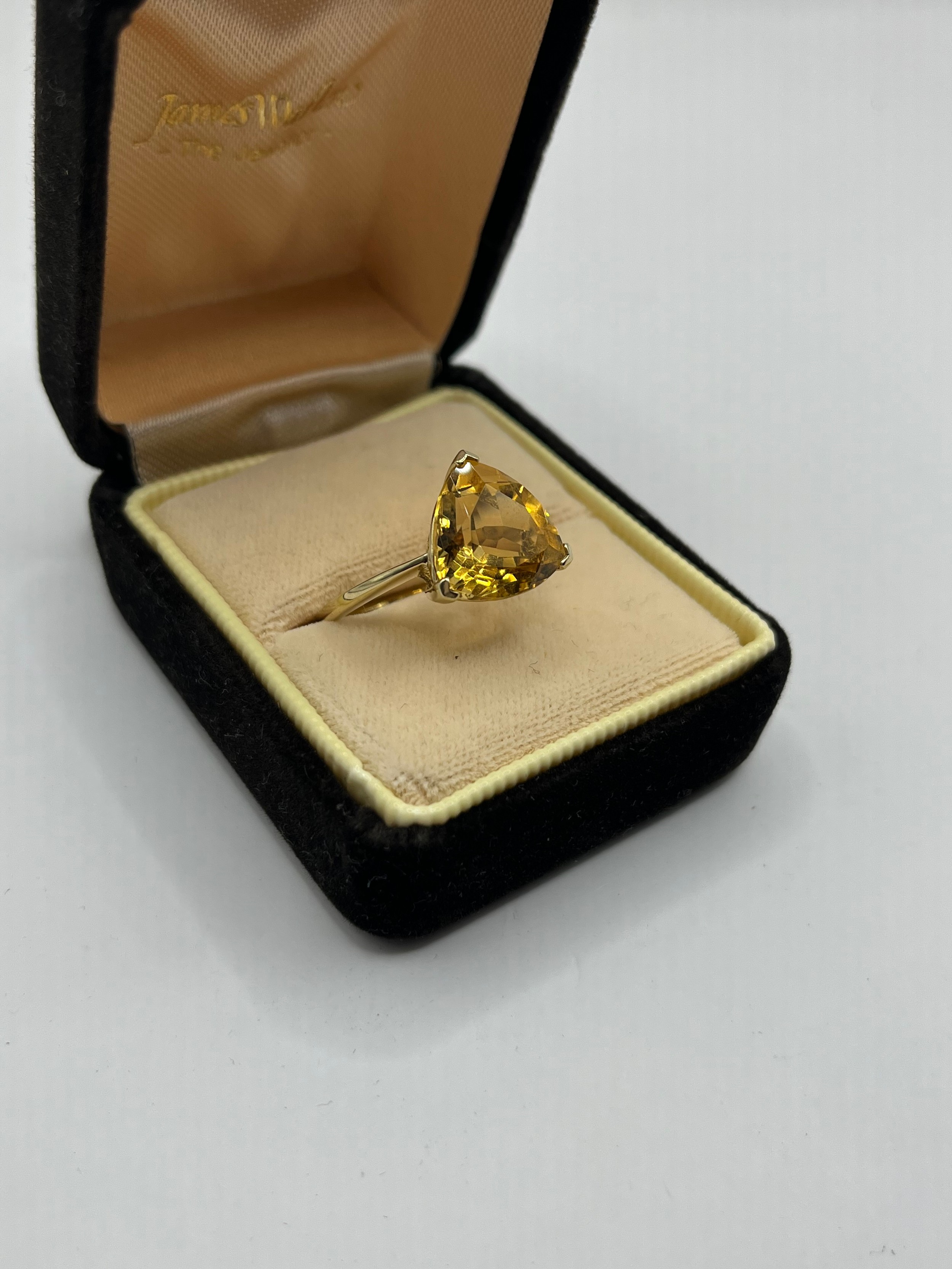 9ct Trillion-Cut Solitaire With Citrine Stone, Size P, 3.08g.