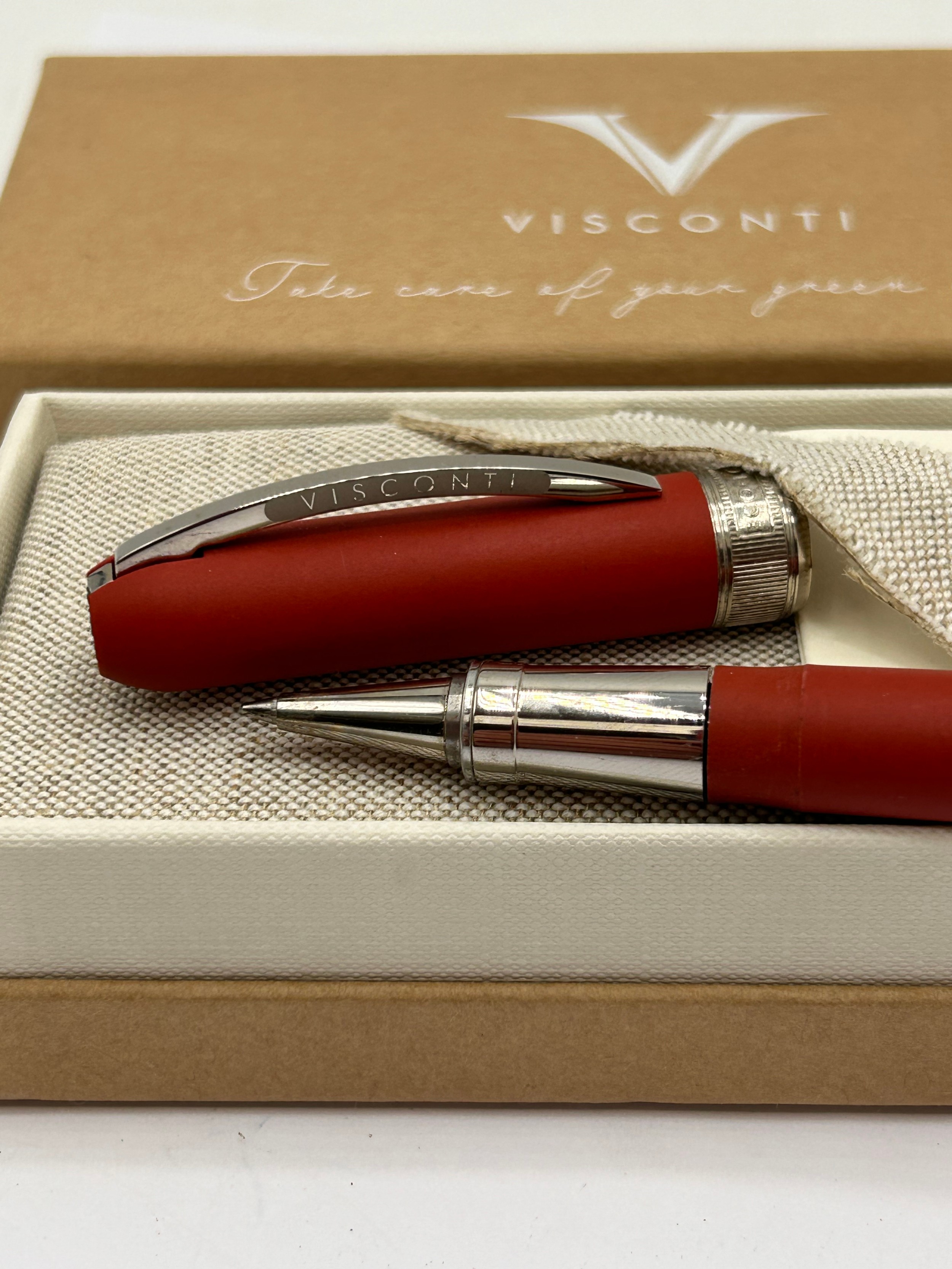 Boxed With Papers Visconti Eco-Logic Rollerball In Red.