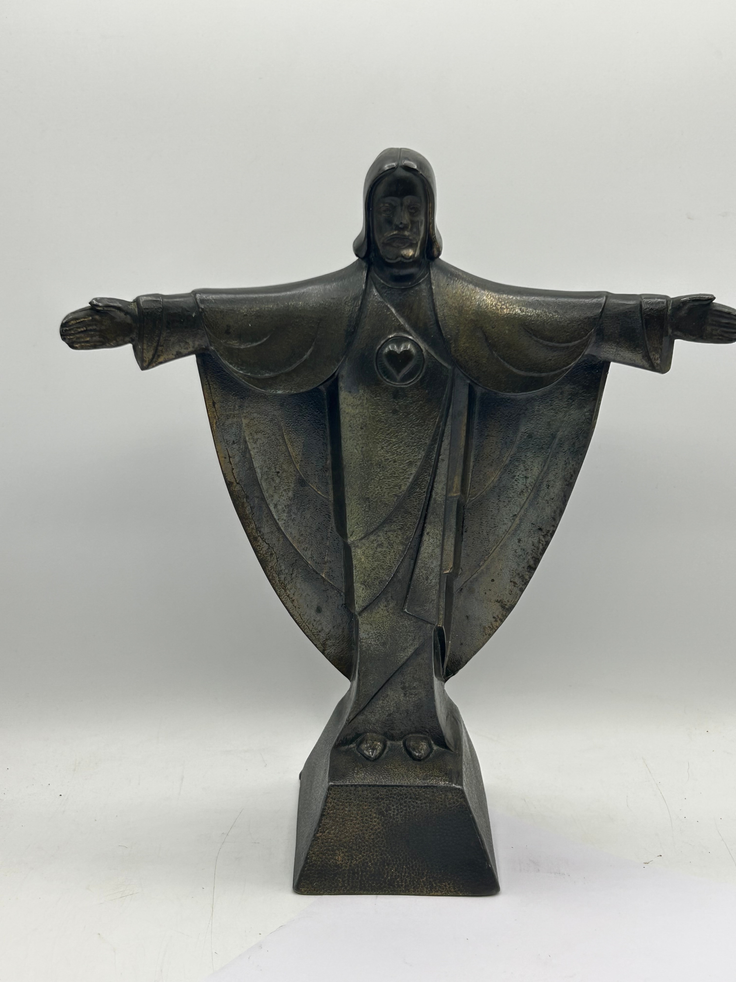 Spelter? Figure of Jesus Christ Signed To Back Standing 12”