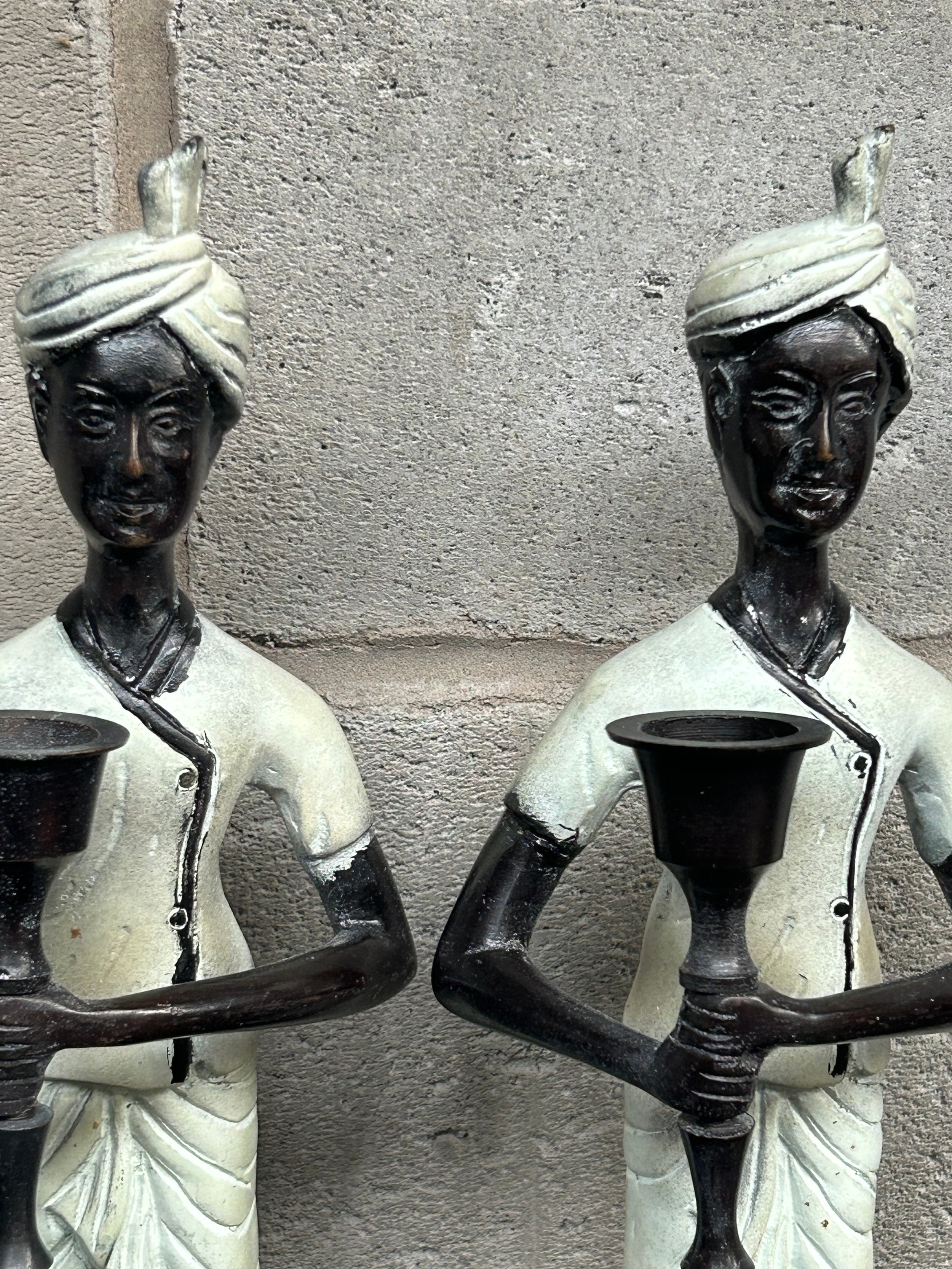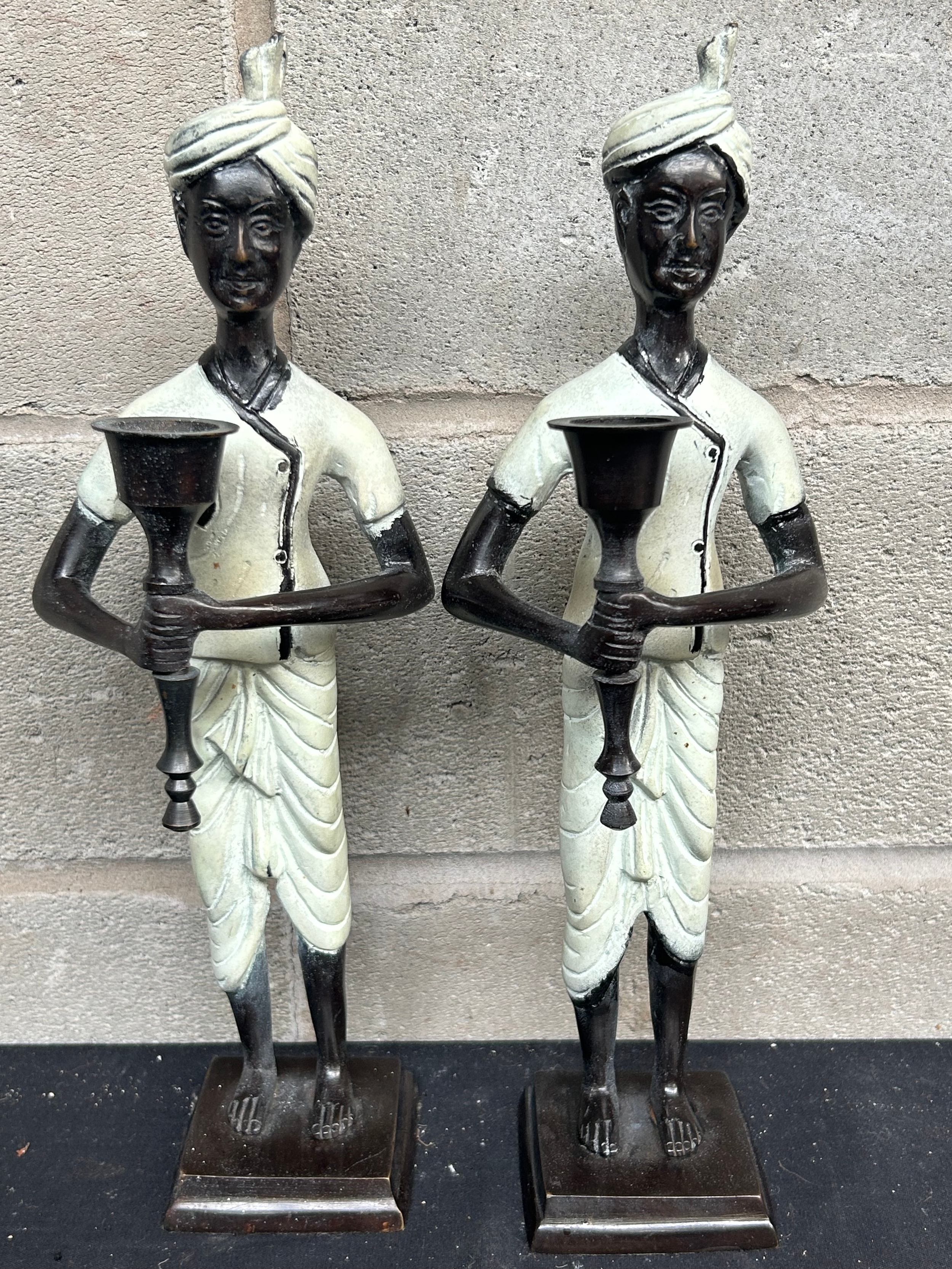 Stunning Bronze? Pair of Blackamoor Candle Holders Standing 1ft Heavy