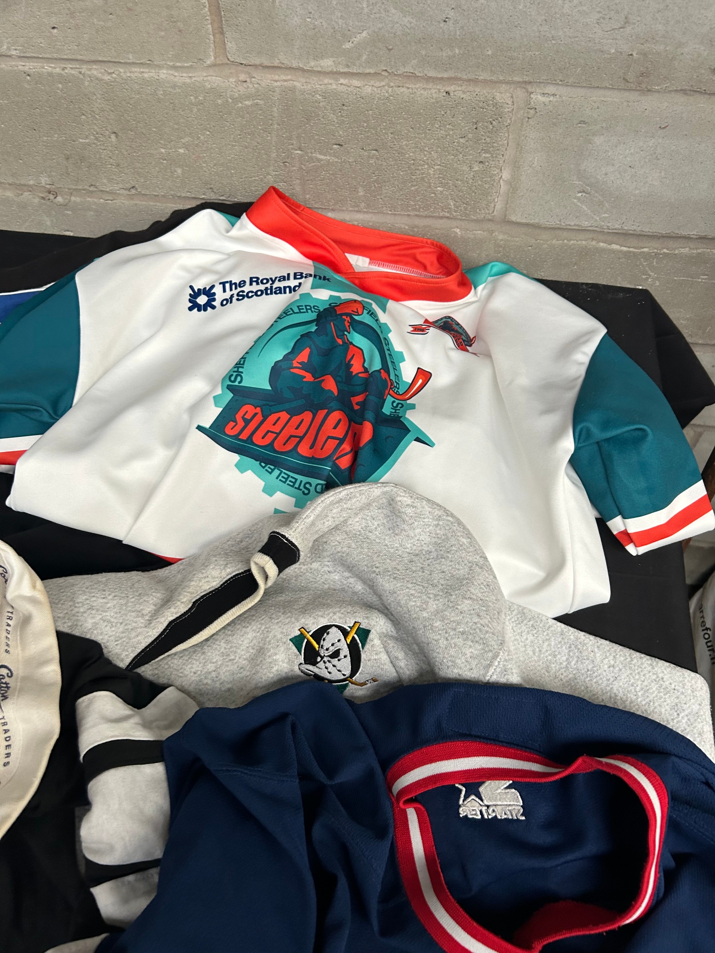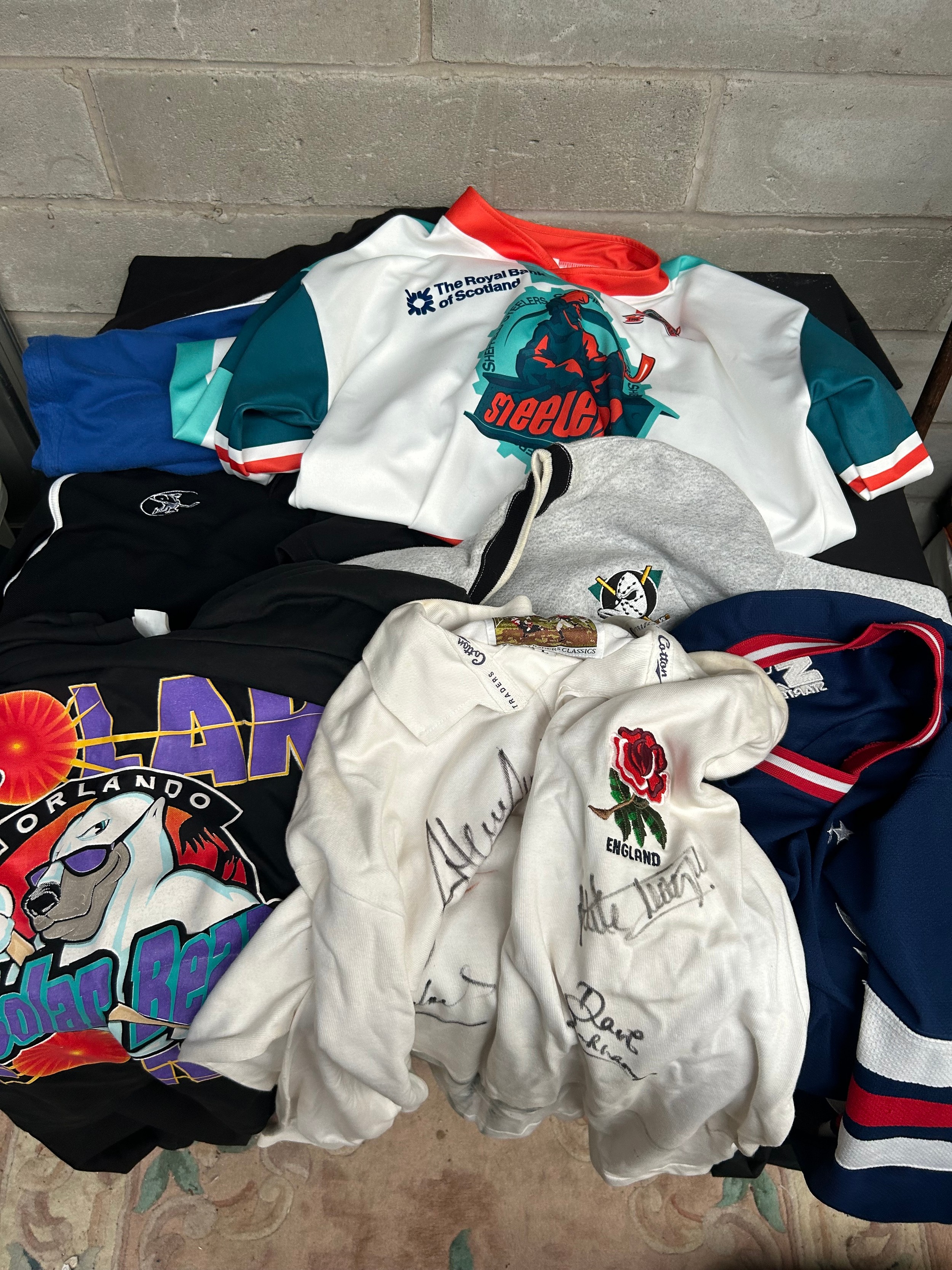 Ice Hockey Jerseys, Some Sheffield Steelers. Rugby Top With Autographs (see photos for own authenticity)