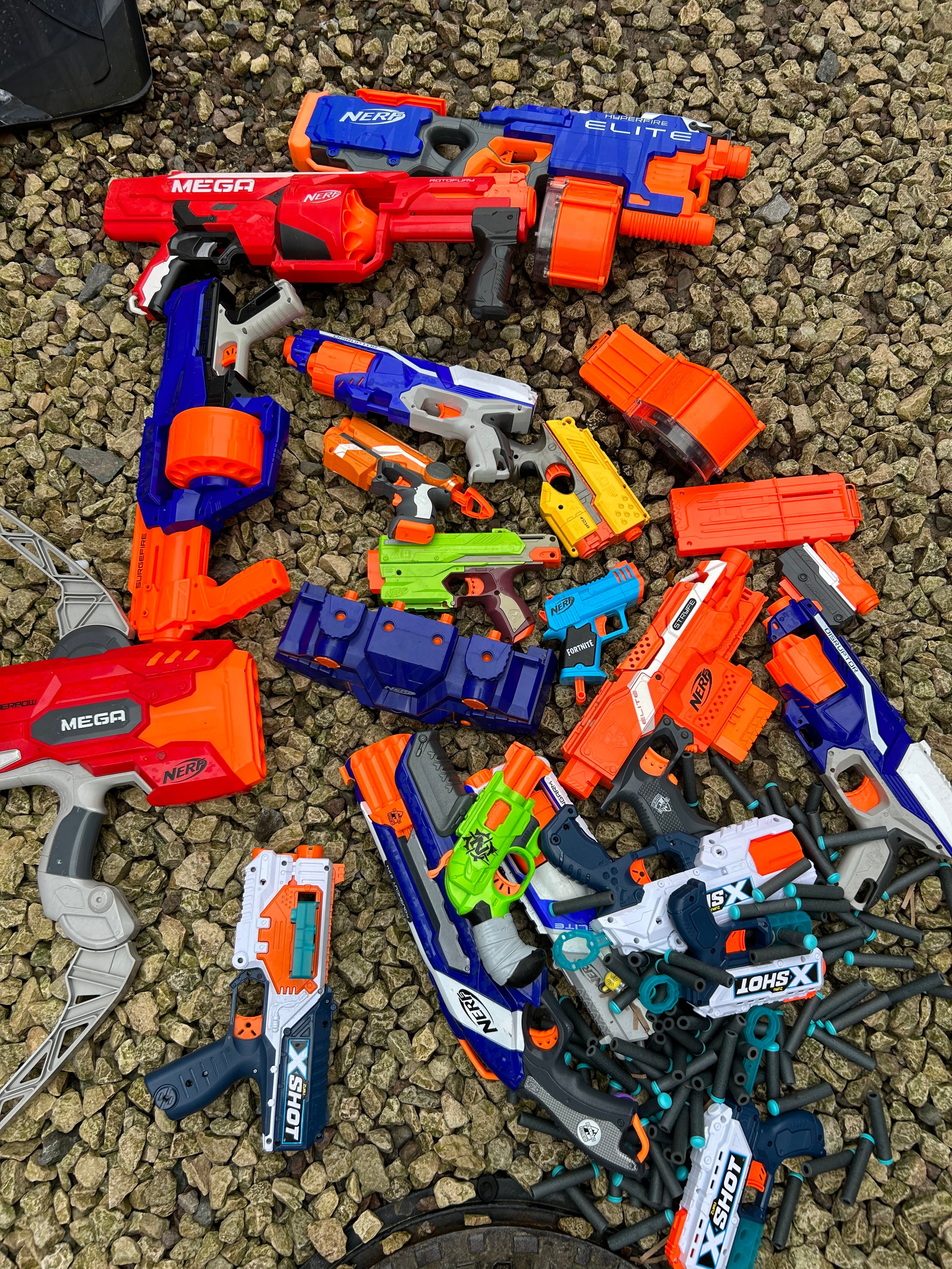 Box Of Large Nerf Guns Plus Others.