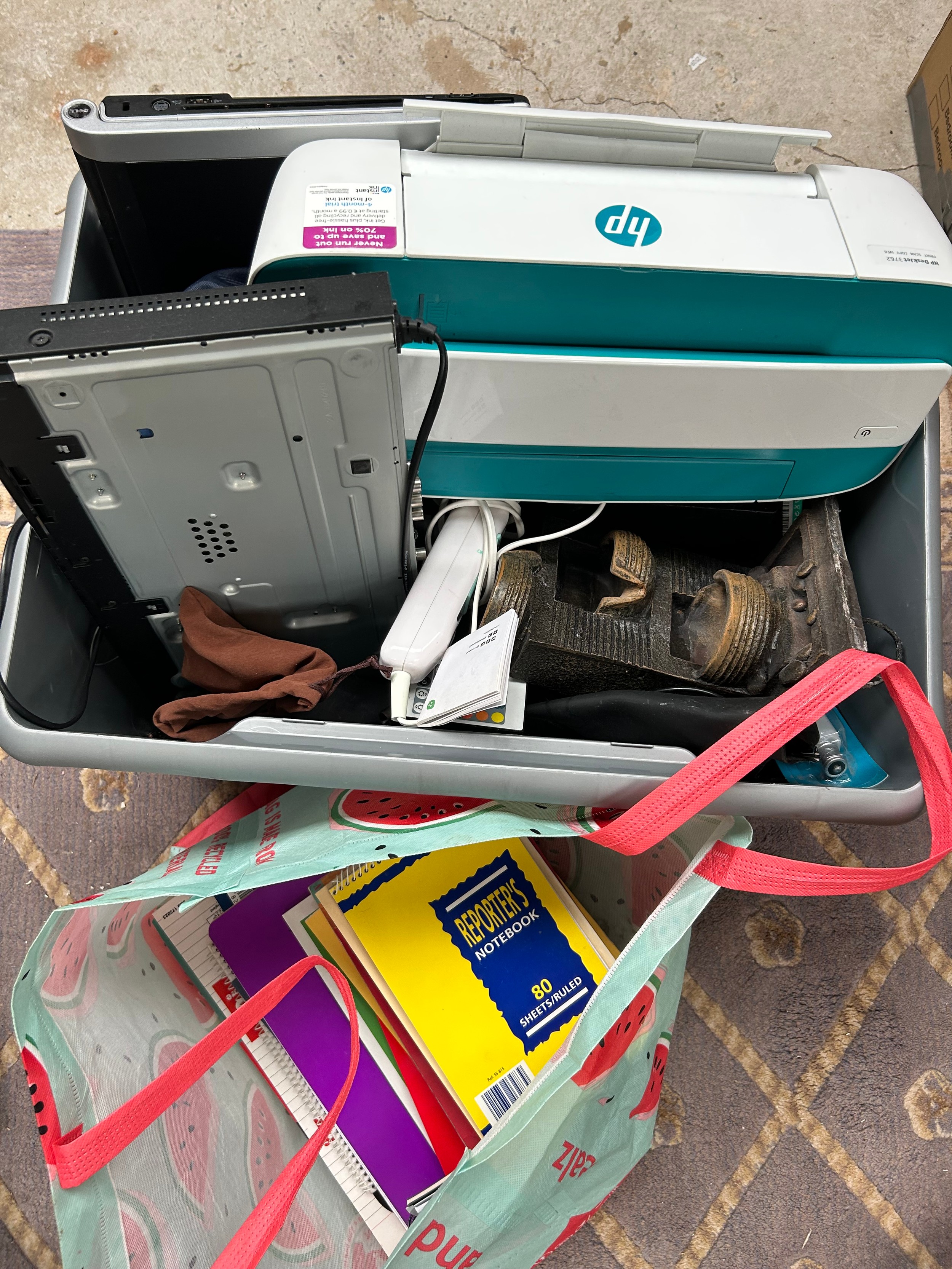 Large Box Including HP Printer , New Notepads , Laptop Etc.