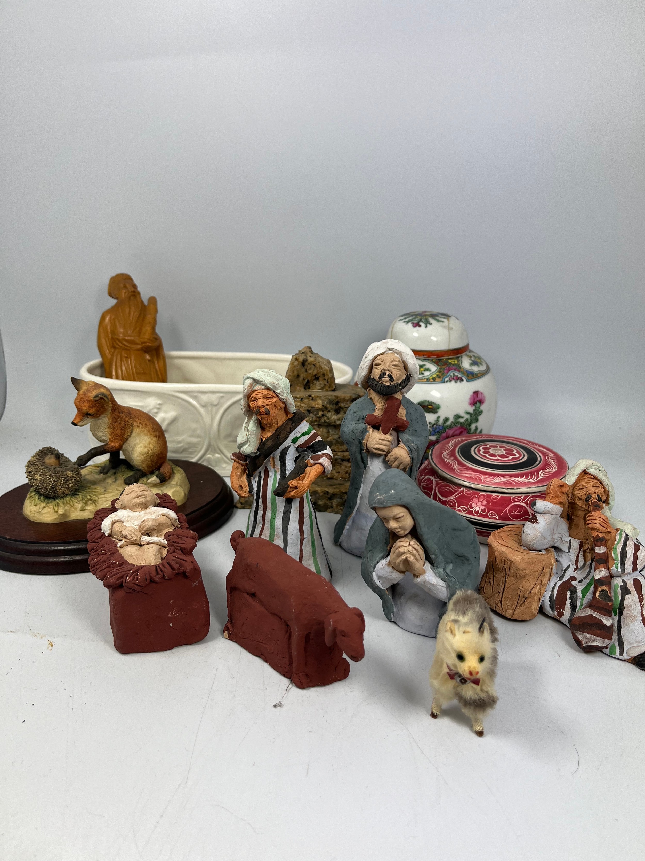 Tray Of Figures And Pots, Including Oriental.