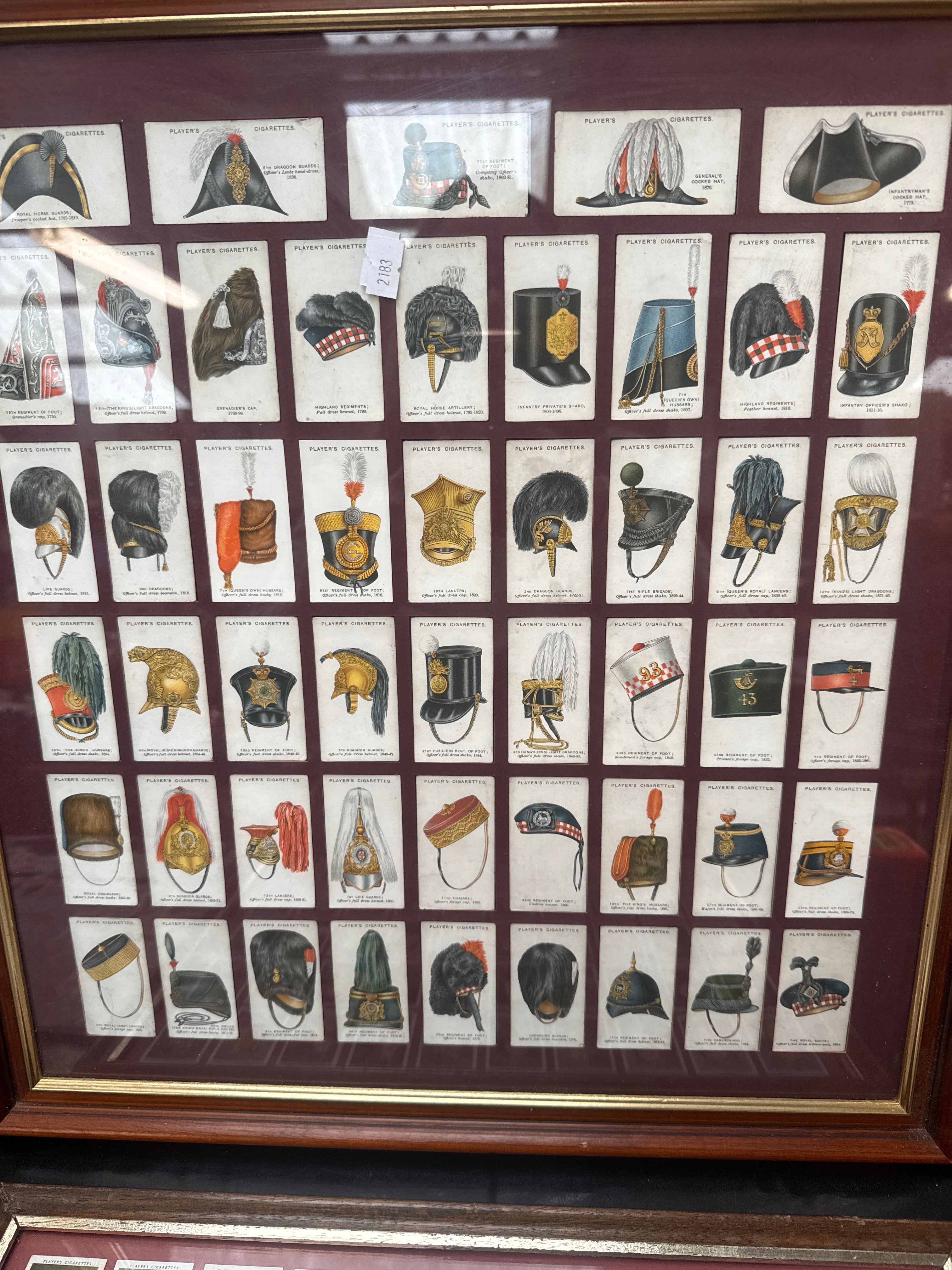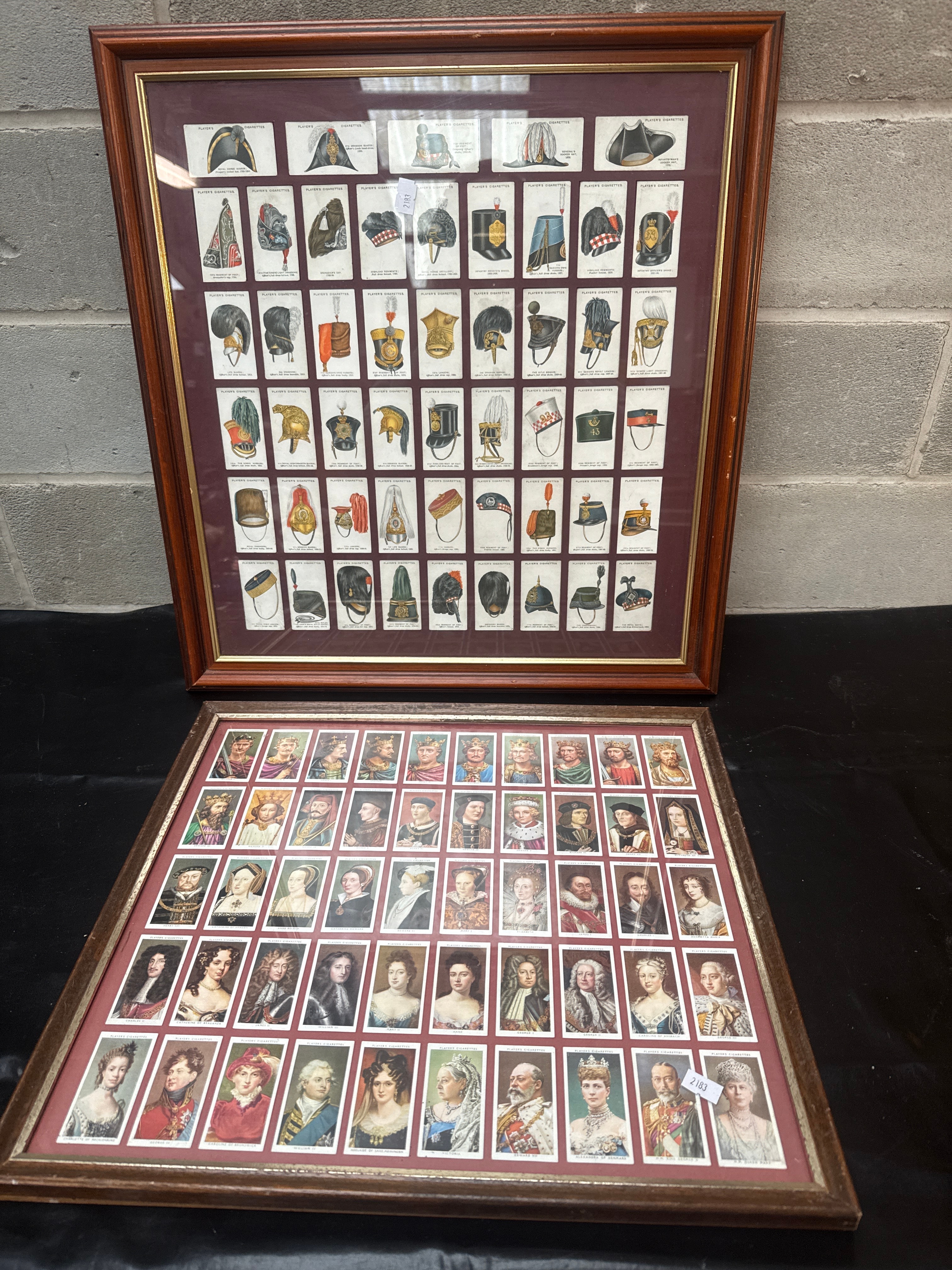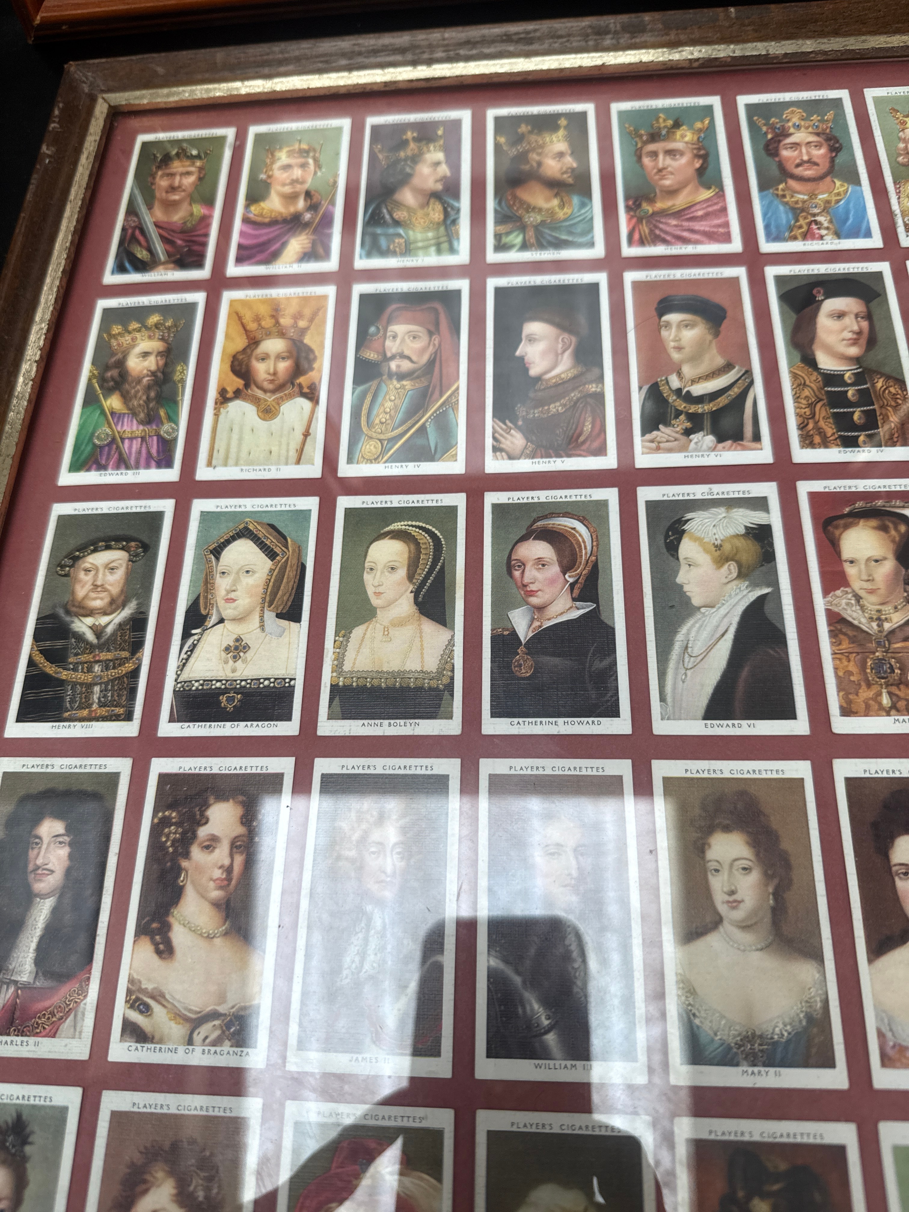 Lot 14: A Pair of Framed Player's Cigarettes Card Collections, circa 1930s, including 'Kings & Queens' and Military Headwear