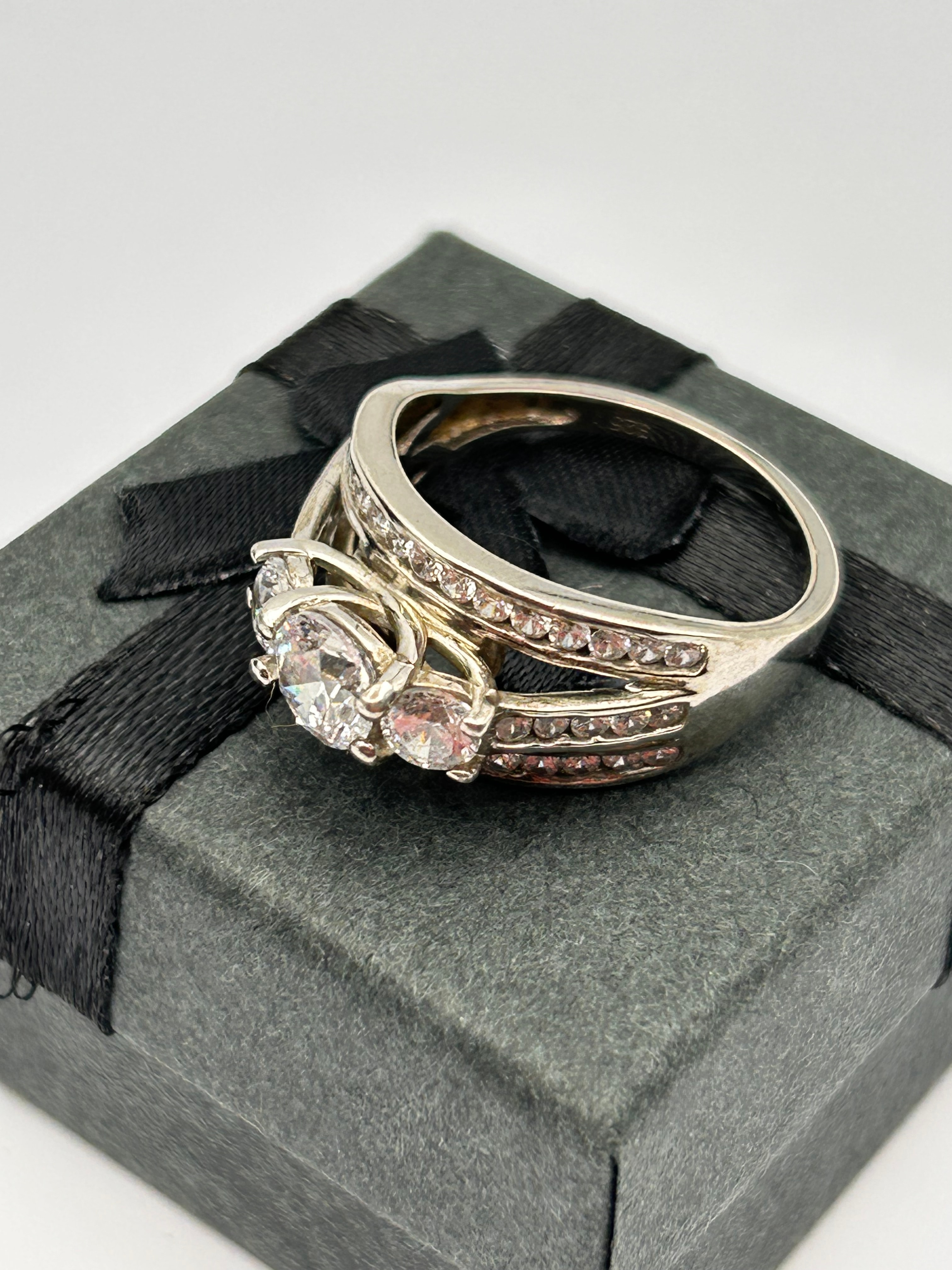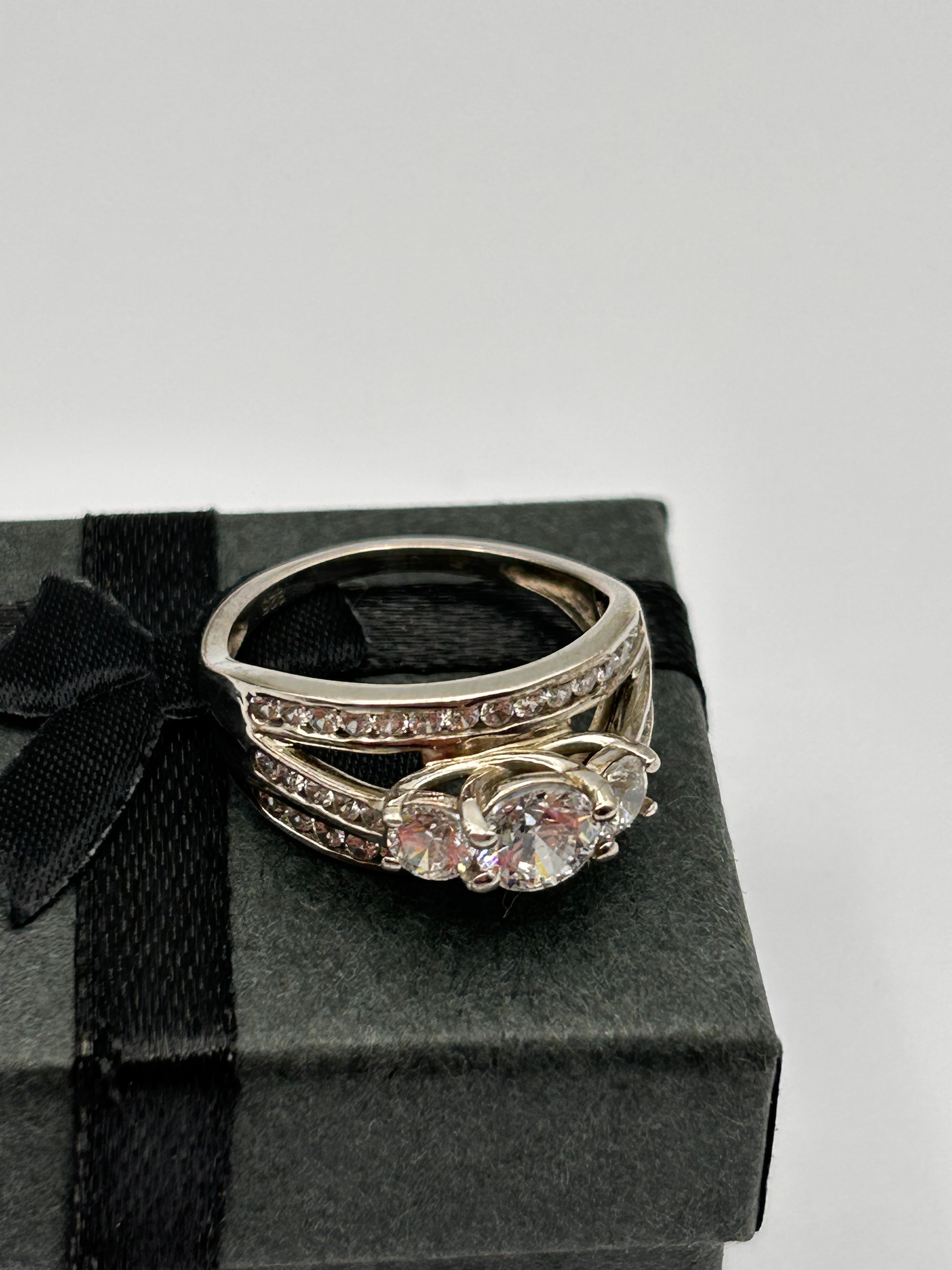 Lot 211: A Silver and Cubic Zirconia Trio Ring