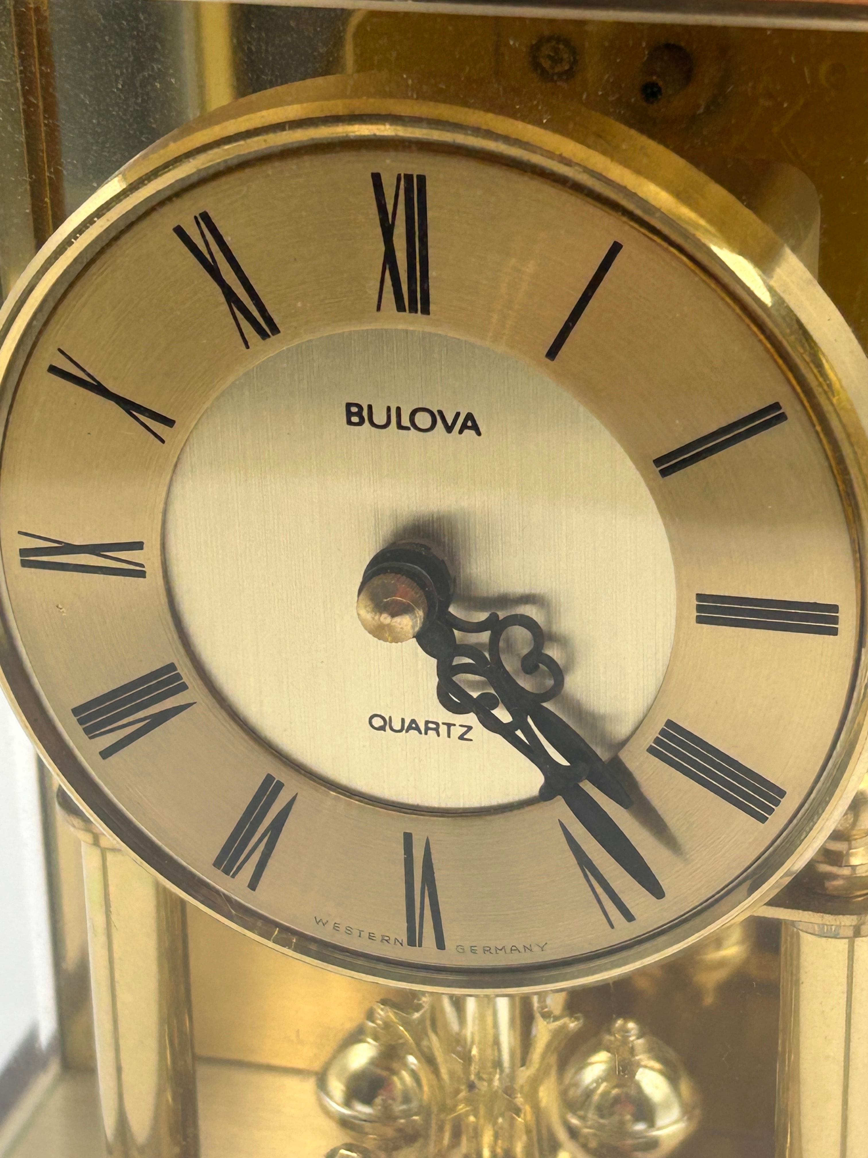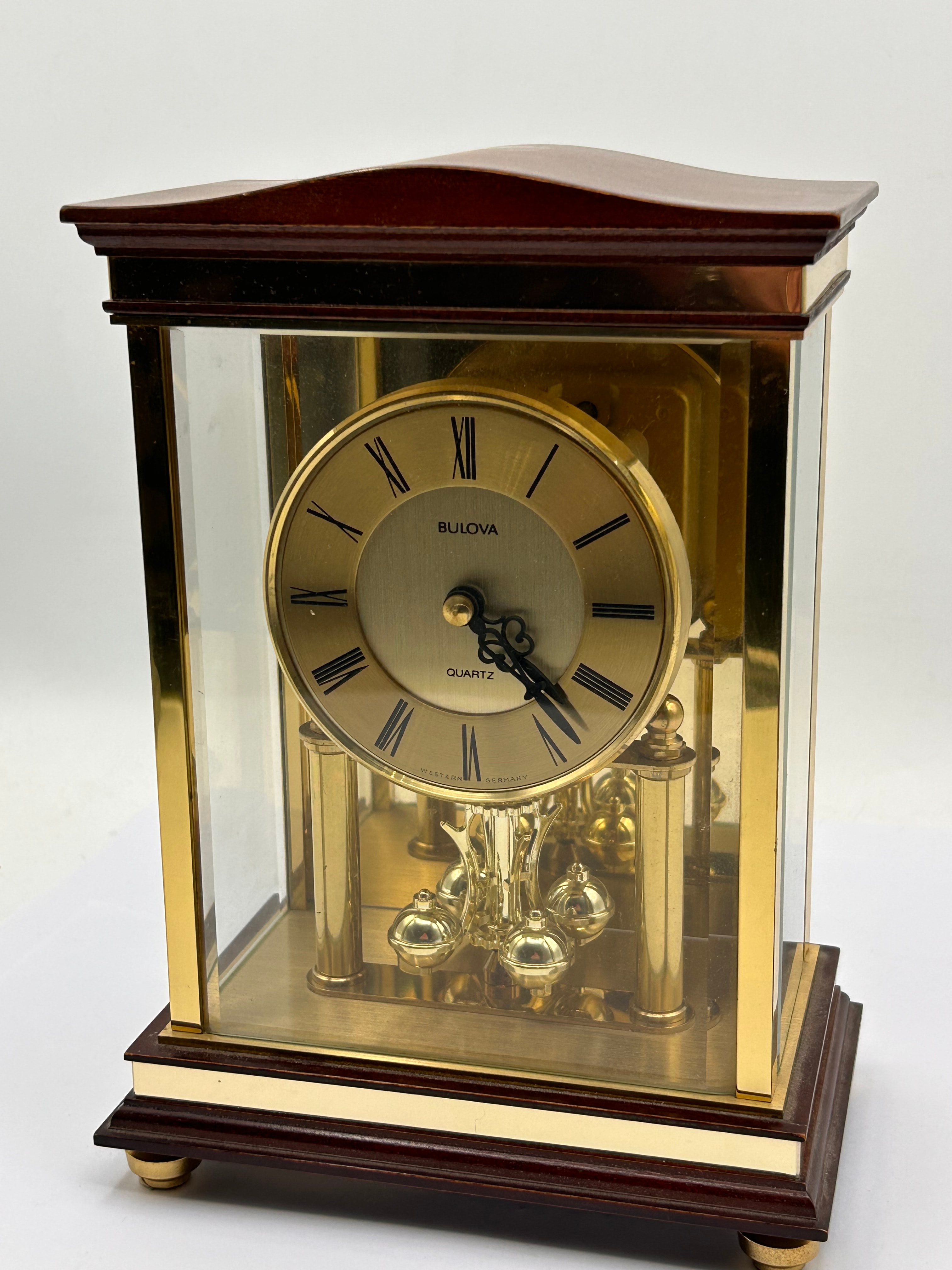 Lot 325: Bulova Quartz Torsion Pendulum Table Clock, Western Germany