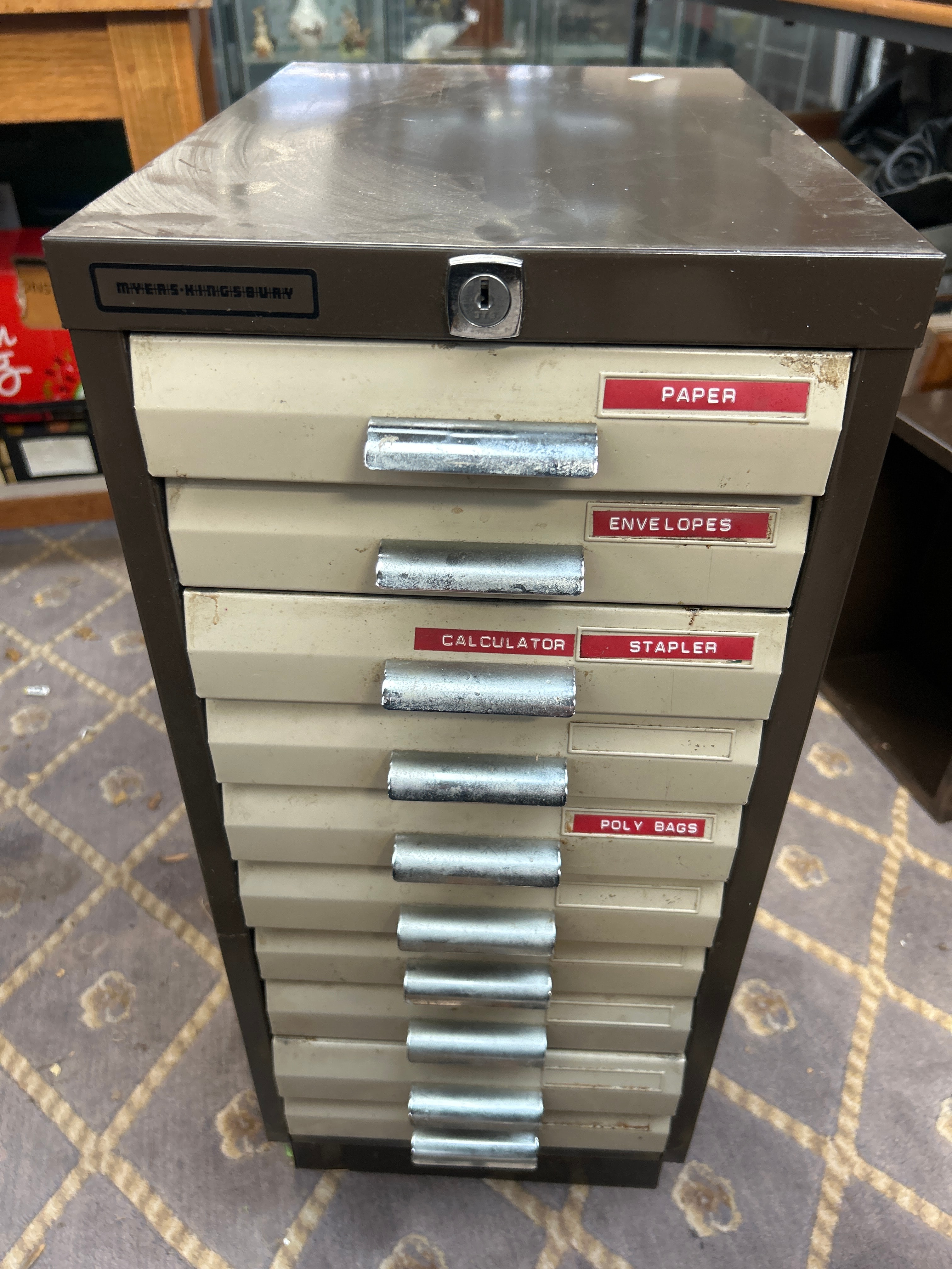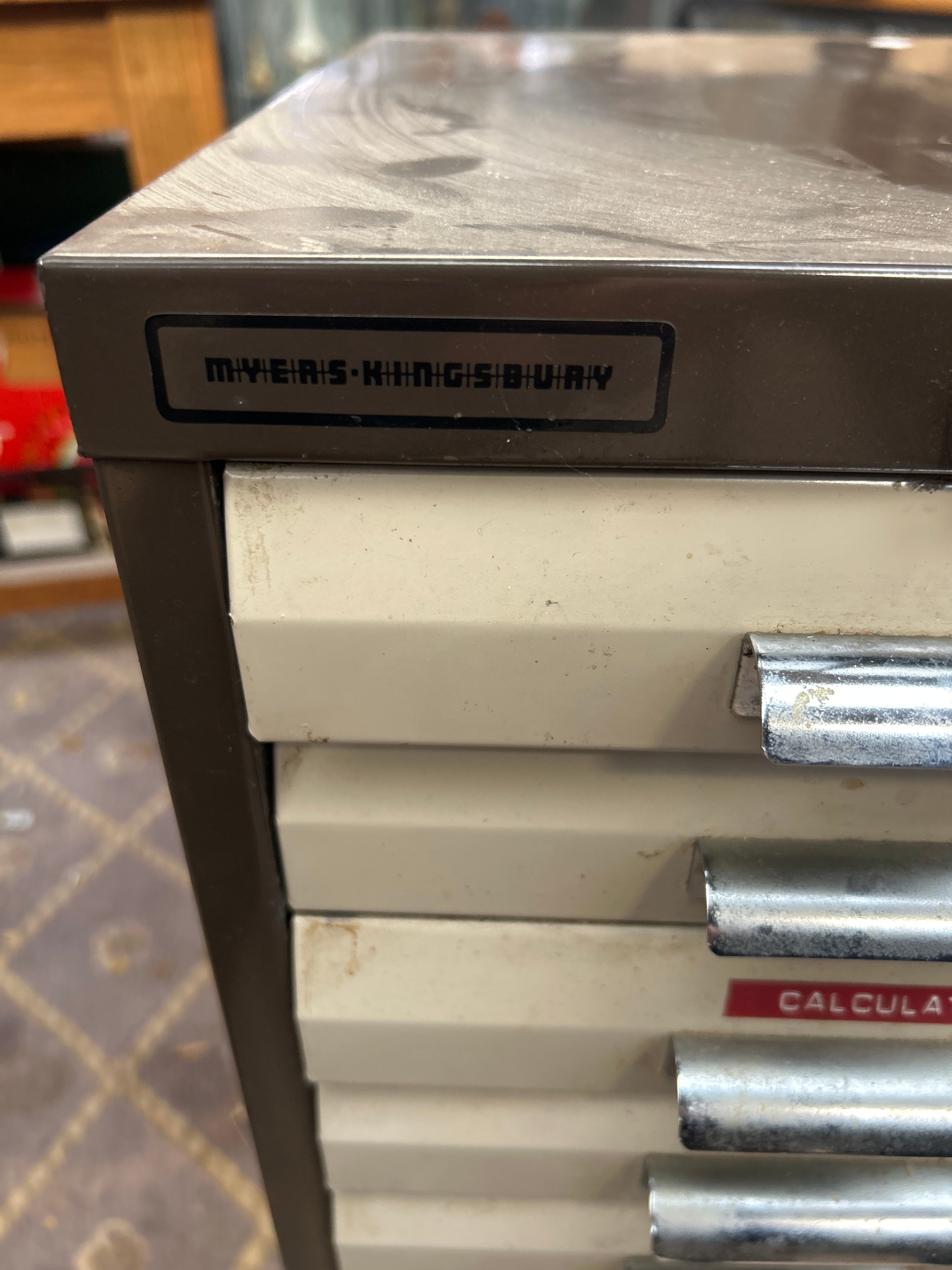 Lot 434: MYERS-KINGSBURY Mid-20th Century 8-Drawer Metal Storage Cabinet, No Key