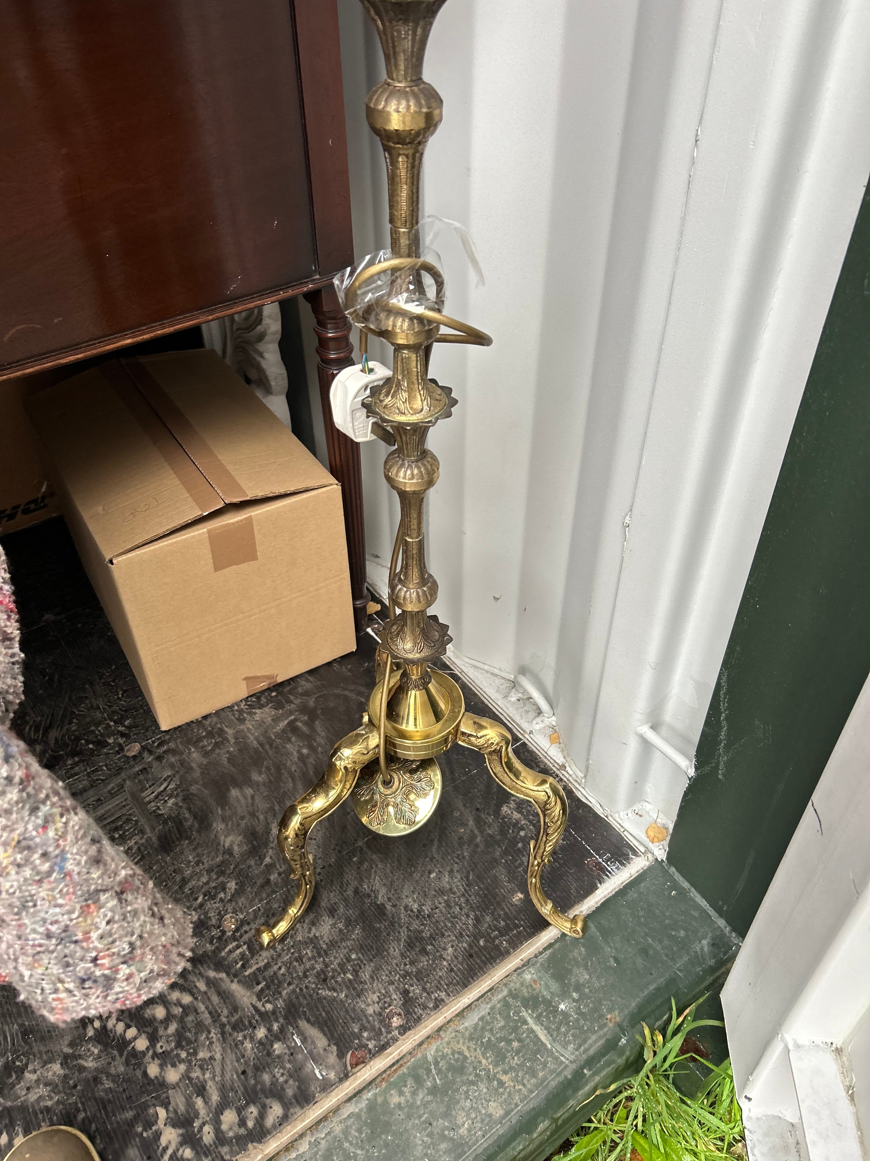 Lot 454: A Vintage Brass Baluster-Turned Floor Lamp with Rococo-Inspired Base