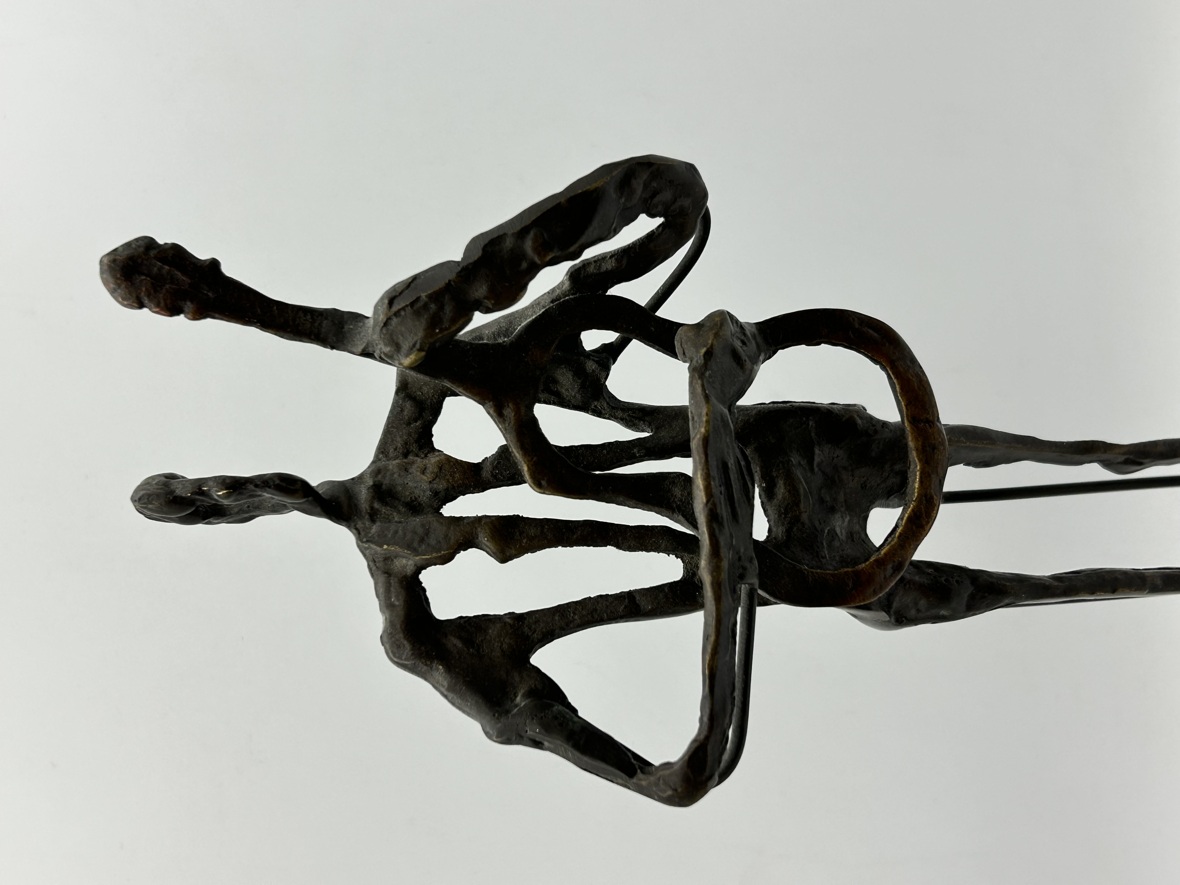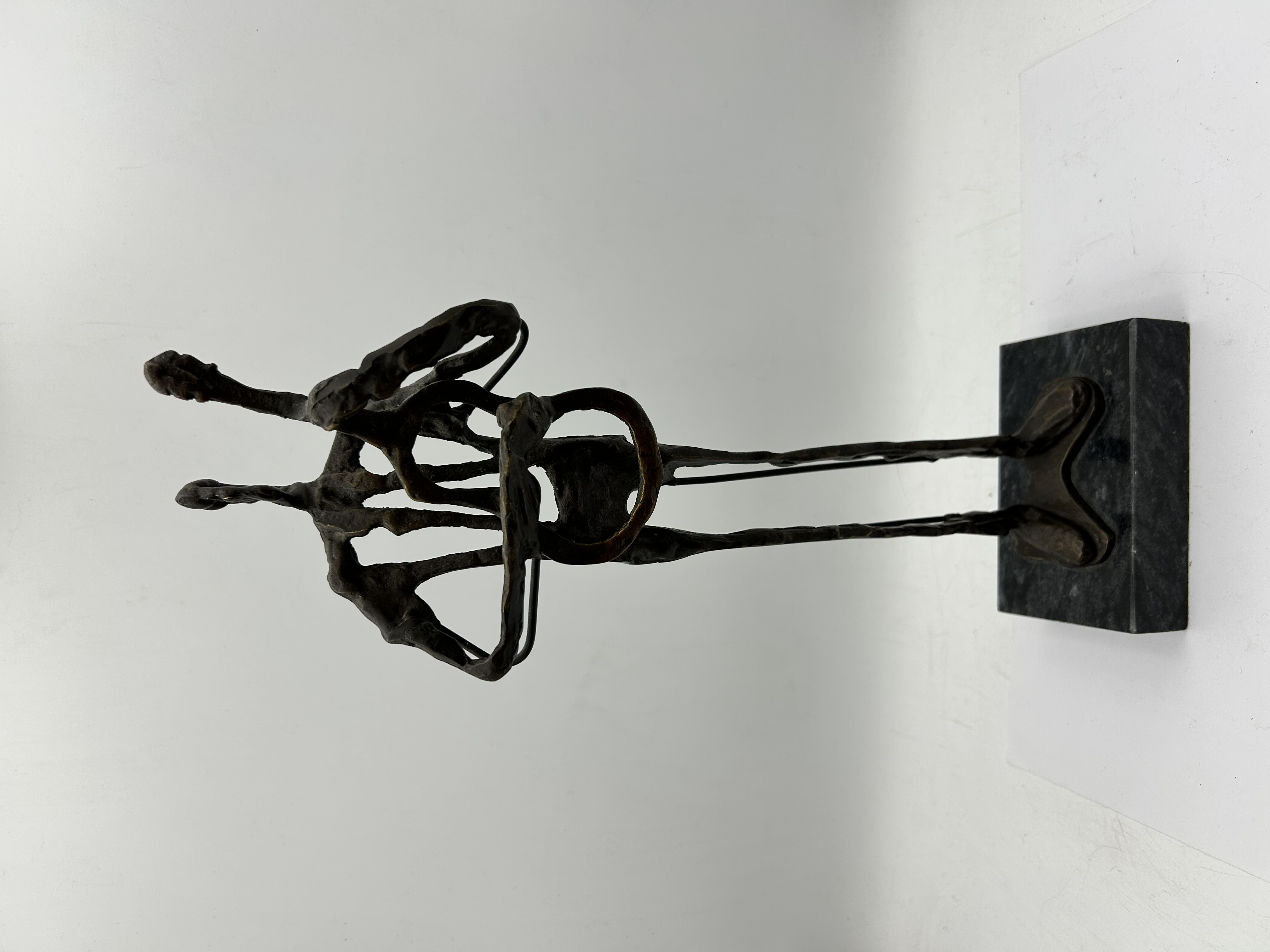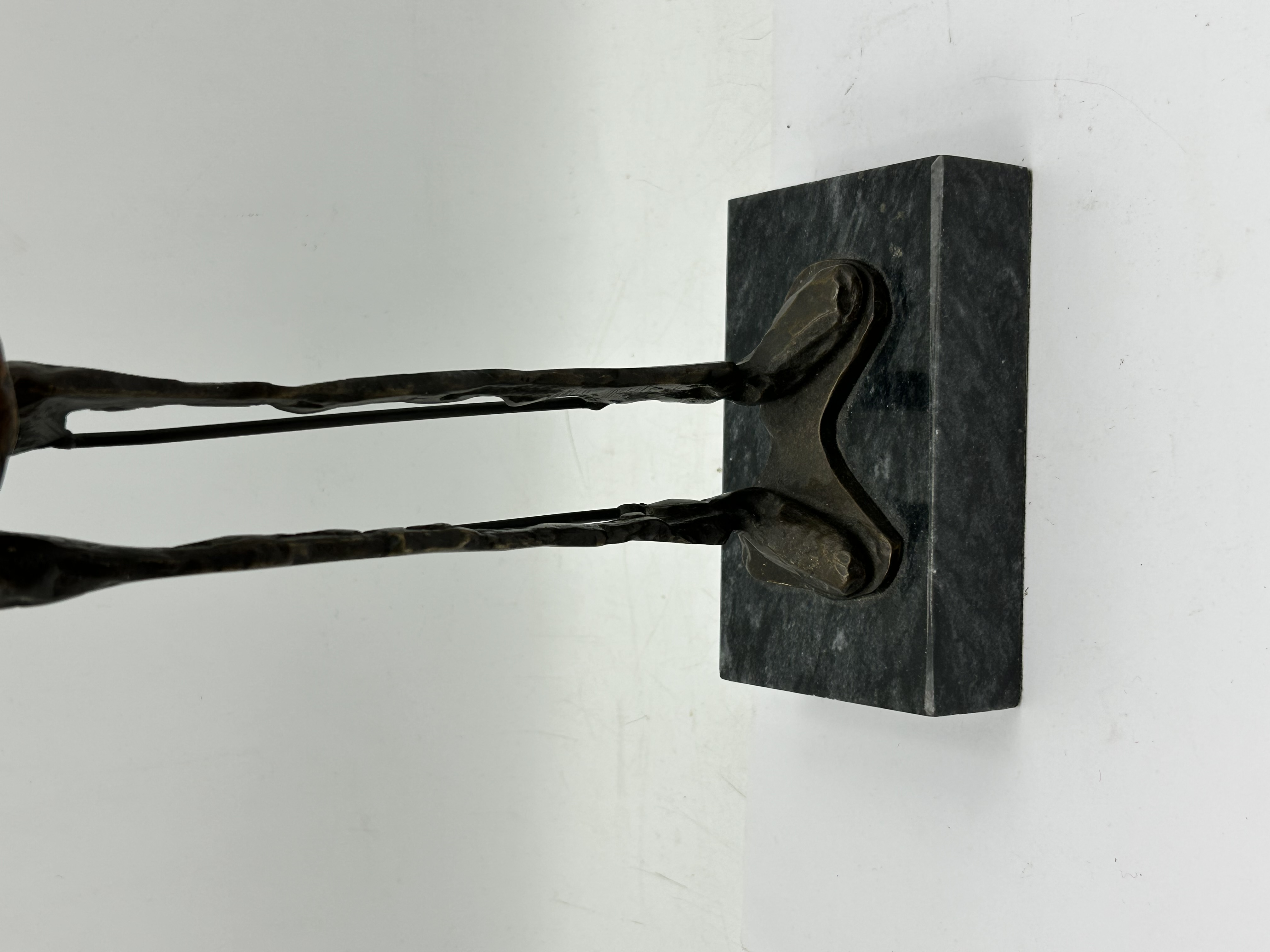 This modern abstract bronze sculpture is attributed to Nileebuker? and is designed in the style of Alberto Giacometti. The bronze features a dark brown patina and is mounted onto a rectangular black marble plinth with light grey veining. No signatures, foundry marks, or edition numbers are visible on either the bronze or the base. The sculpture is executed with a heavily textured surface, characteristic of the Post-War expressionist style.